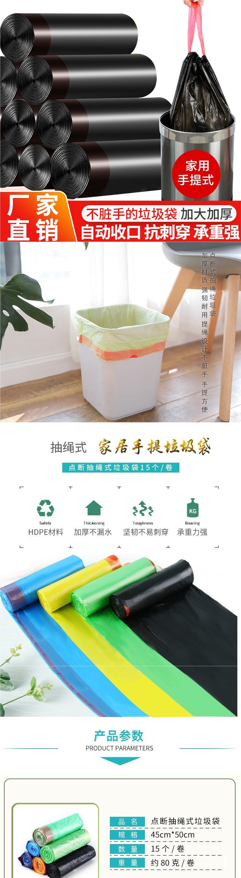 쓰레기 봉투 휴대용 졸라매는 끈 두꺼운 컬러 브레이크 포인트 주방 가정용 로프 비닐 봉투 자동 폐쇄스토어 가기