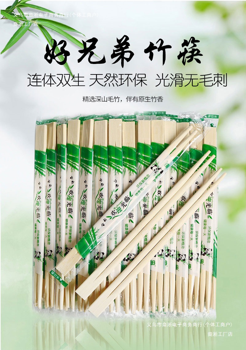 두껍고 긴 일회용 젓가락, 일체형 이중 대나무 젓가락, 식품 등급 가정용 독립 포장, 위생적이고 빠른