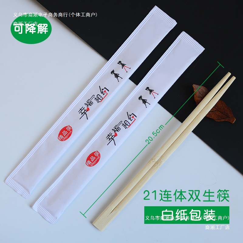 두껍고 긴 일회용 젓가락, 일체형 이중 대나무 젓가락, 식품 등급 가정용 독립 포장, 위생적이고 빠른스토어 가기