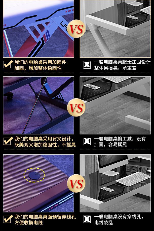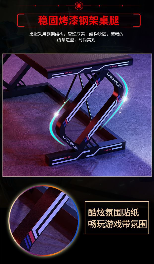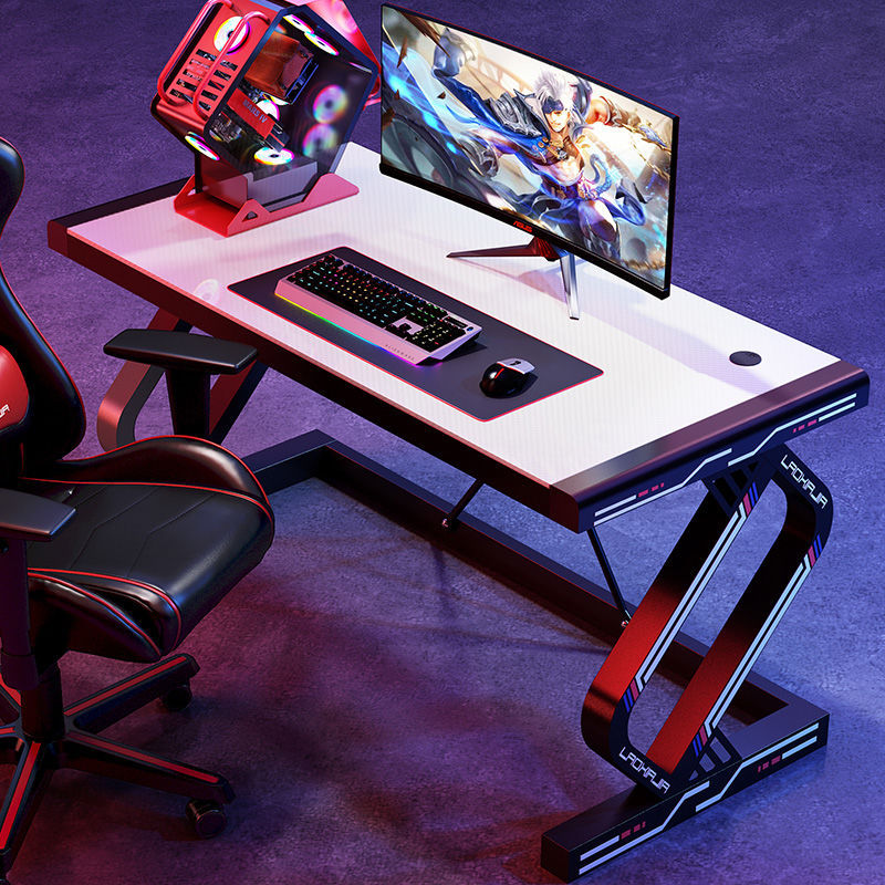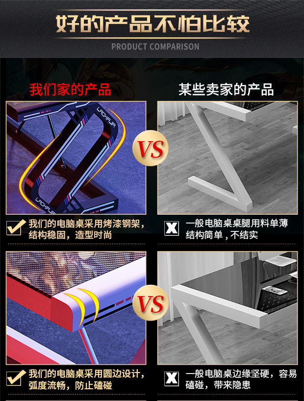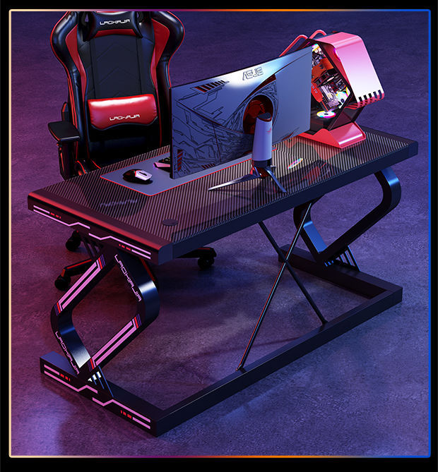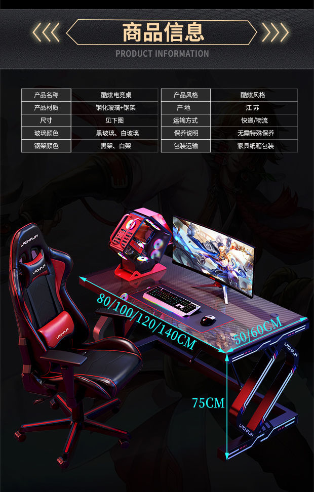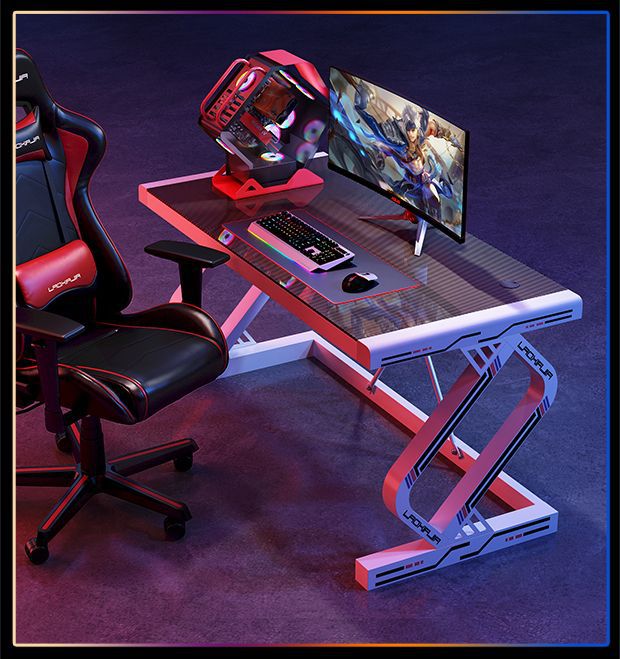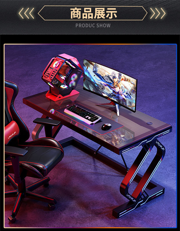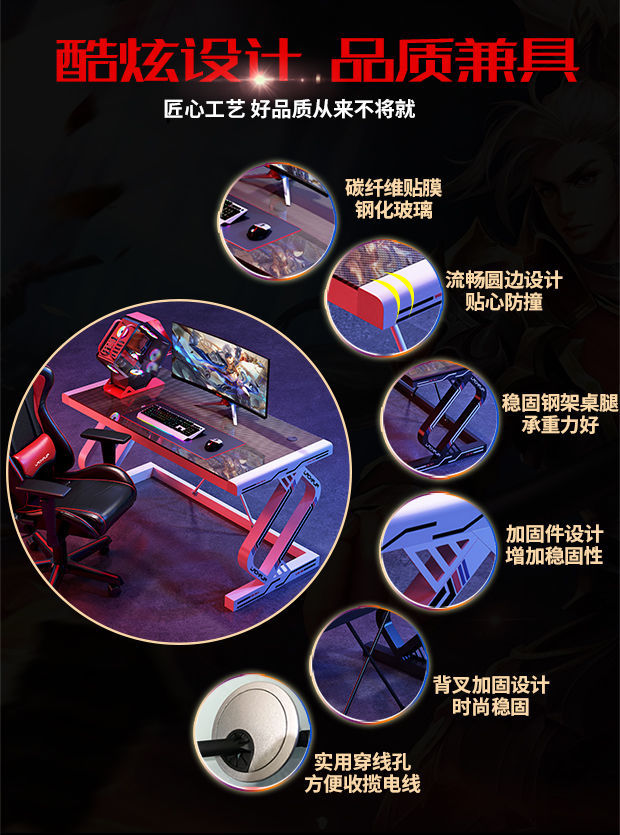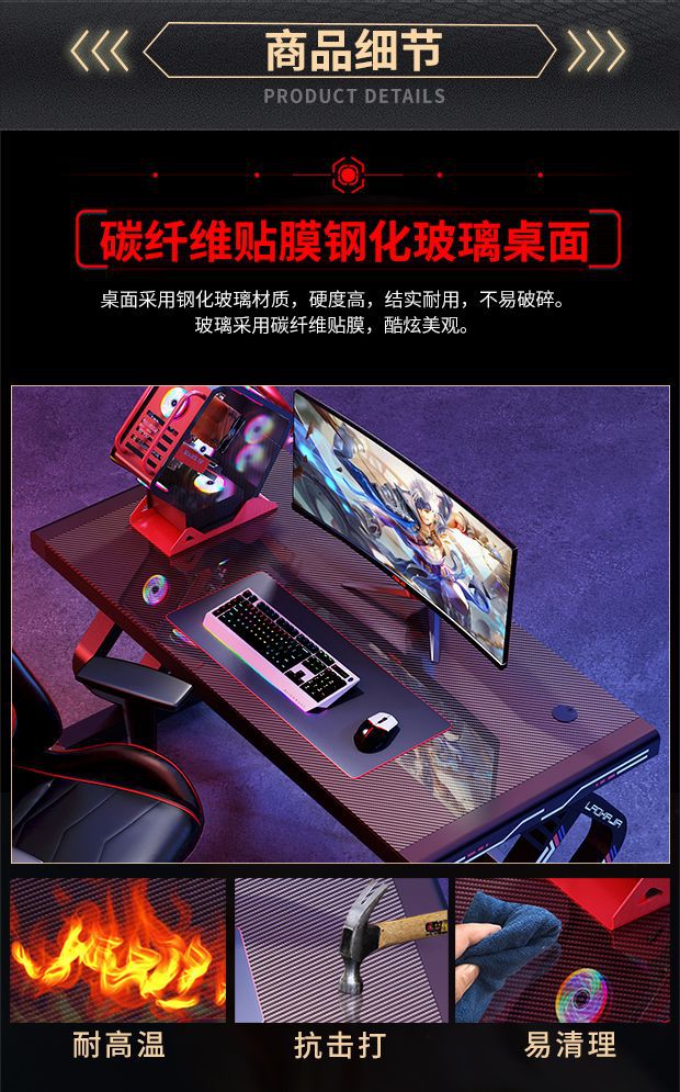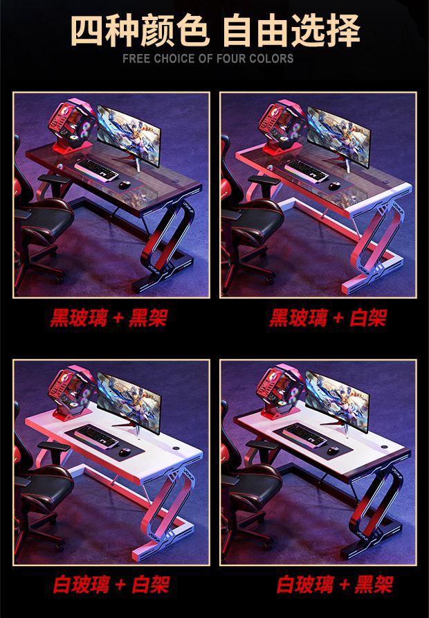 E-스포츠 테이블 데스크탑 홈 컴퓨터 테이블 강화 유리 섬유 질감 간단한 침실 테이블 싱글 및 더블 게임 테이블스토어 가기
