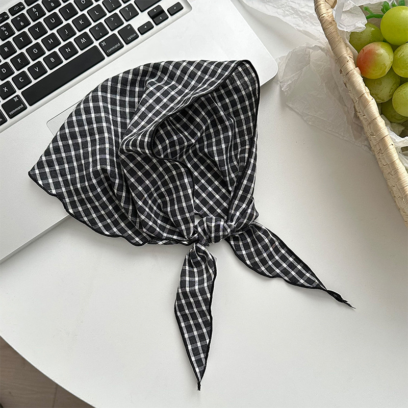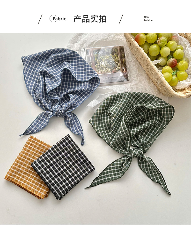 봄과 가을 여성을 위한 삼각 스카프 스카프 새로운 다재다능한 패션 장식 작은 스카프 스카프 격자 무늬 터번 헤드 밴드