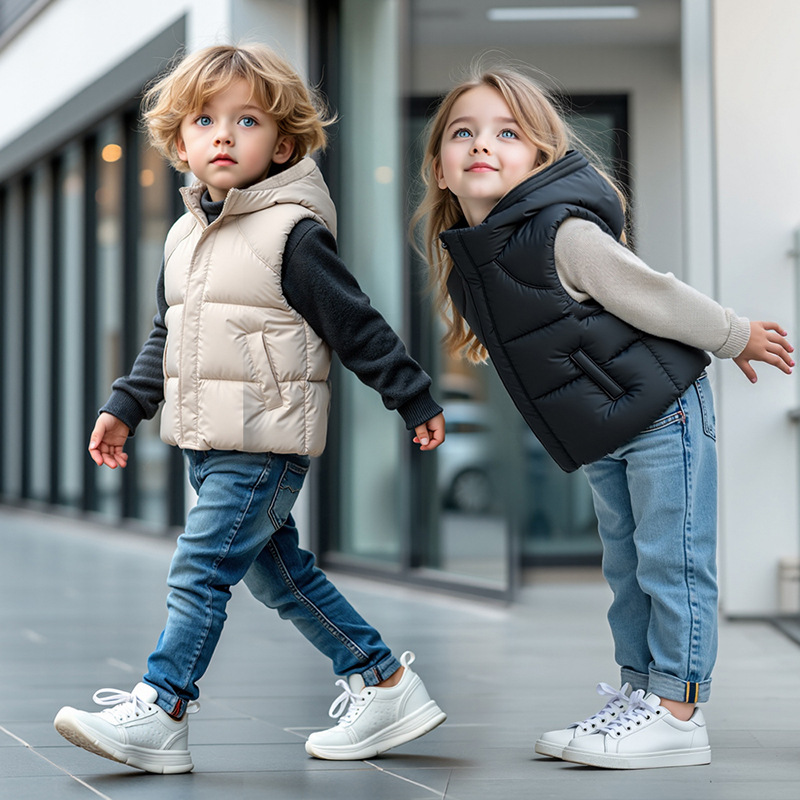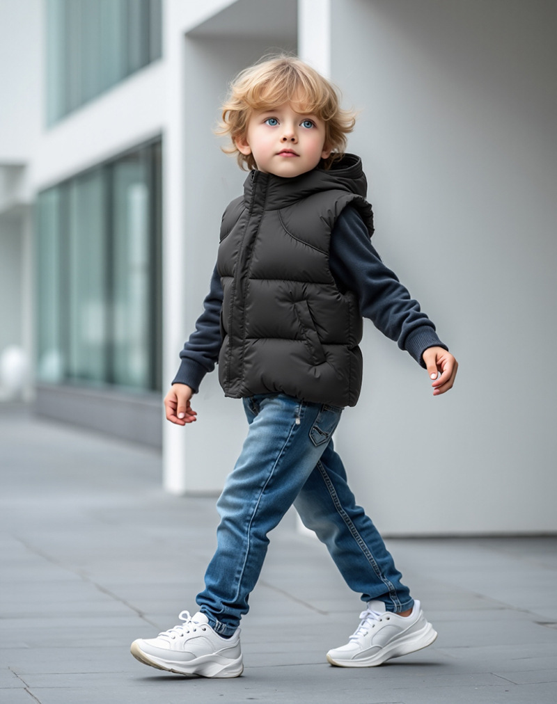 아동복 새로운 면 후드 조끼 겨울 겉옷 소년 소녀, 중대형 아동 25 한국식 두꺼운 양복 조끼 루즈 자켓