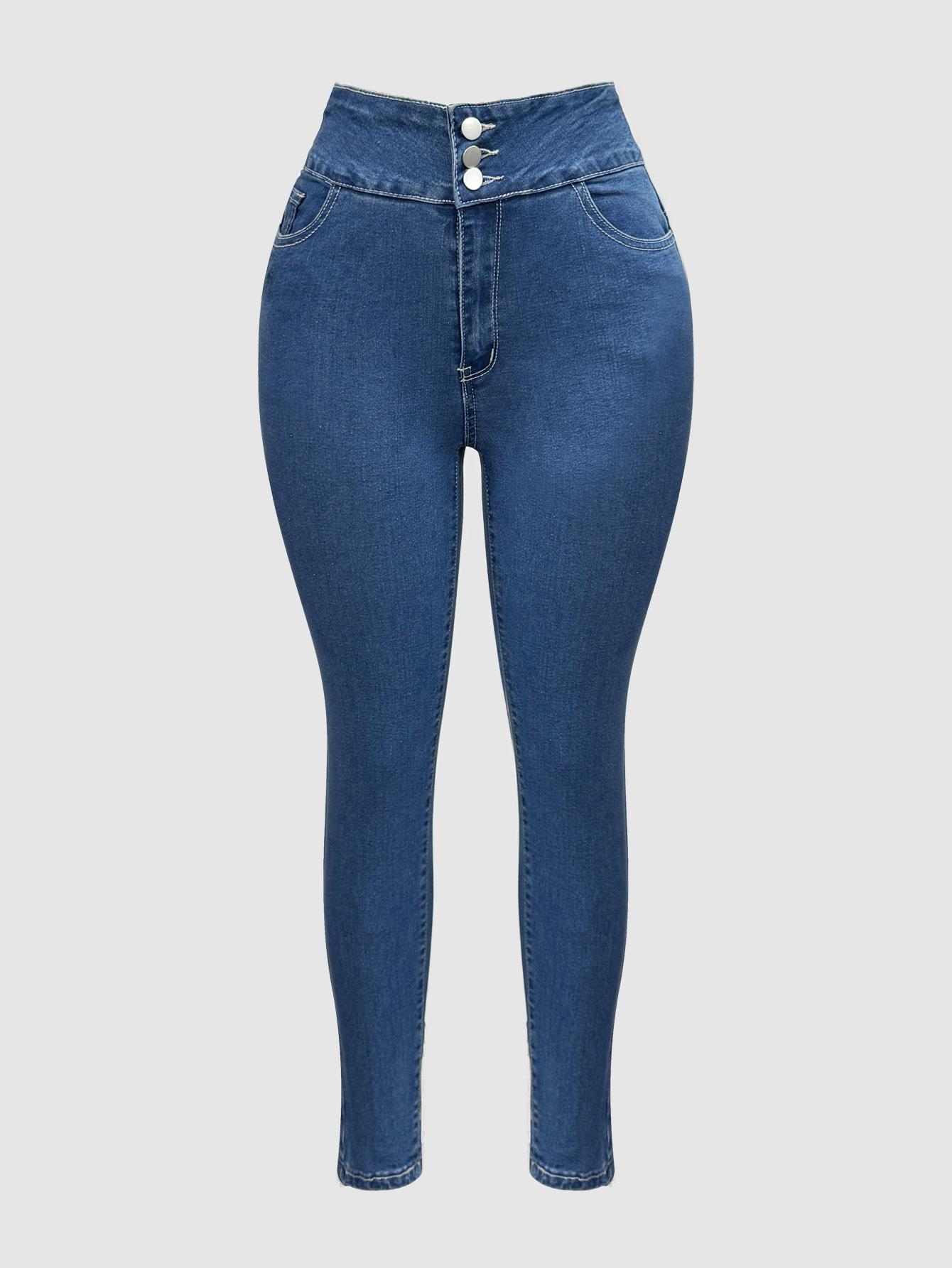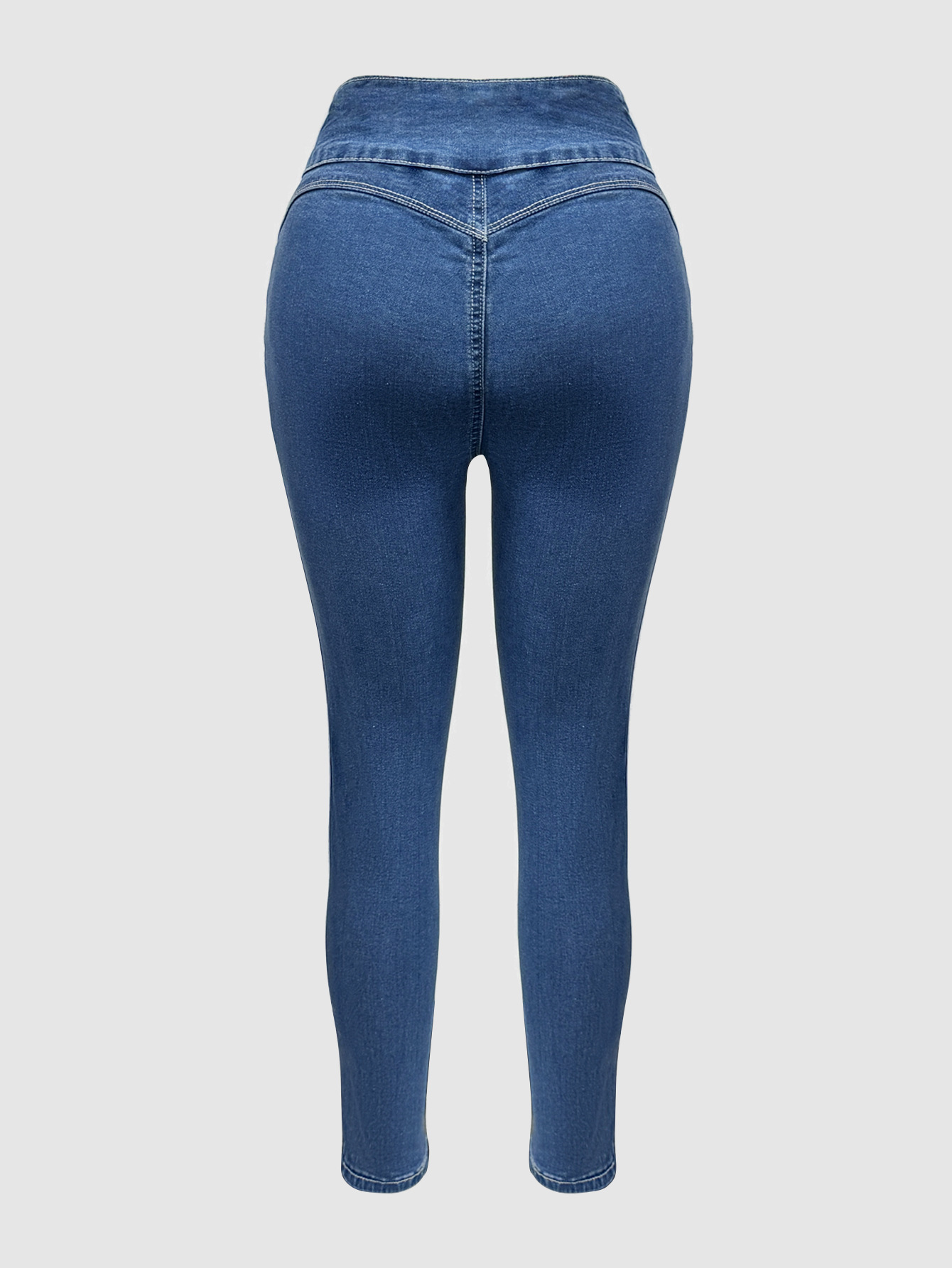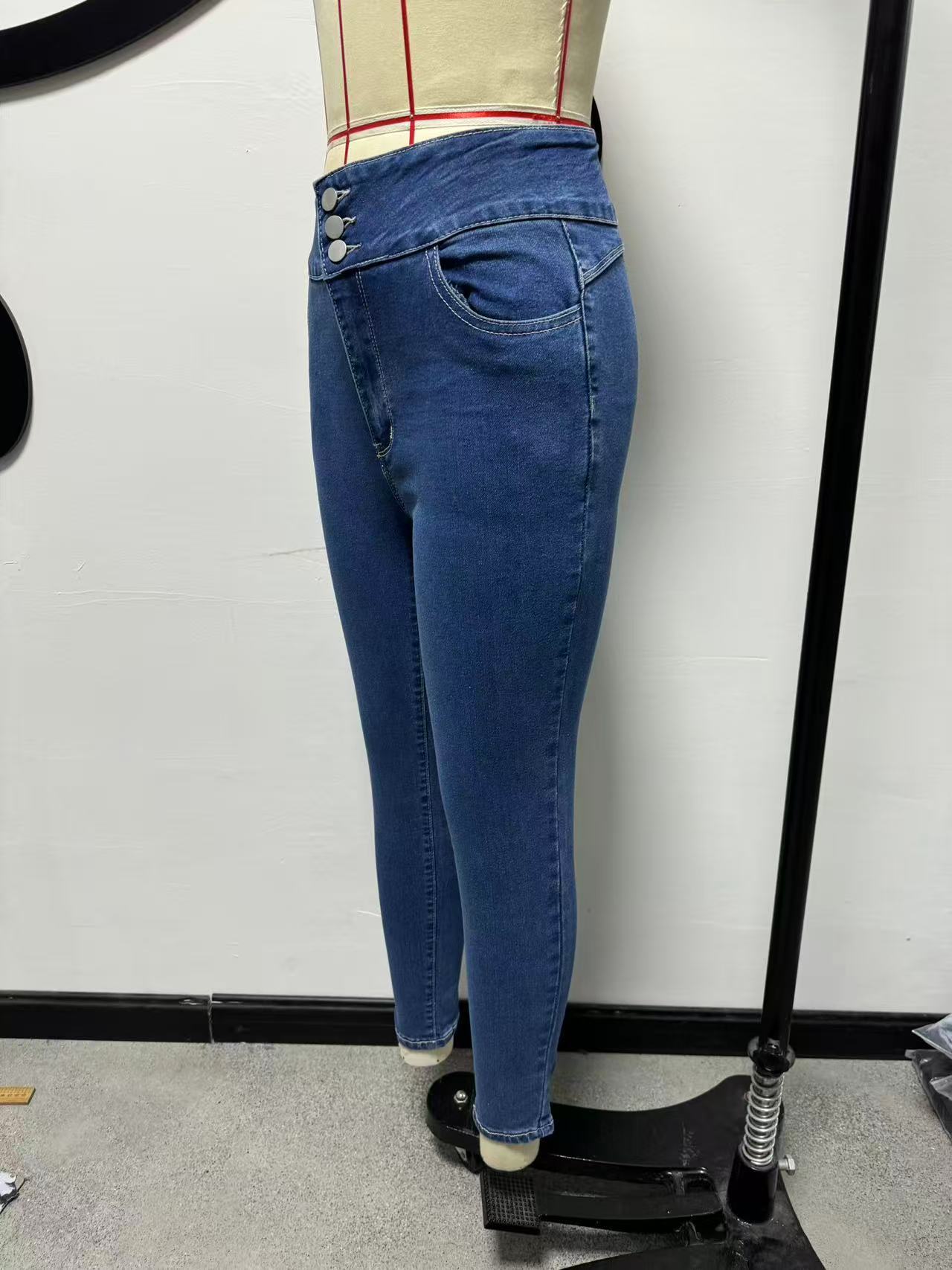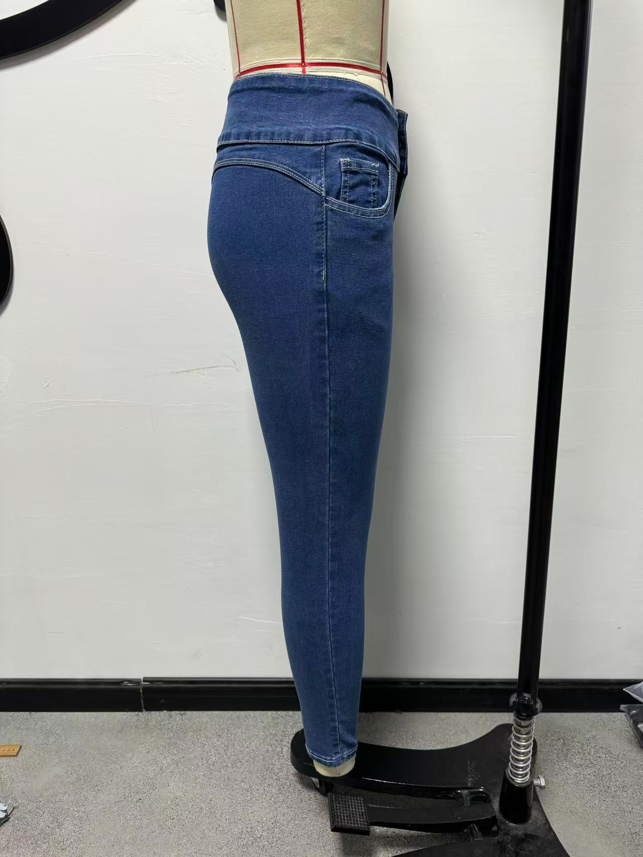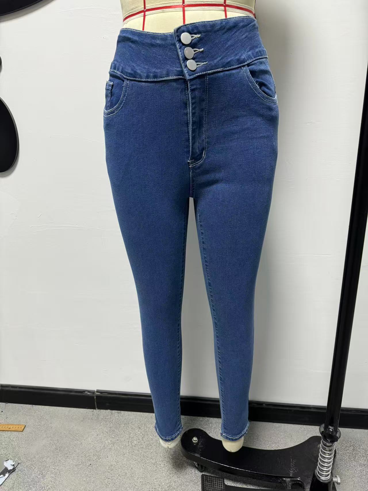 여성용 하이웨이스트 청바지, 9부 타이트핏, 라이트 블루, 2025 여름 신상 슬리밍 스트레치 슬림 팬츠스토어 가기
