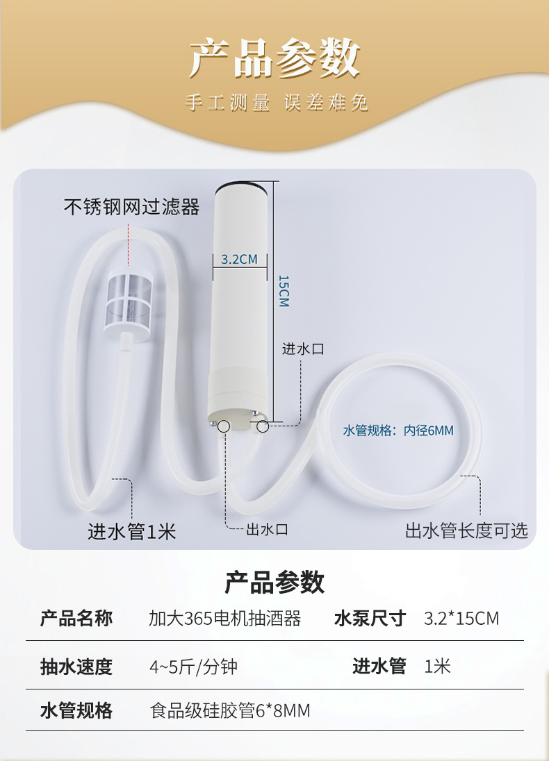 • [인덕션 셀프 스톱] 3400ma 쉘 와인 펌프 + 필터 + 물 배출 파이프 15cm