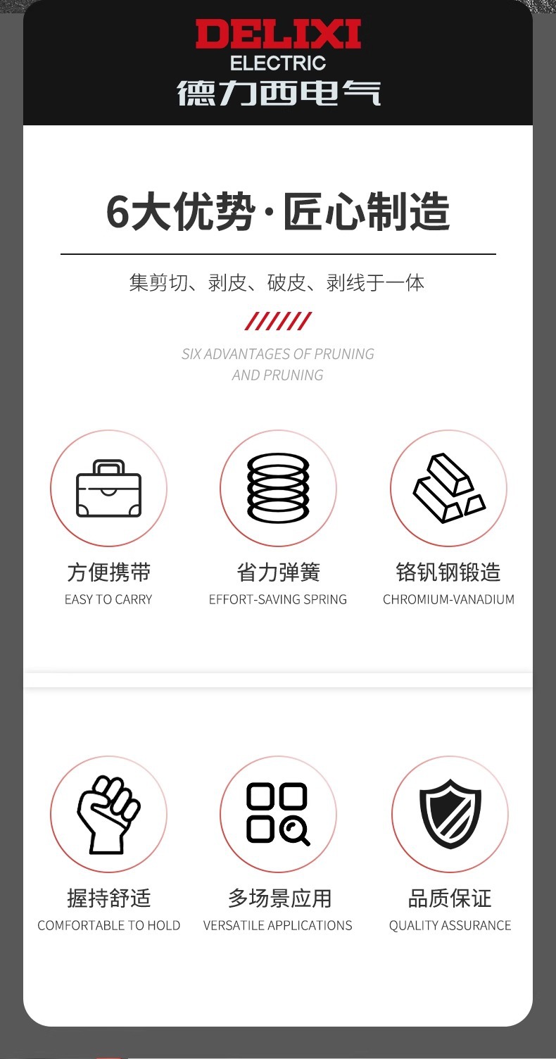 Delixi Electric 다기능 전기 절단 와이어 스트리핑 펜치, 워터 노즐 펜치, 와이어 풀러, 필링 펜치, 네트워크 케이블 커터