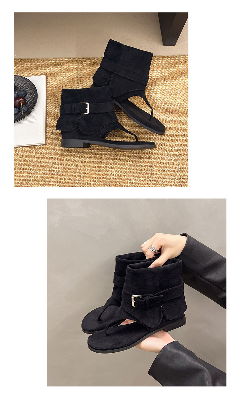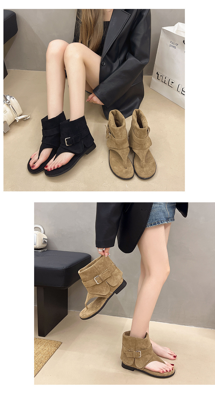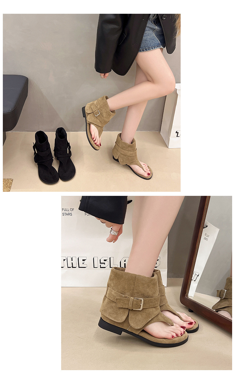 인터넷 연예인 니치 블로거와 같은 스타일의 맞춤형 통기성 로마 신발 여성 캐주얼 플립 플롭 플랫 숏 부츠 샌들