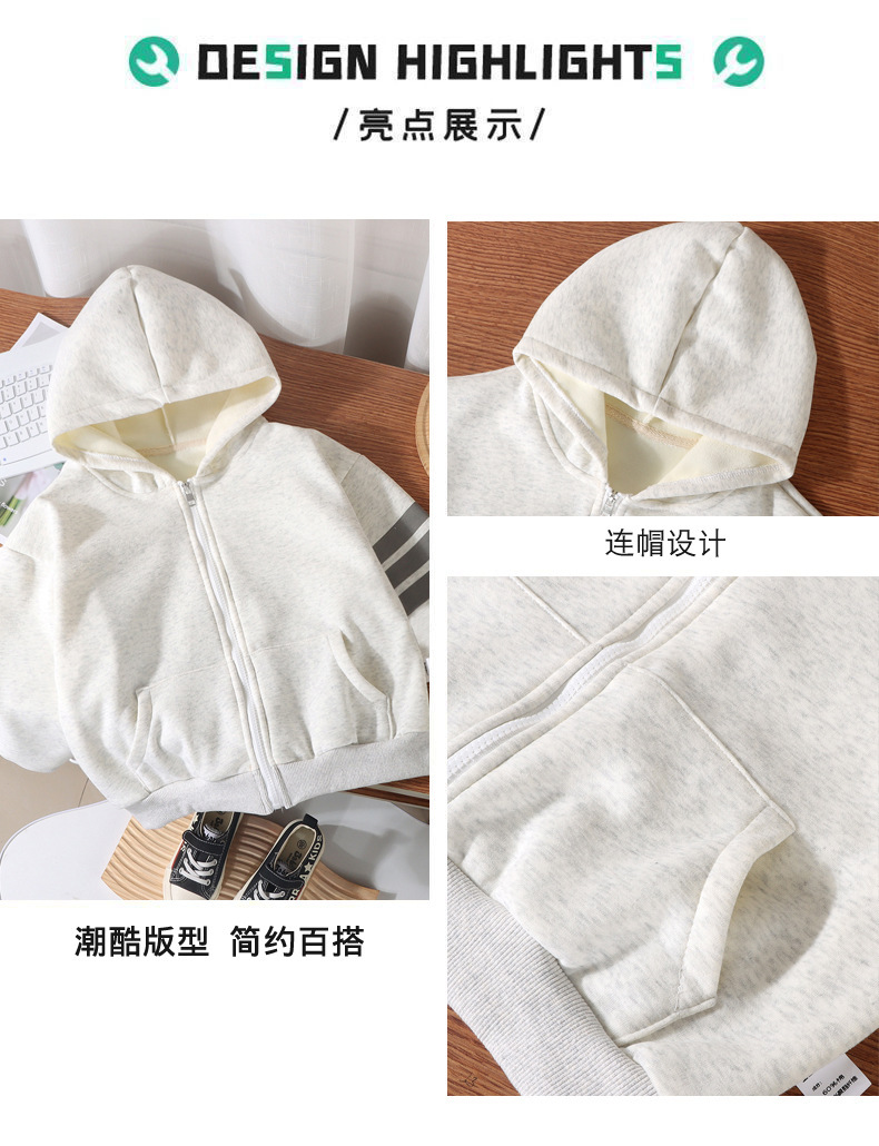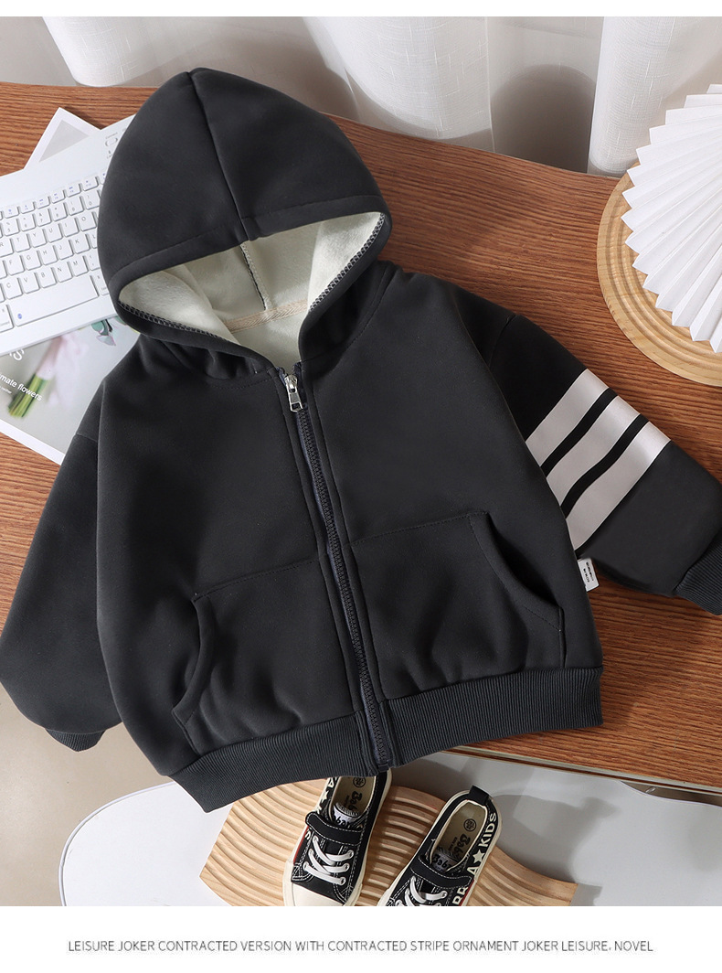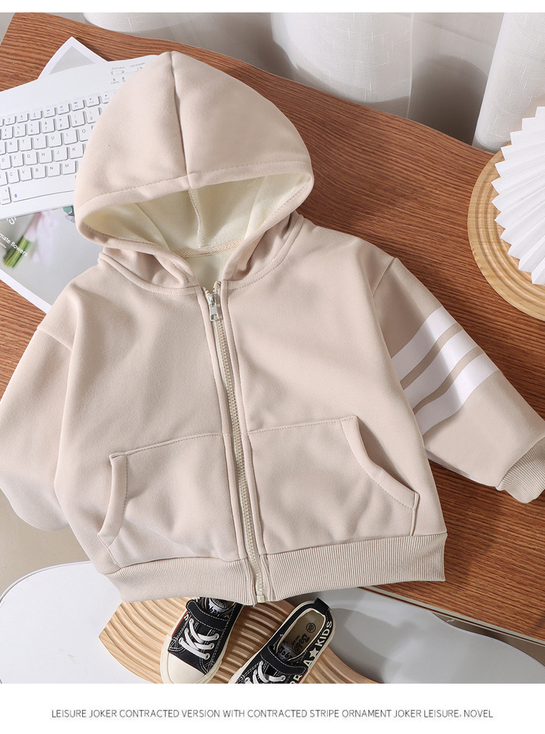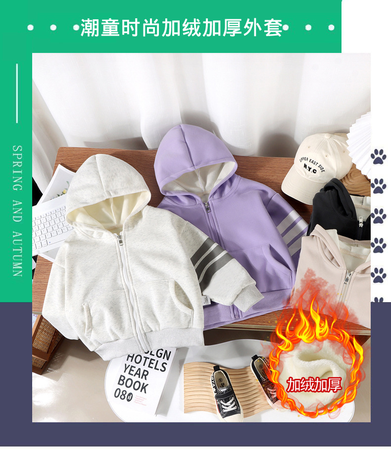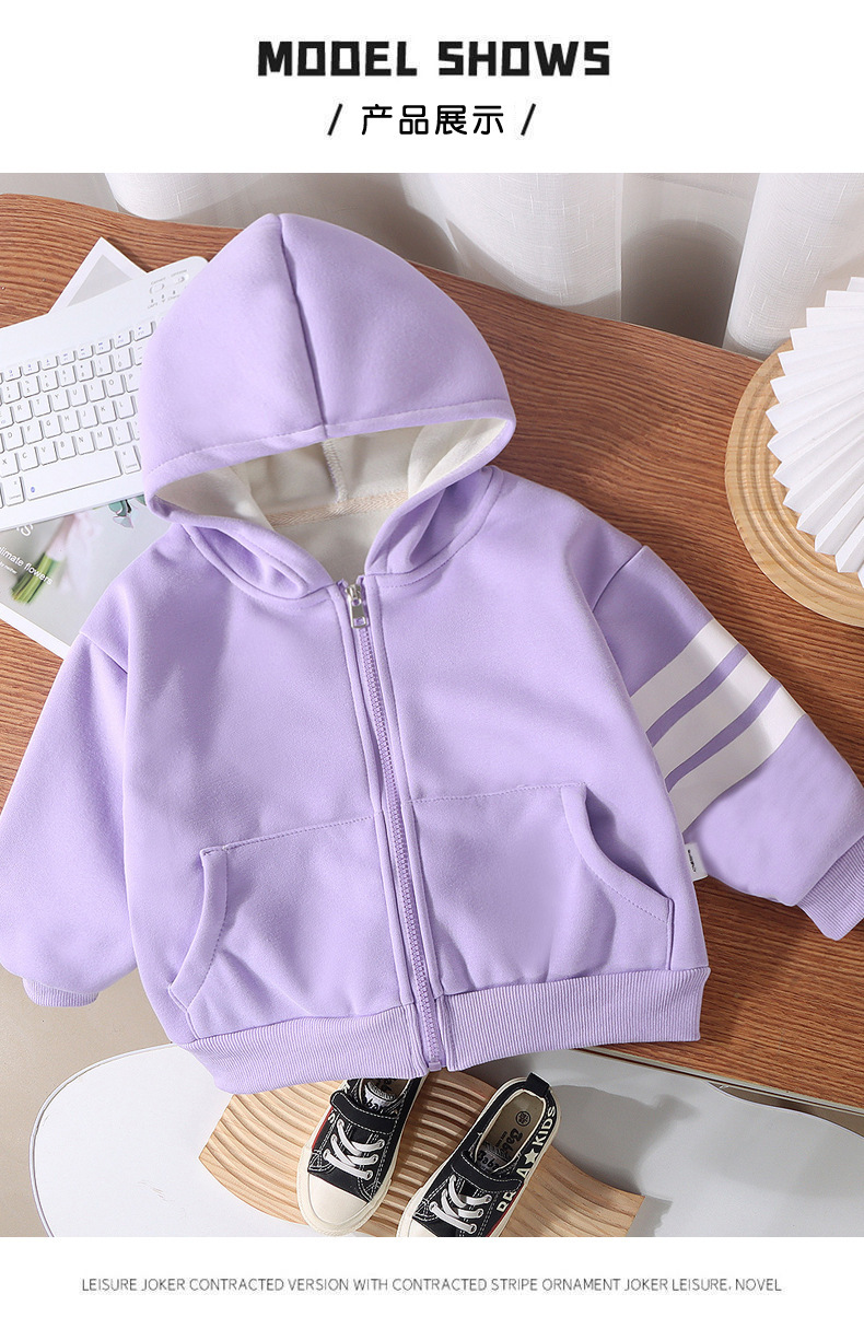 새로운 어린이 후드 벨벳 재킷 가을, 겨울 소년과 소녀 따뜻한 스타일 카디건 아기 단색 지퍼 코튼 스웨트 셔츠