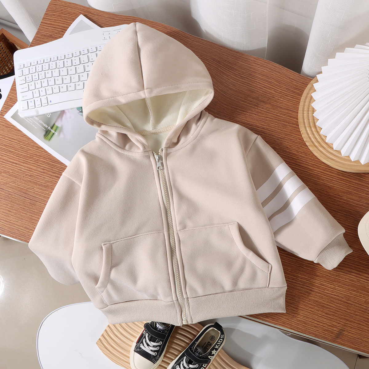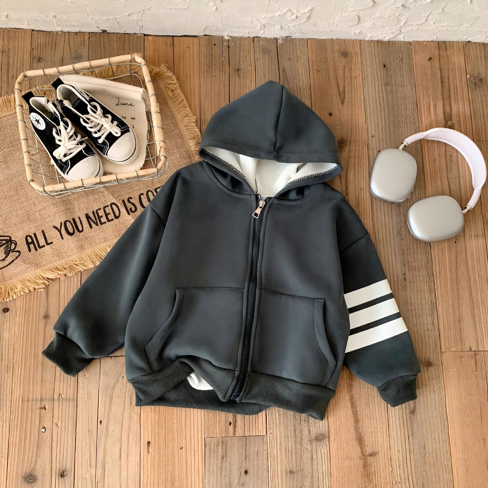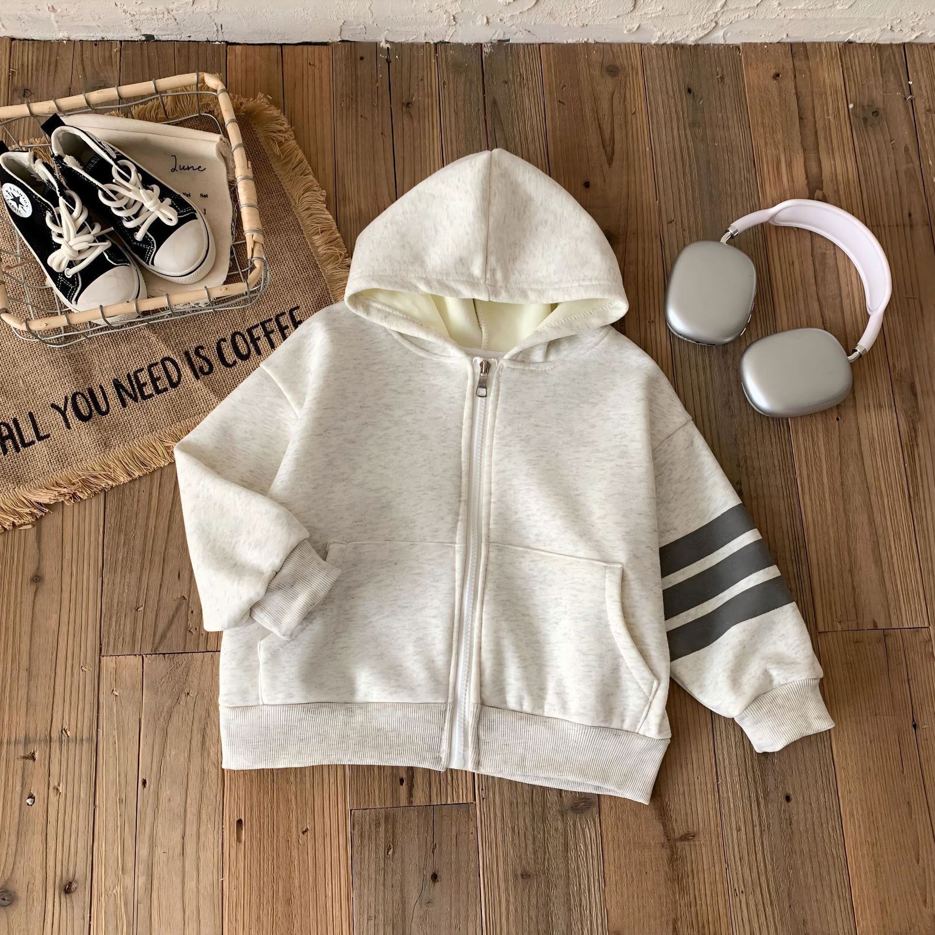 새로운 어린이 후드 벨벳 재킷 가을, 겨울 소년과 소녀 따뜻한 스타일 카디건 아기 단색 지퍼 코튼 스웨트 셔츠스토어 가기