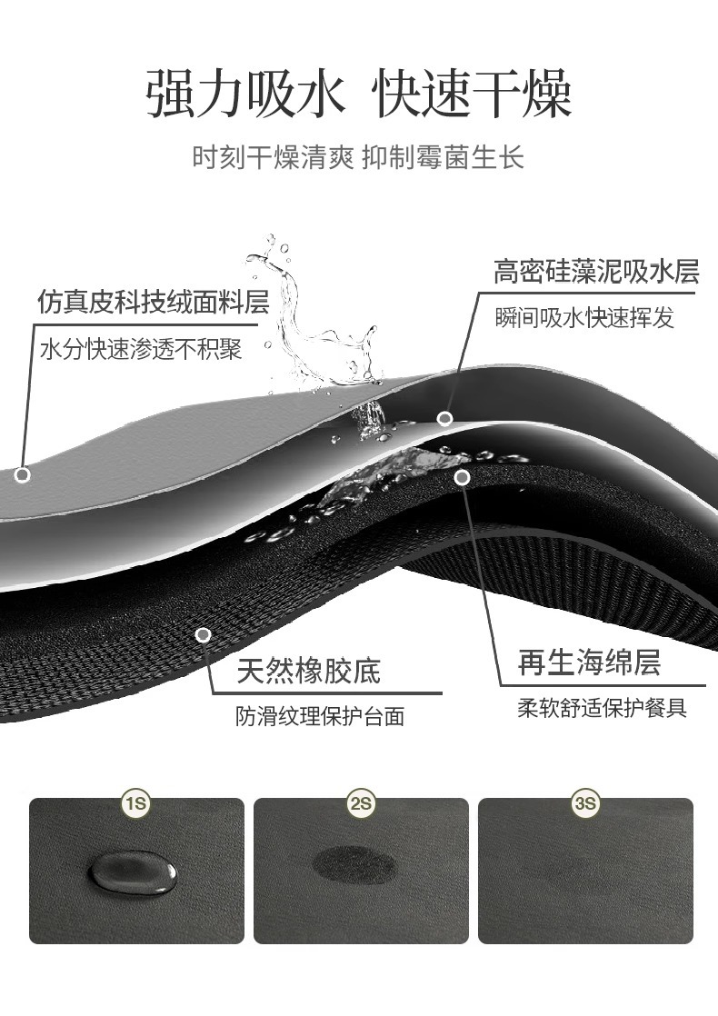 주방 배수 매트, 조리대 고급 흡수 매트, 규조토 절연 플레이스 매트, 데스크탑 속건성 컵 받침, 바 테이블 매트