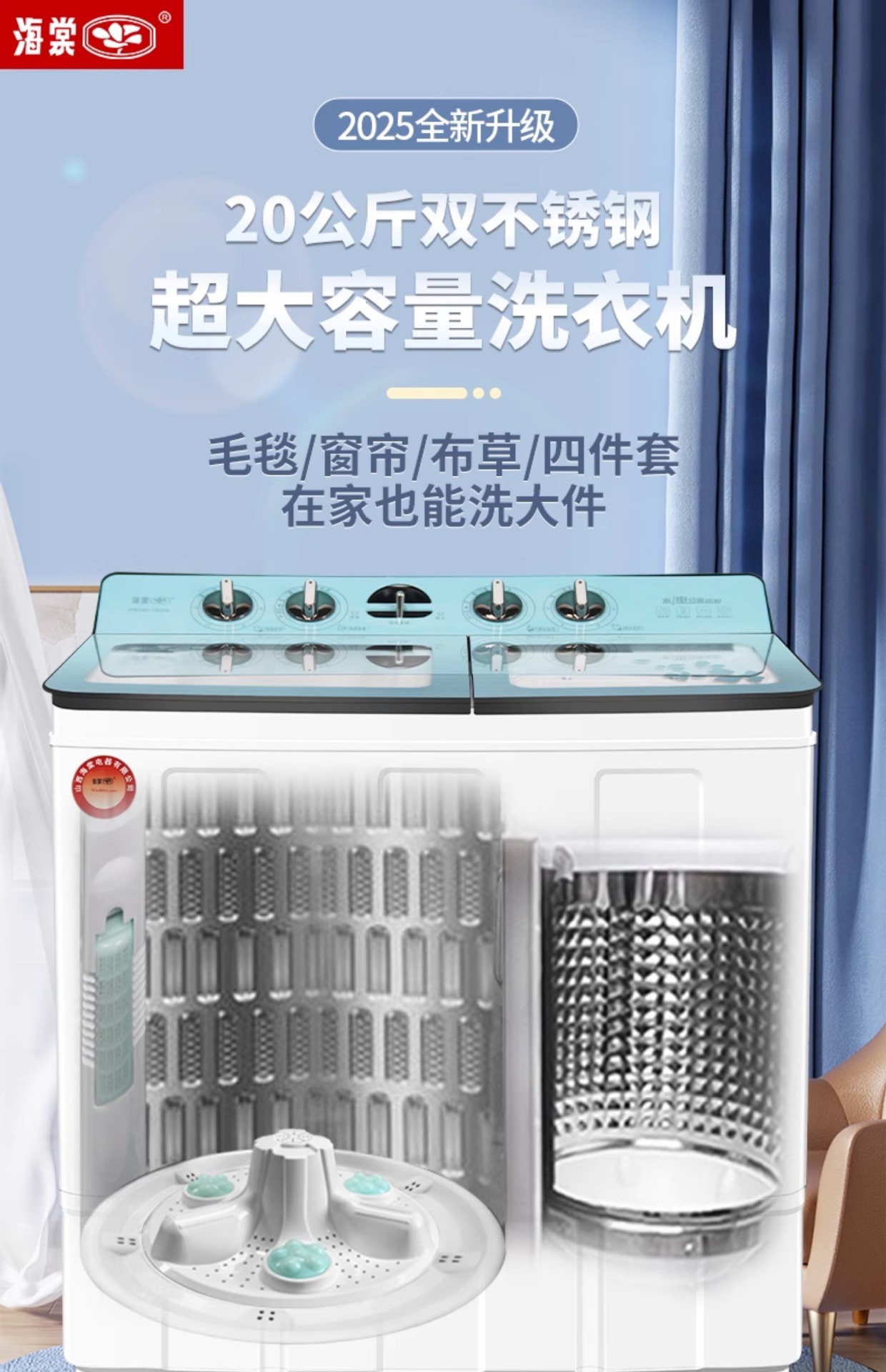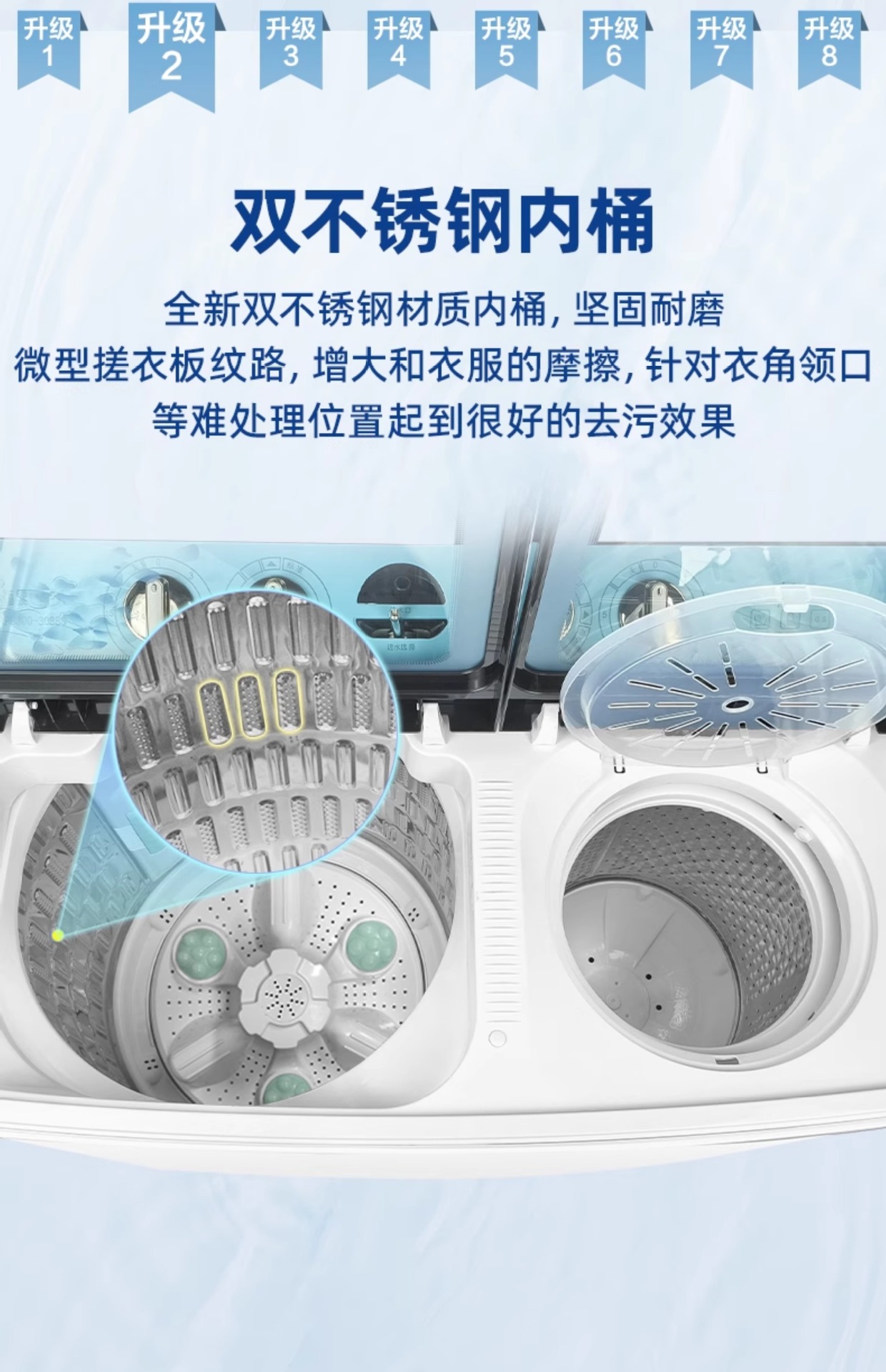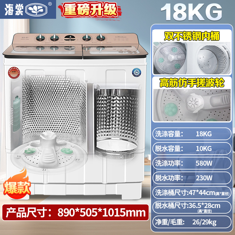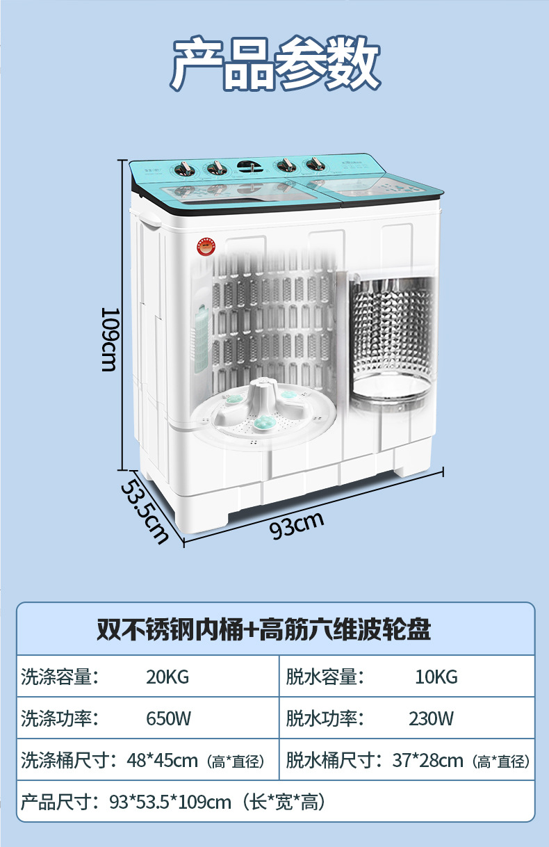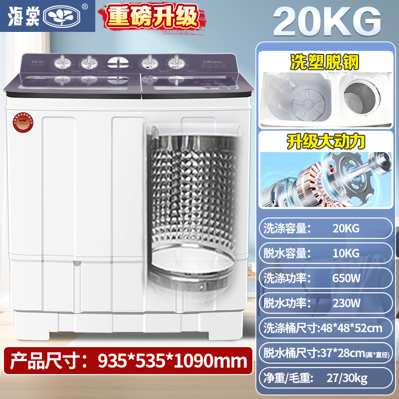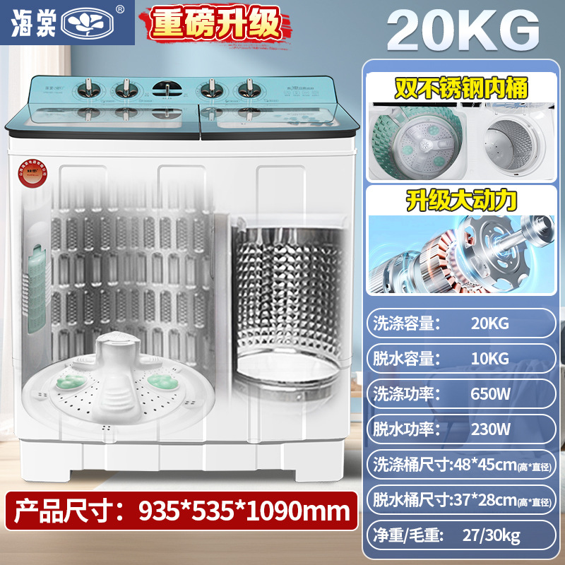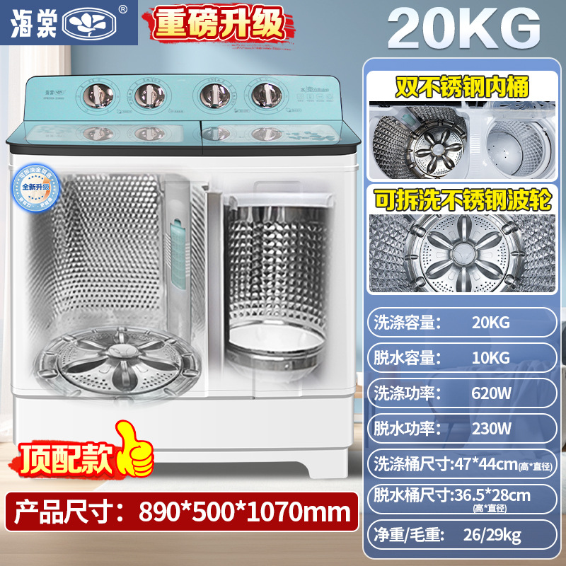 Begonia 20/30KG 반자동 세탁기 가정용 대용량 이중 통 스테인레스 스틸 이중 실린더 상업용 호텔 및 B&B