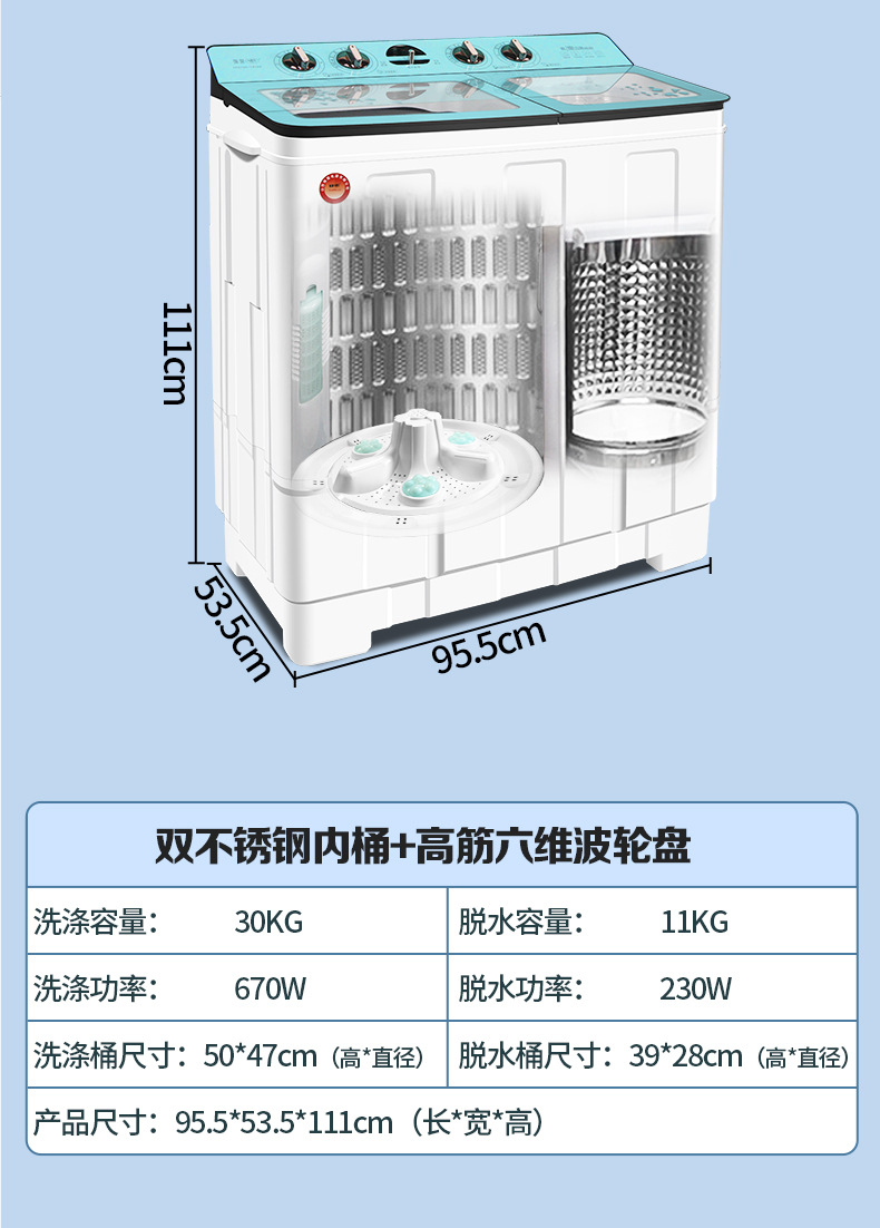 • 30KG 이중 스테인레스 스틸 배럴 순수 구리 모터 블루