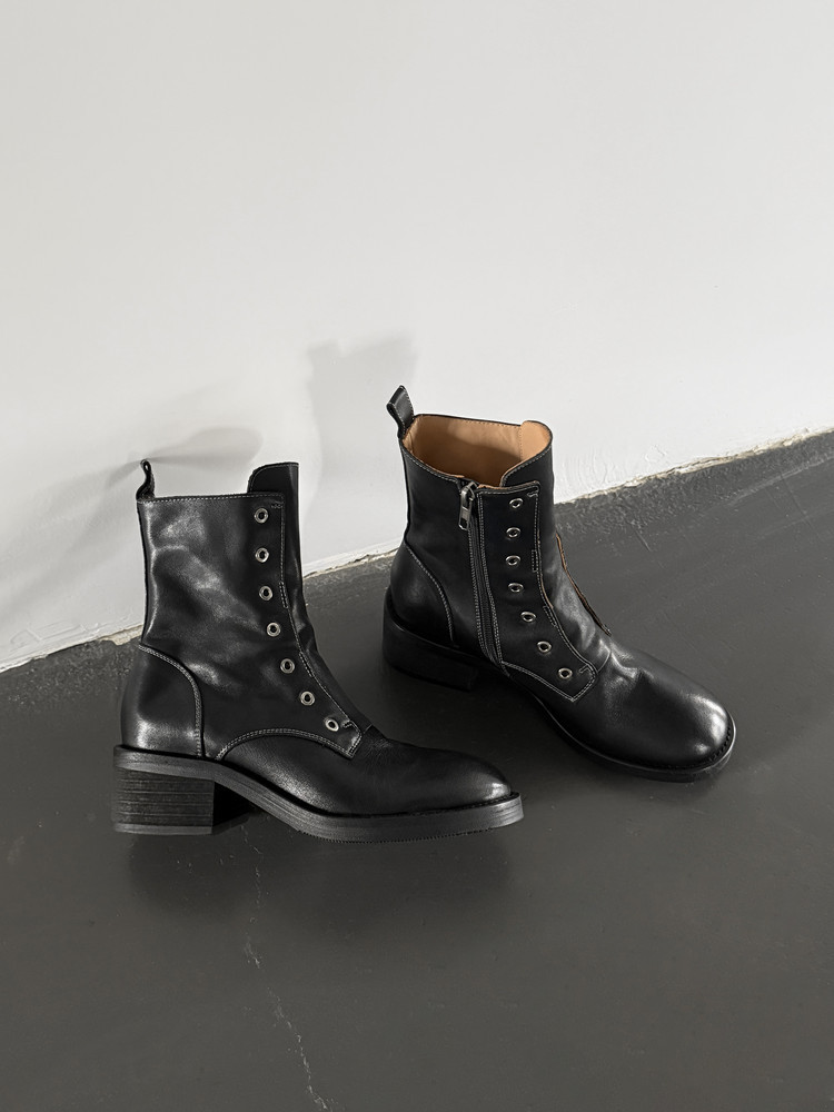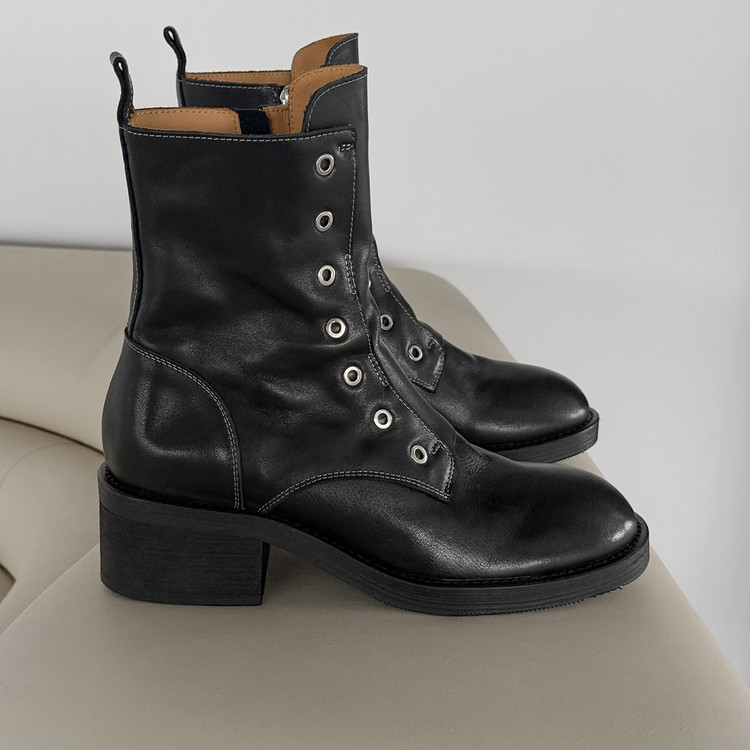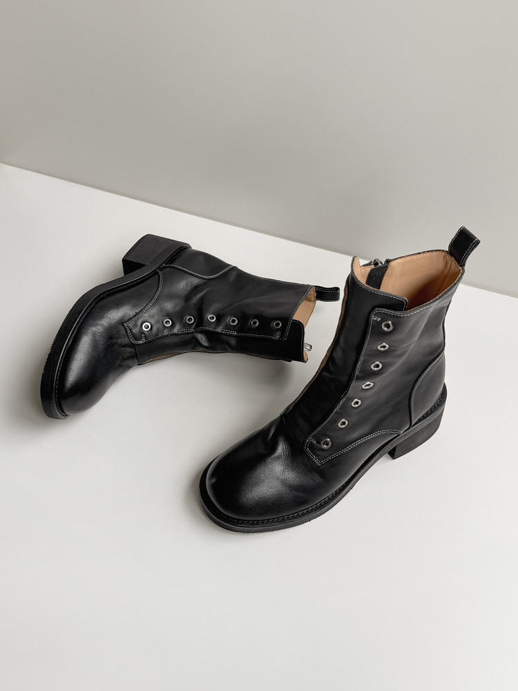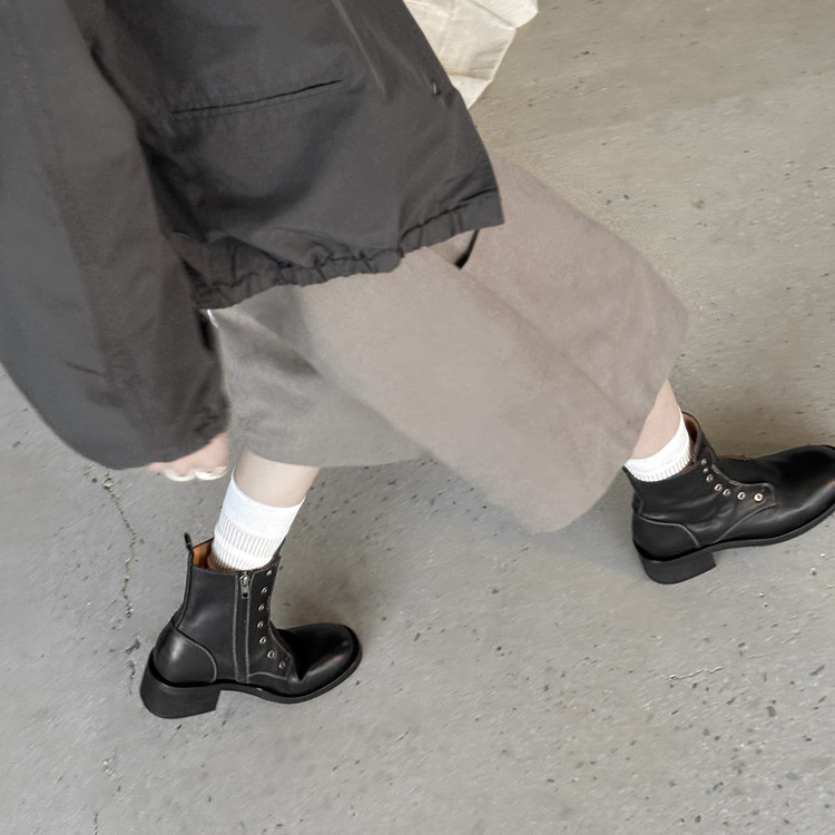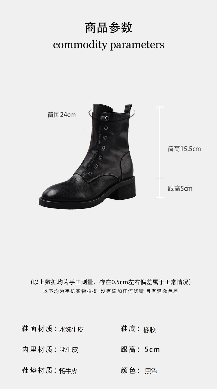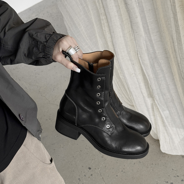 여성용 1층 소가죽 마틴 부츠, 두꺼운 굽 싱글 부츠, 가을 신상품, 내부 및 외부 천연 가죽 라운드 토 미드힐 오토바이 부츠, 여성용 숏부츠스토어 가기