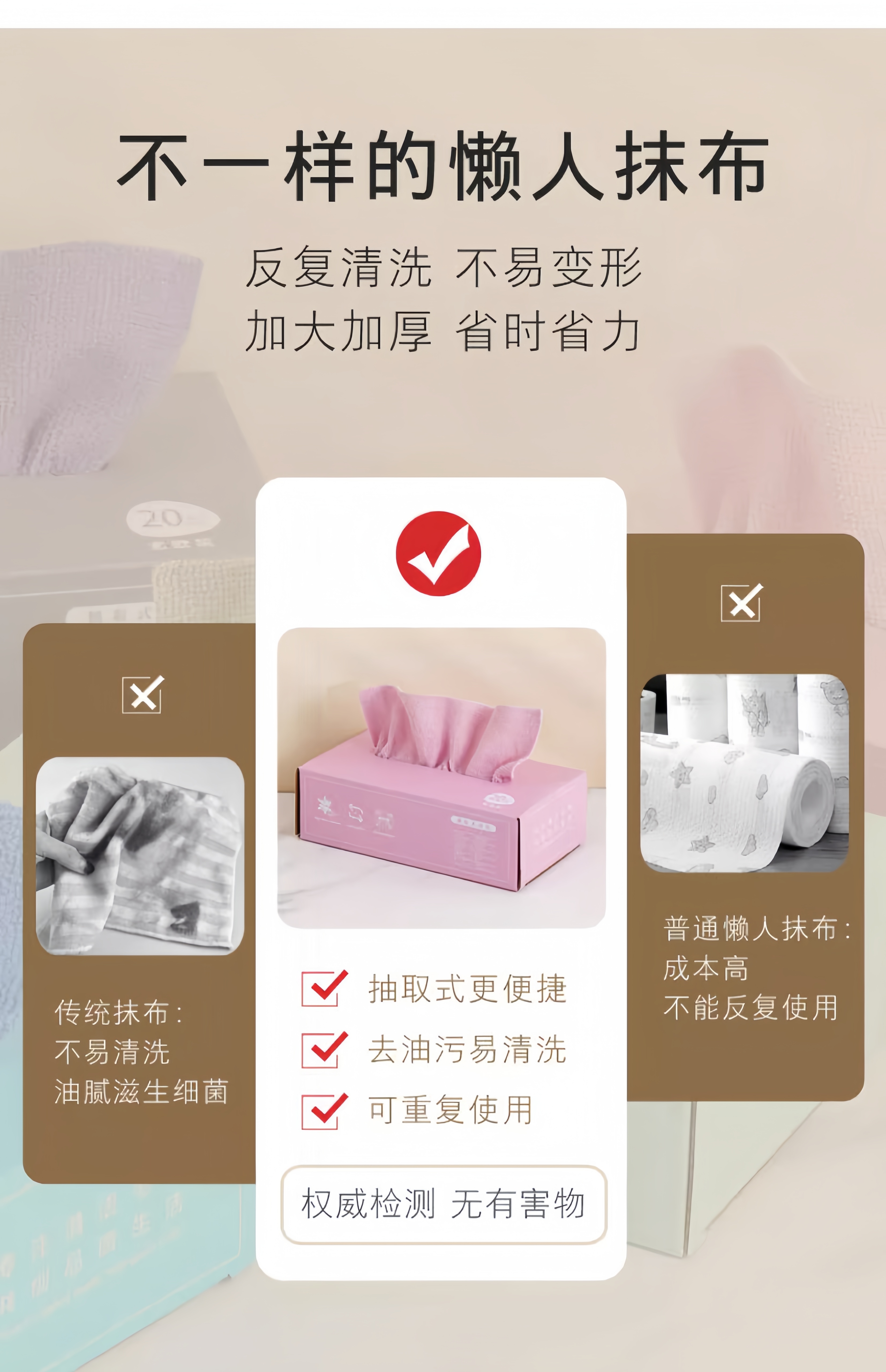 탈착식 주방걸레, 일회용 게으른걸레, 두껍고 세탁 가능한 설거지용 천, 습식 및 건식 수세미