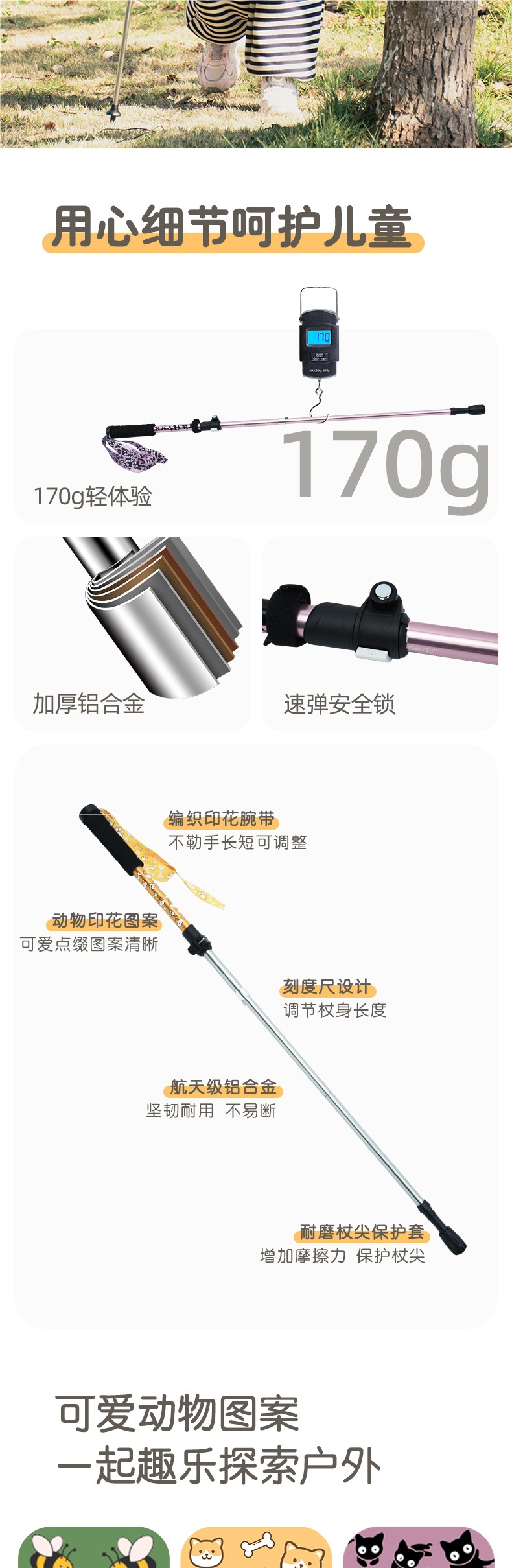 만화 어린이 등산 스틱 야외 텔레스코픽 스틱 휴대용 알루미늄 합금 접는 스틱 등산 트레킹 스틱