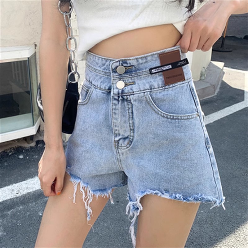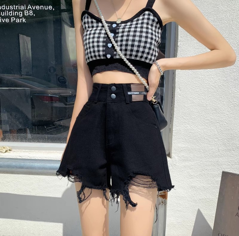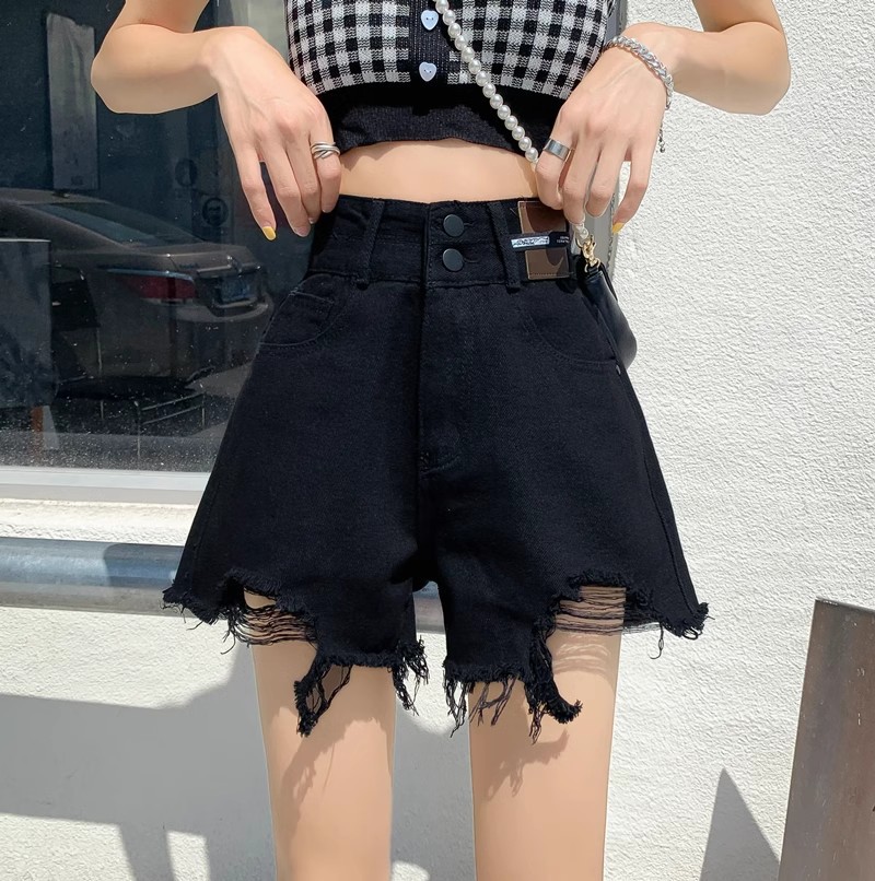 여성용 블랙 찢어진 와이드 레그 데님 반바지 여름 2025 새로운 대형 하이 웨이스트 a 라인 로우 엣지 핫 팬츠 트렌드스토어 가기