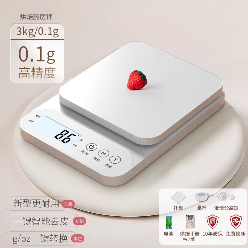 • 흰색 스테인리스 스틸 스케일 배터리 모델 3kg/0.1g [백라이트 포함, 사은품 패키지]