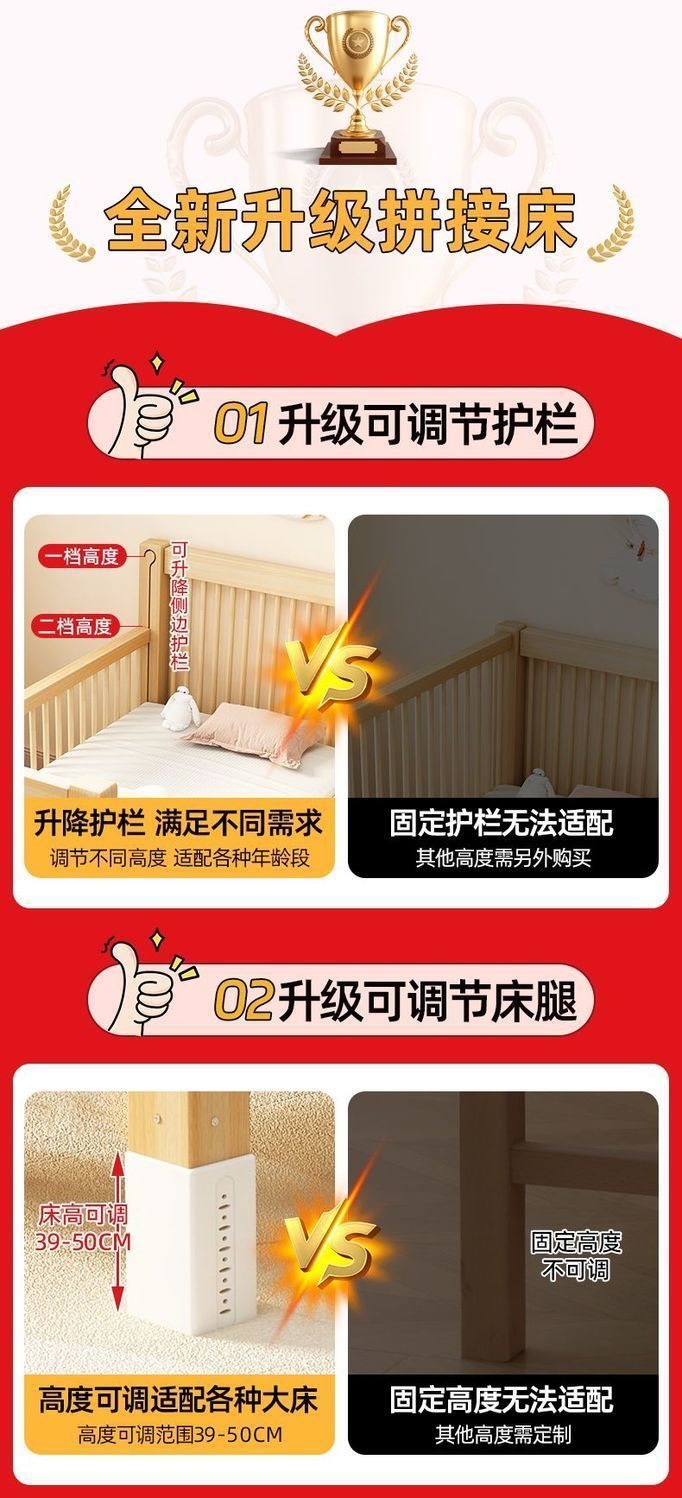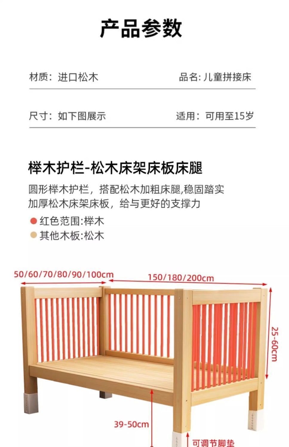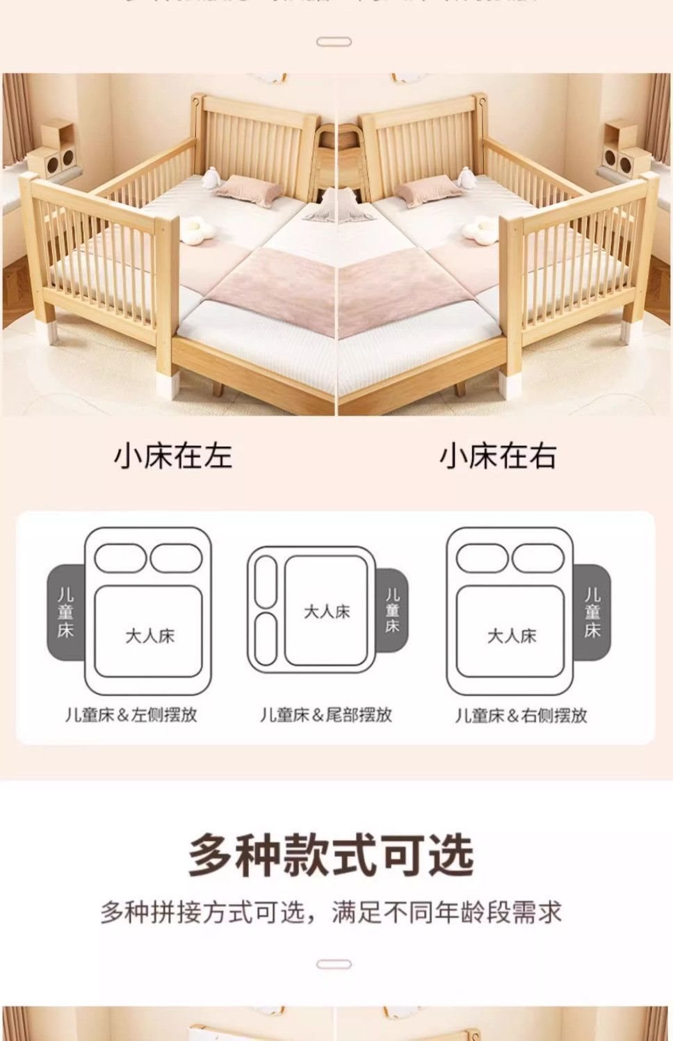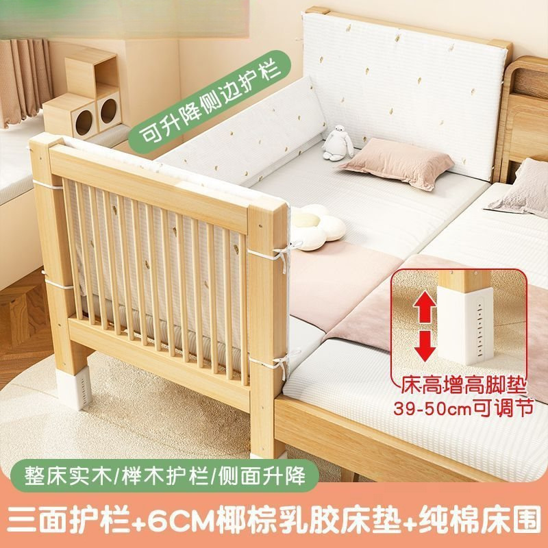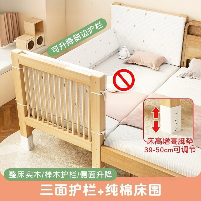 모든 원목 어린이 침대, 어린이 접합 유아용 침대, 아기 리프팅 및 확장 침대 옆 대형 침대 유아용 침대, 너도밤나무 가드레일--스토어 가기