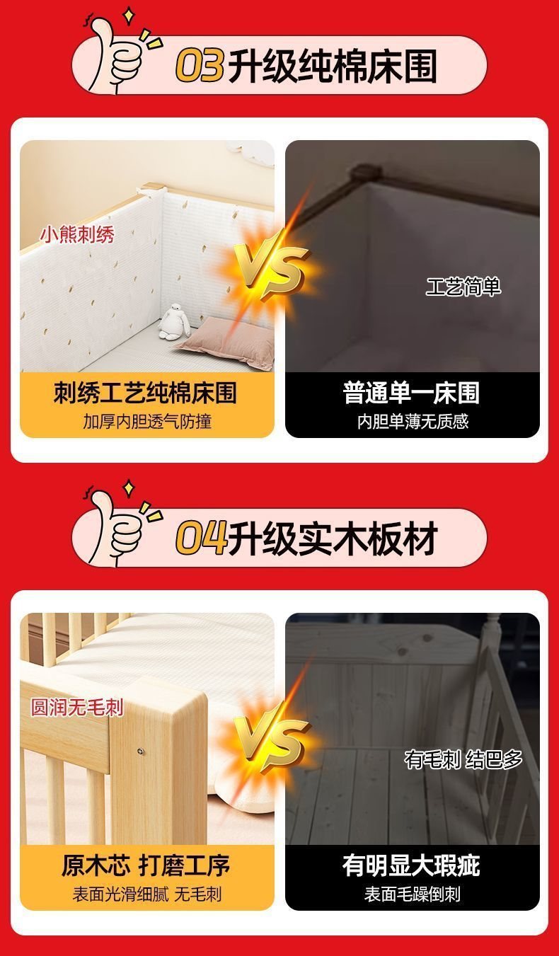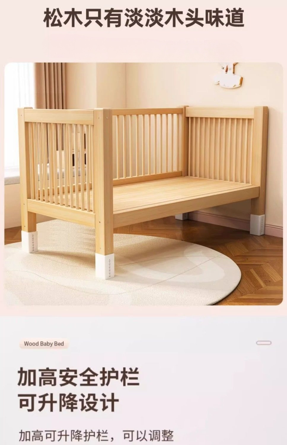 모든 원목 어린이 침대, 어린이 접합 유아용 침대, 아기 리프팅 및 확장 침대 옆 대형 침대 유아용 침대, 너도밤나무 가드레일--
