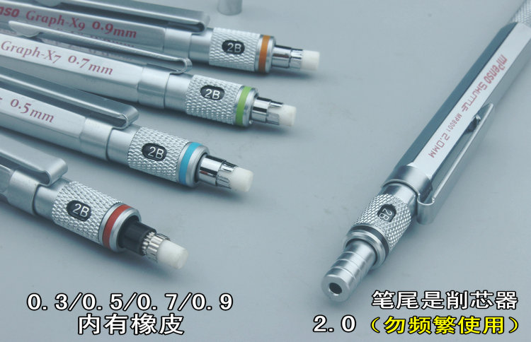자동 연필 2.0/0.3/0.5/0.7/0.9 만화 그림 전체 금속 무거운 느낌 디자인 그리기스토어 가기