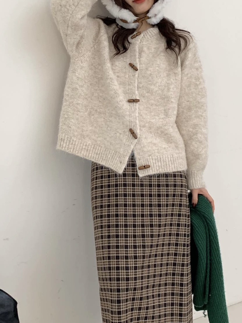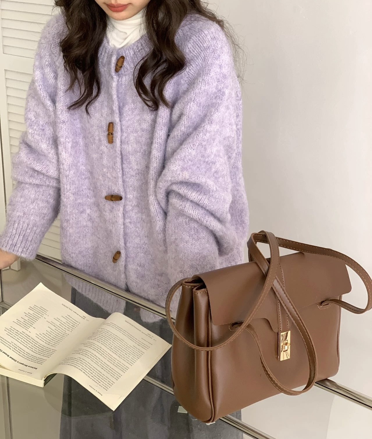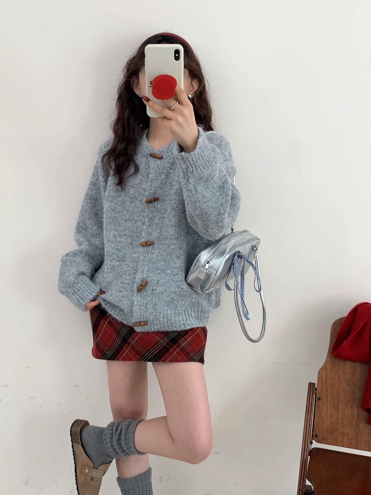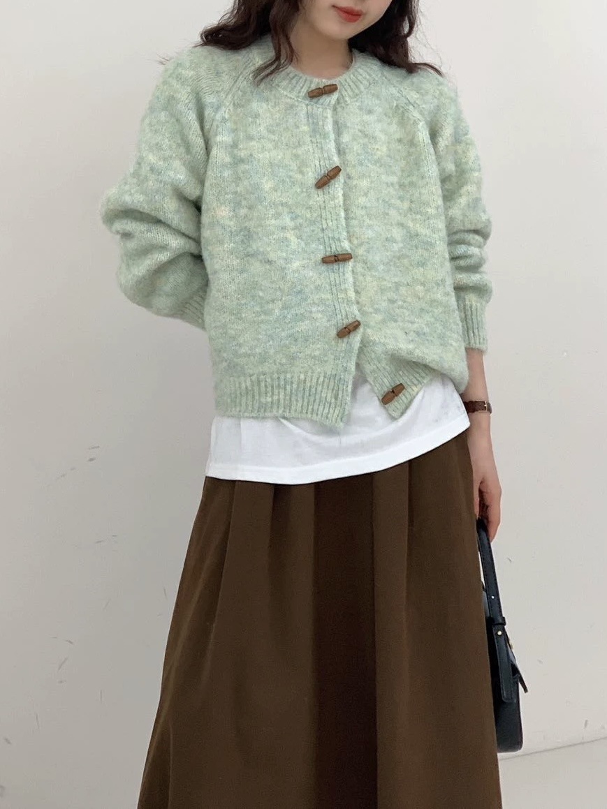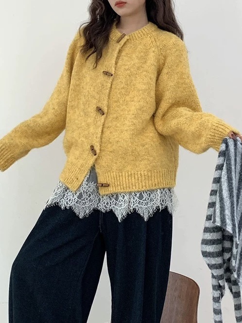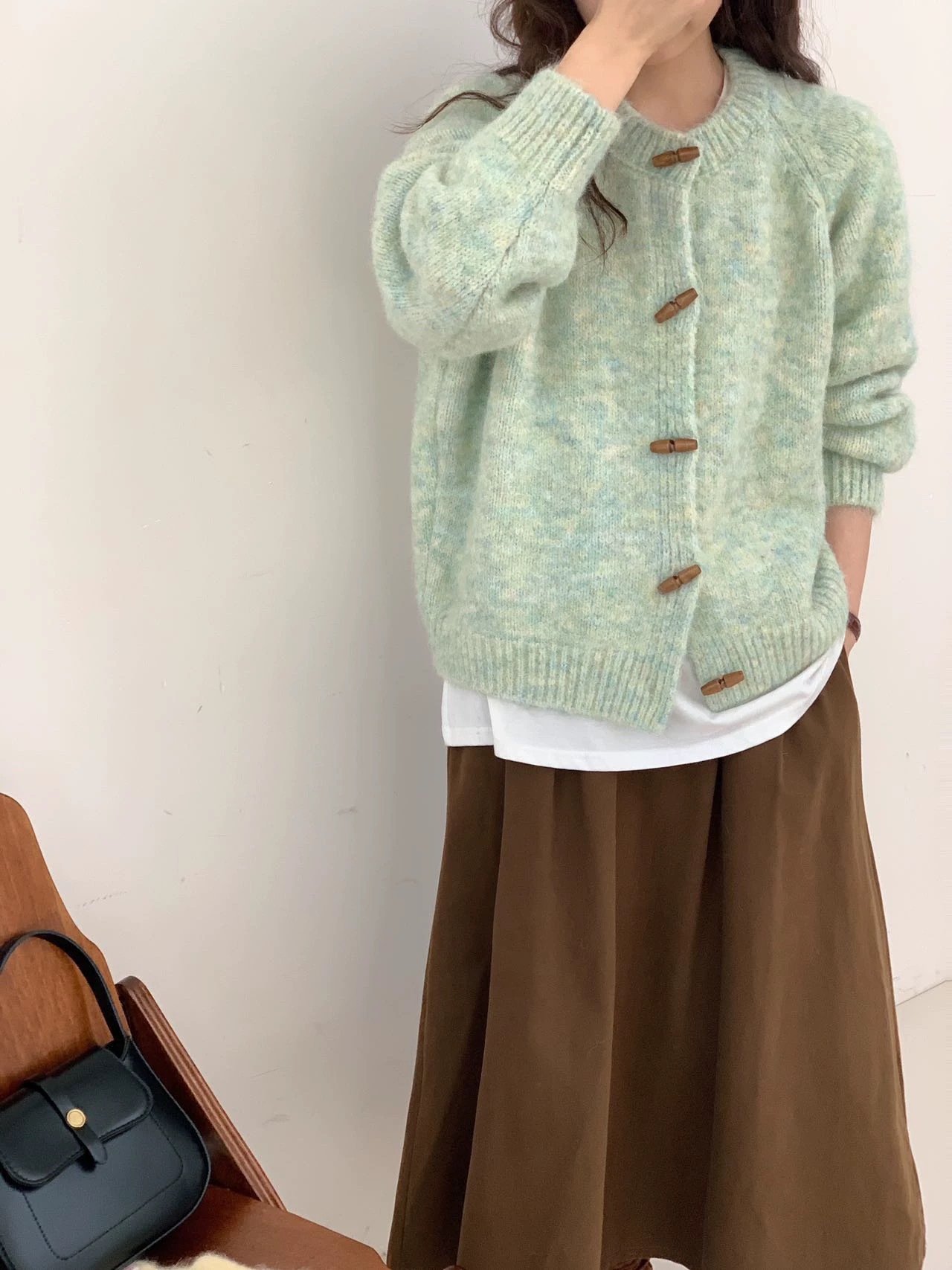 2025 대학 스타일 혼 버튼 부드러운 밀랍 니트 카디건 여성 가을, 겨울 새로운 한국 스타일 느슨한 게으른 스타일 스웨터 재킷스토어 가기