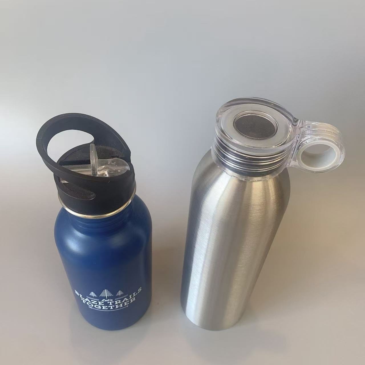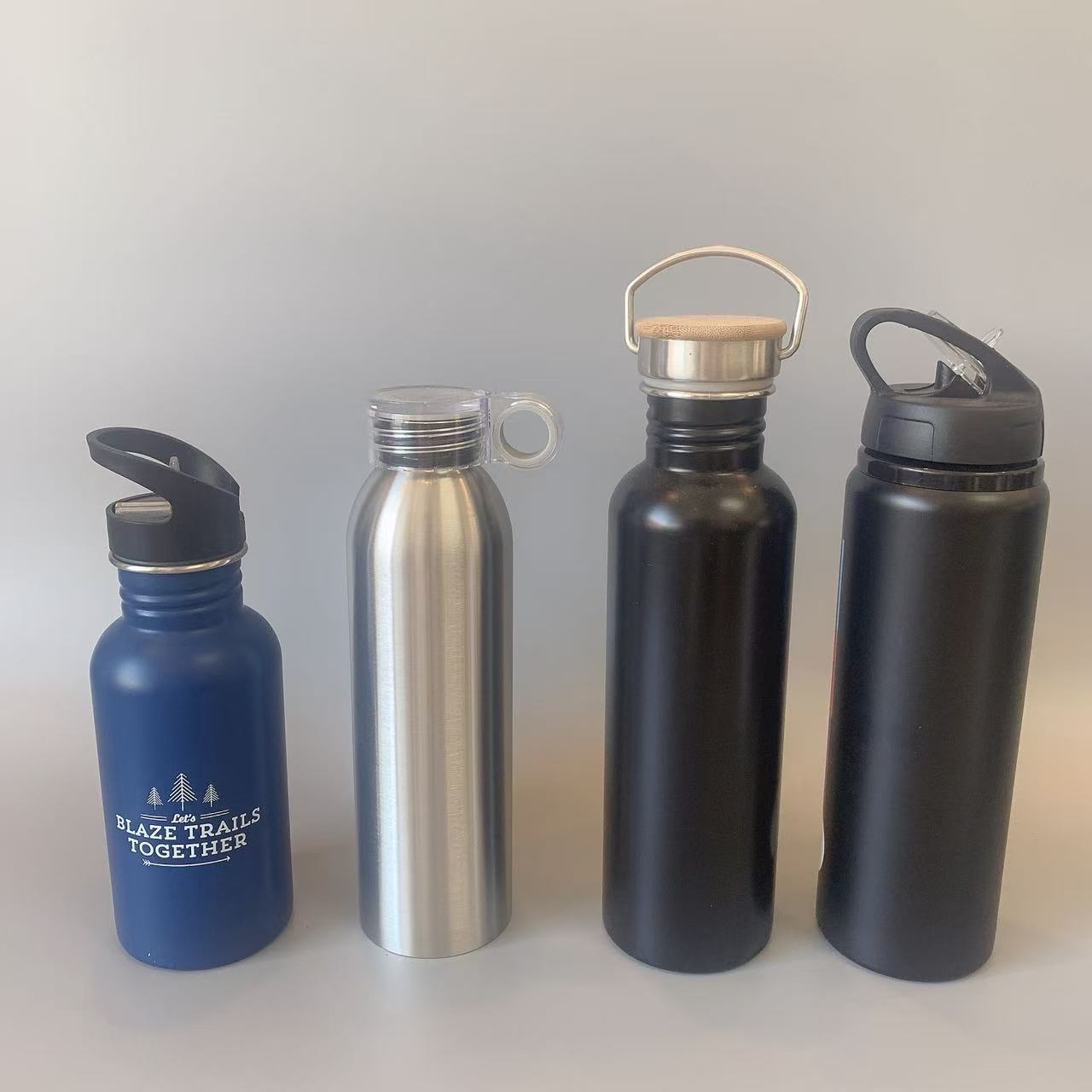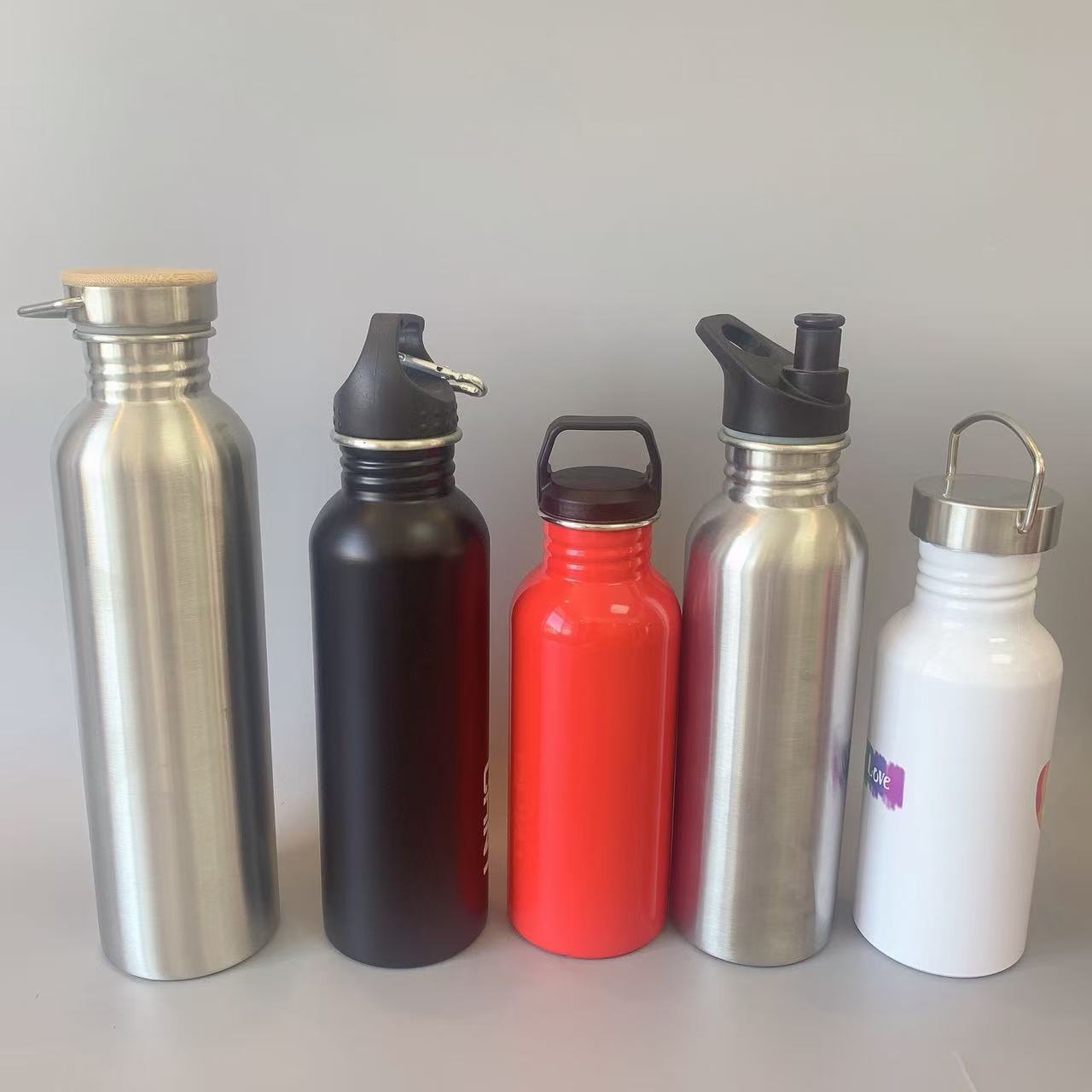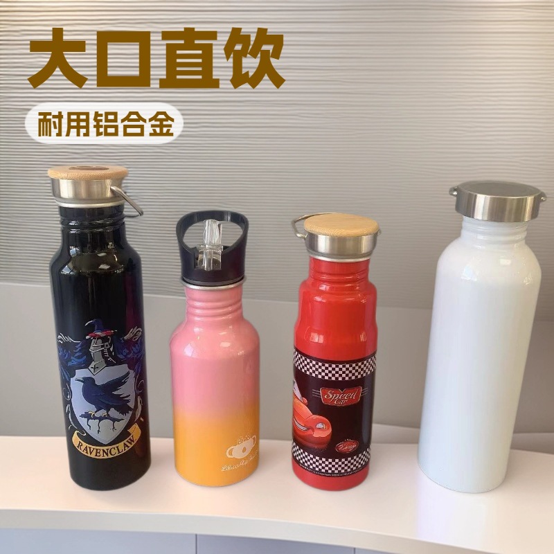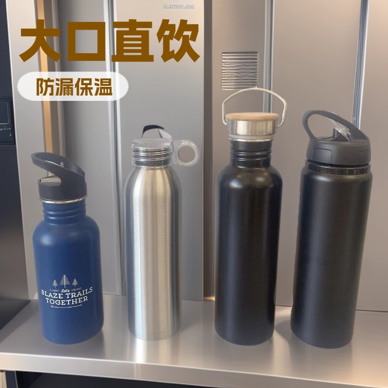 새로운 휴대용 핫 판매 국경 간 미국식 대형 입 스포츠 주전자 단일 레이어 304 스테인레스 스틸 야외 워터 컵 사이클링 주전자