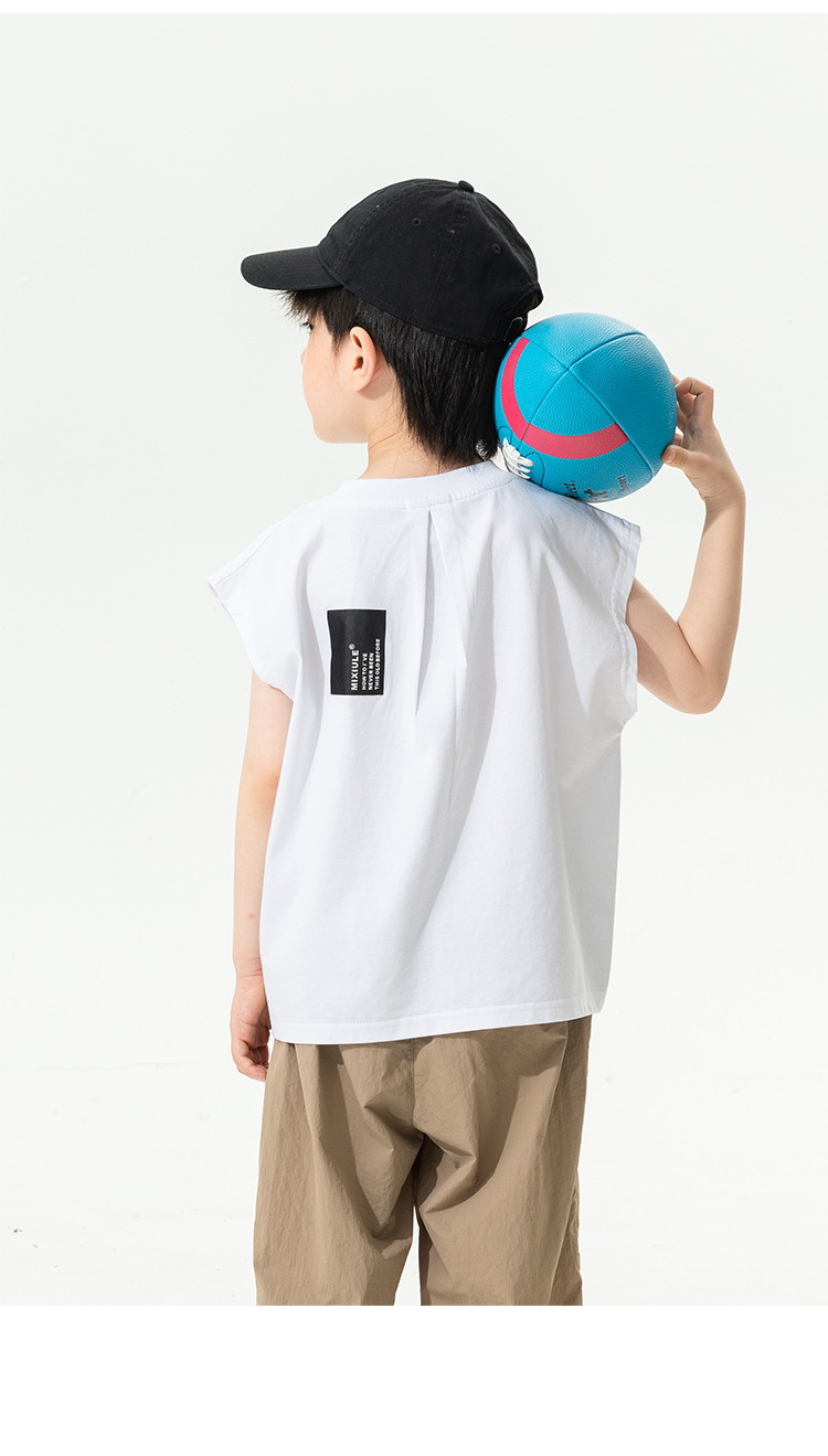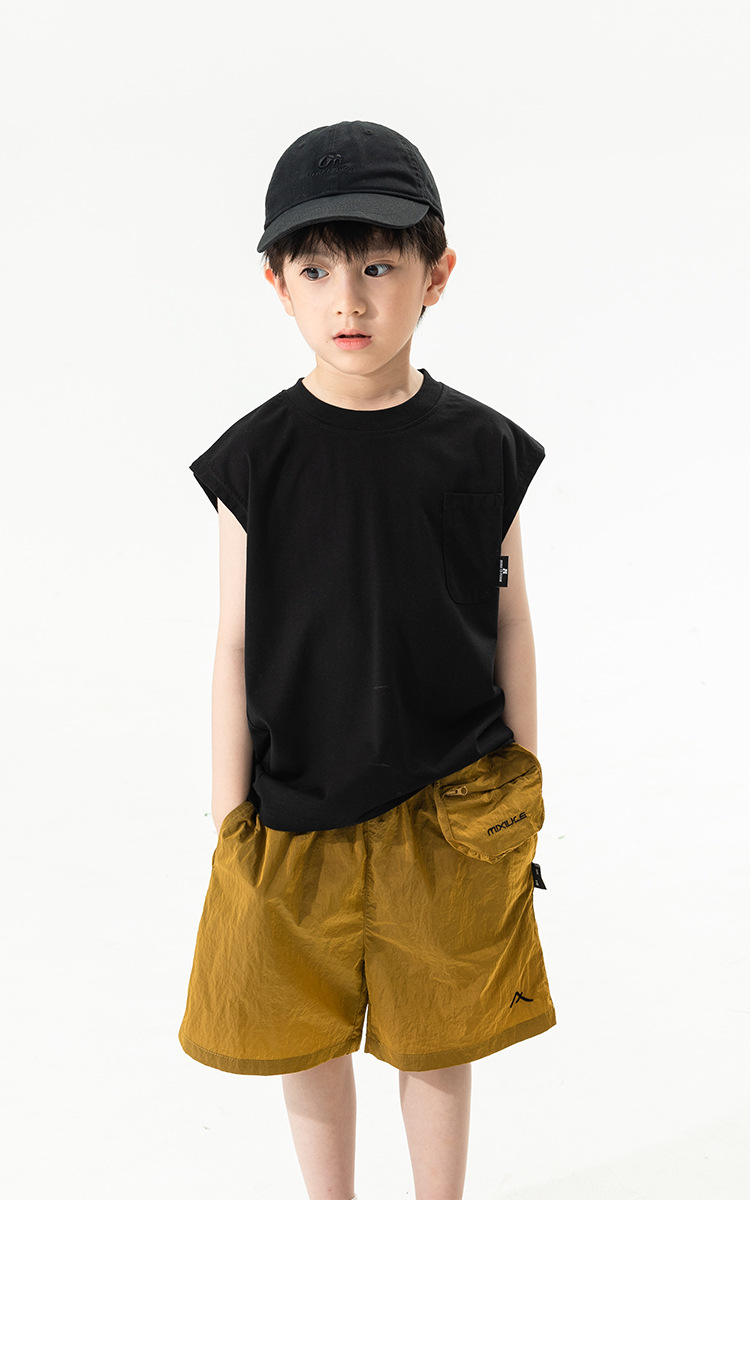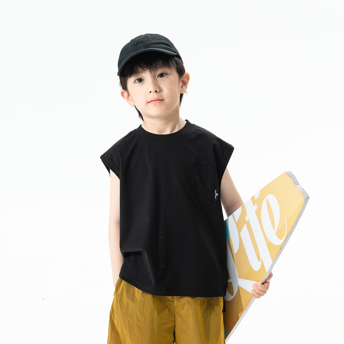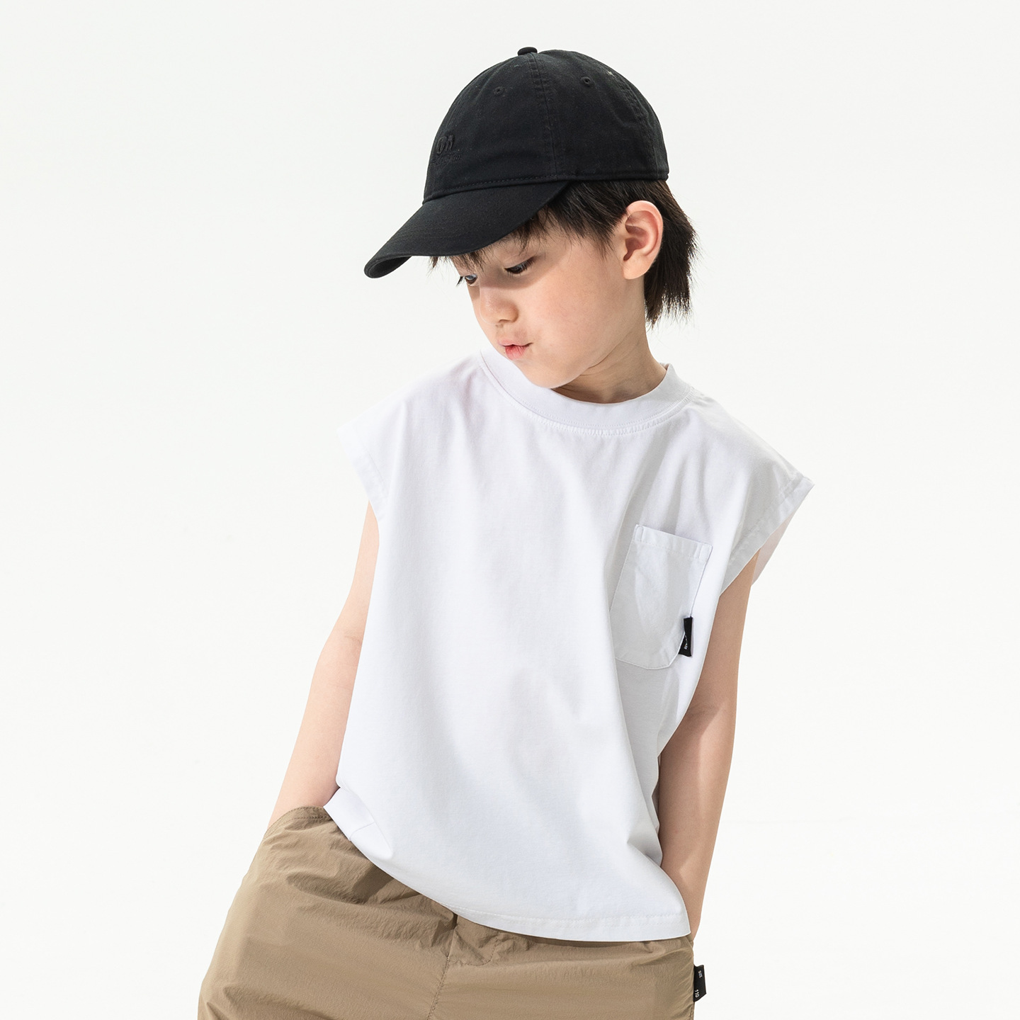 소년 2025 여름 조끼 캐주얼 포켓 디자인 아동용 민소매 티셔츠 얇은 통기성 땀 흡수 탑 겉옷