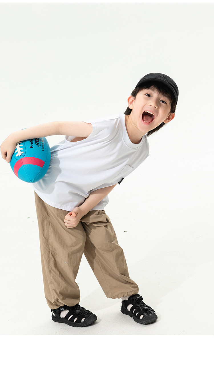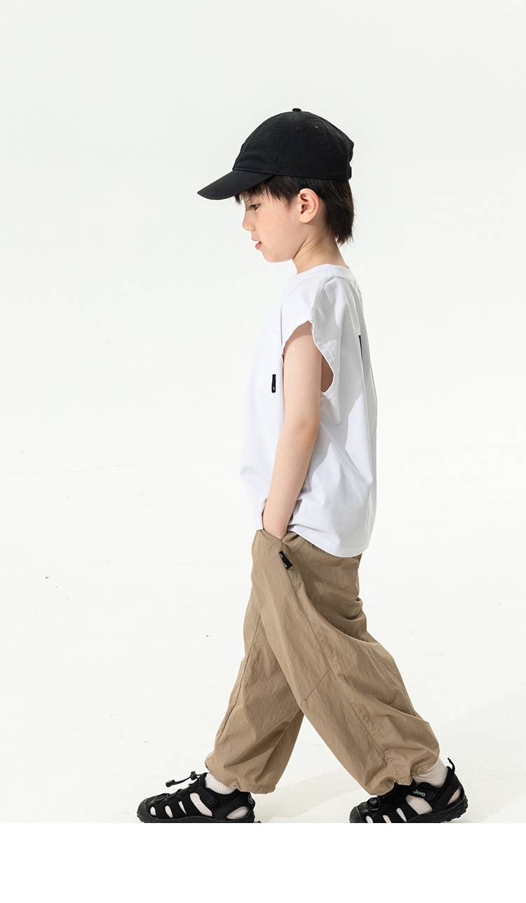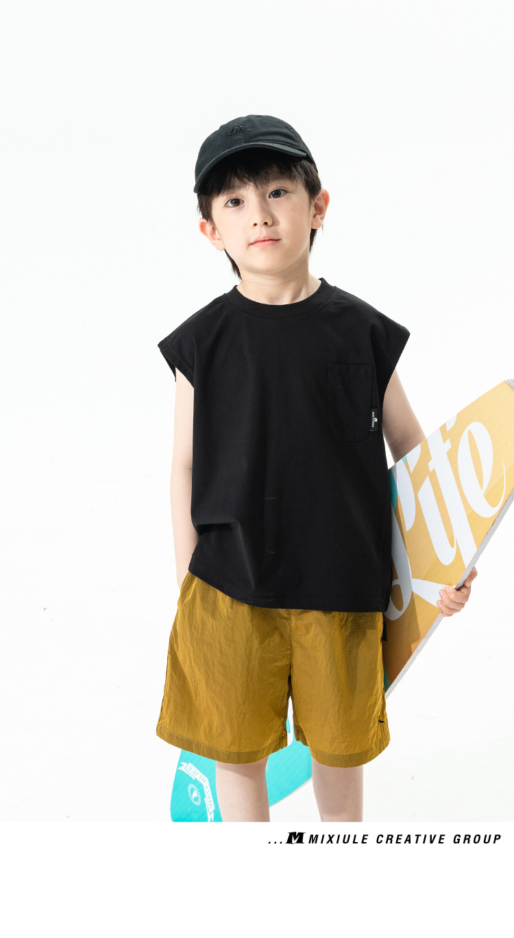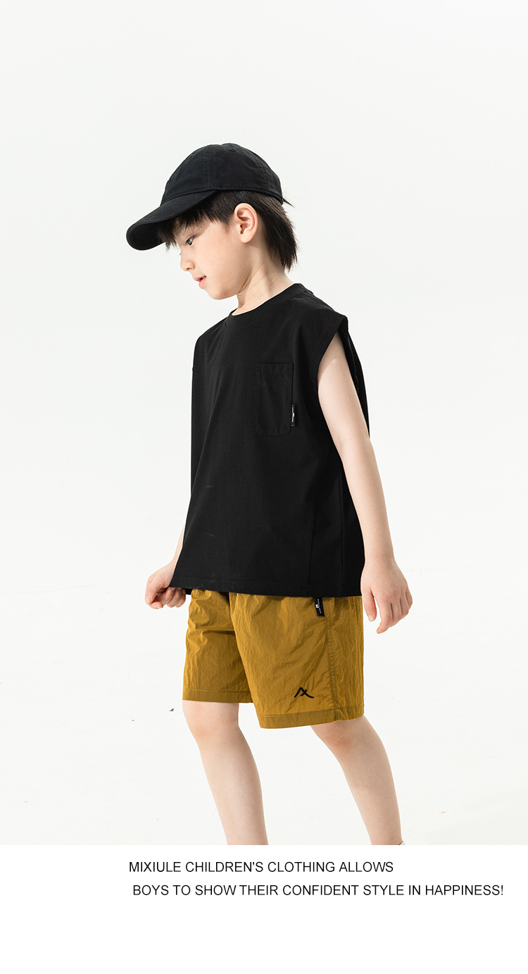 소년 2025 여름 조끼 캐주얼 포켓 디자인 아동용 민소매 티셔츠 얇은 통기성 땀 흡수 탑 겉옷