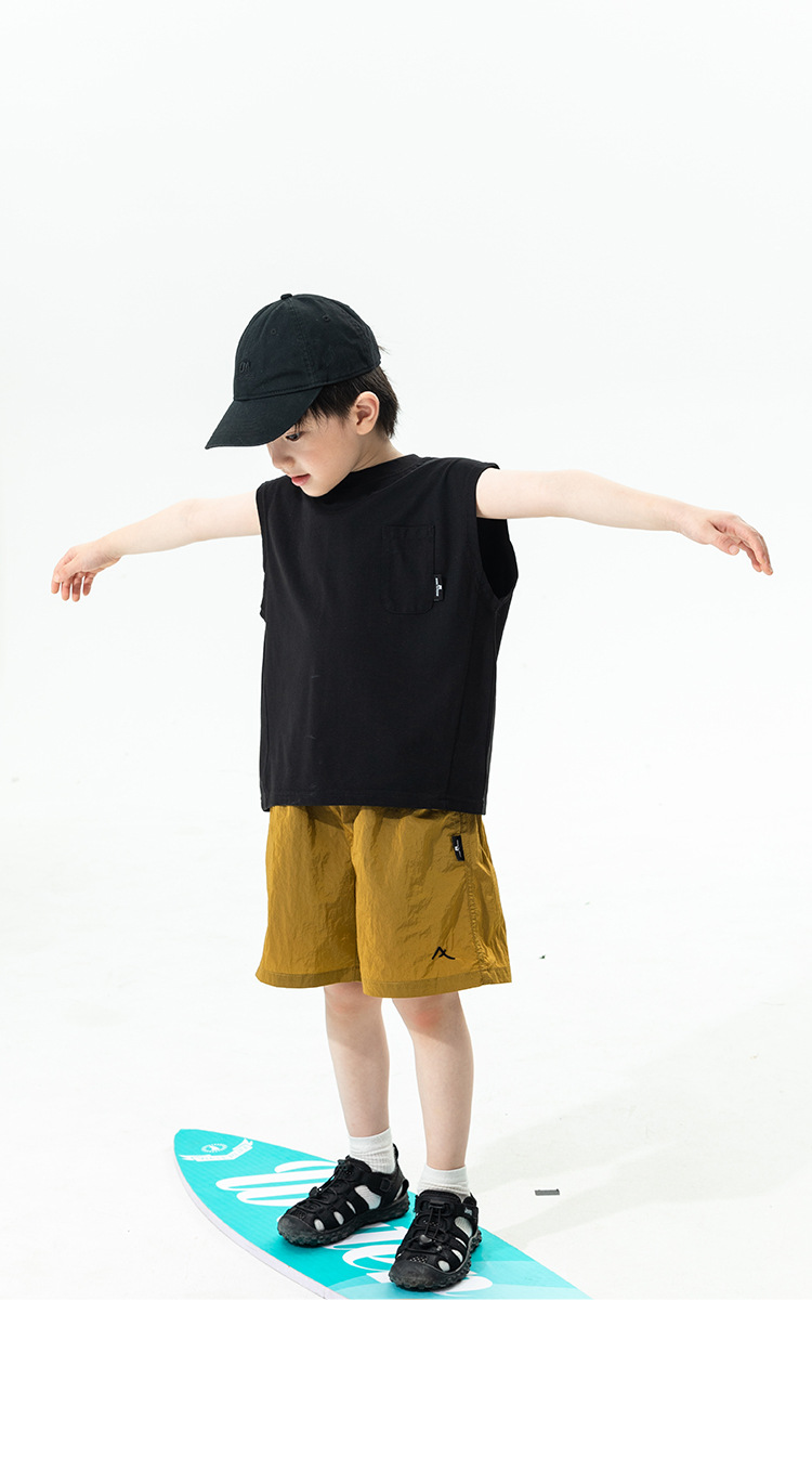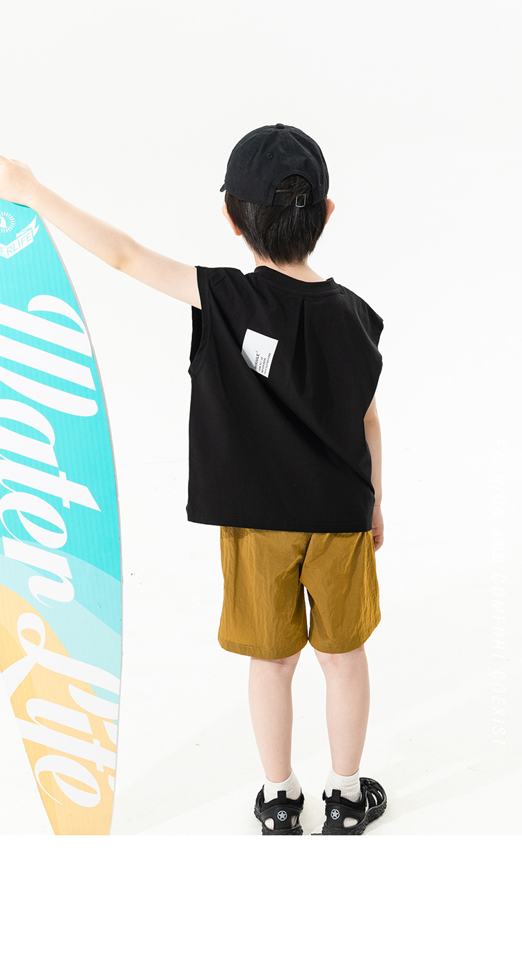 소년 2025 여름 조끼 캐주얼 포켓 디자인 아동용 민소매 티셔츠 얇은 통기성 땀 흡수 탑 겉옷스토어 가기