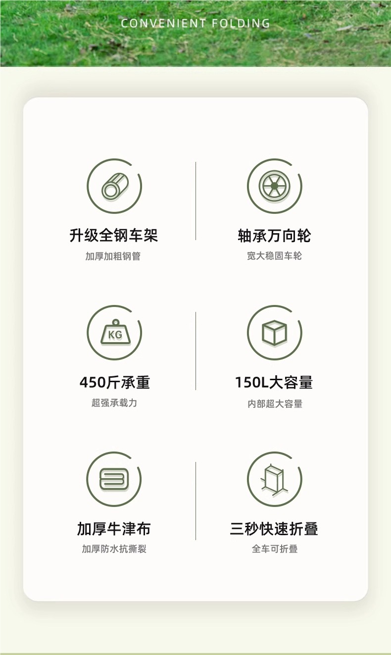 • [업그레이드된 카키색 굵은 올스틸 프레임, 저소음 범용 휠, 자동 리바운드 타이로드]