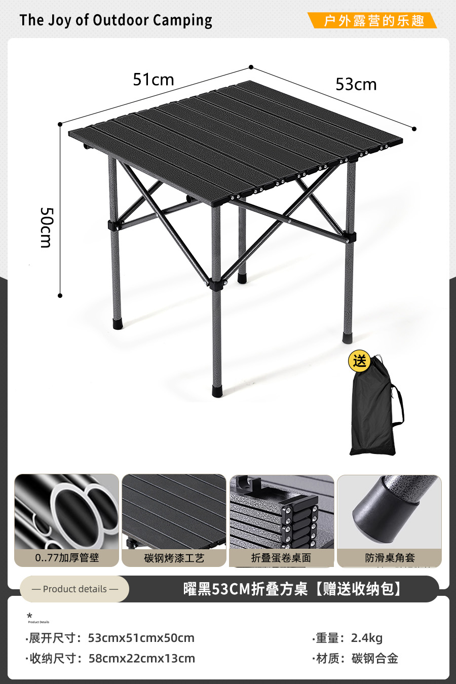 • [두꺼워진 50cm 사각 테이블]-블랙(수납가방 포함)