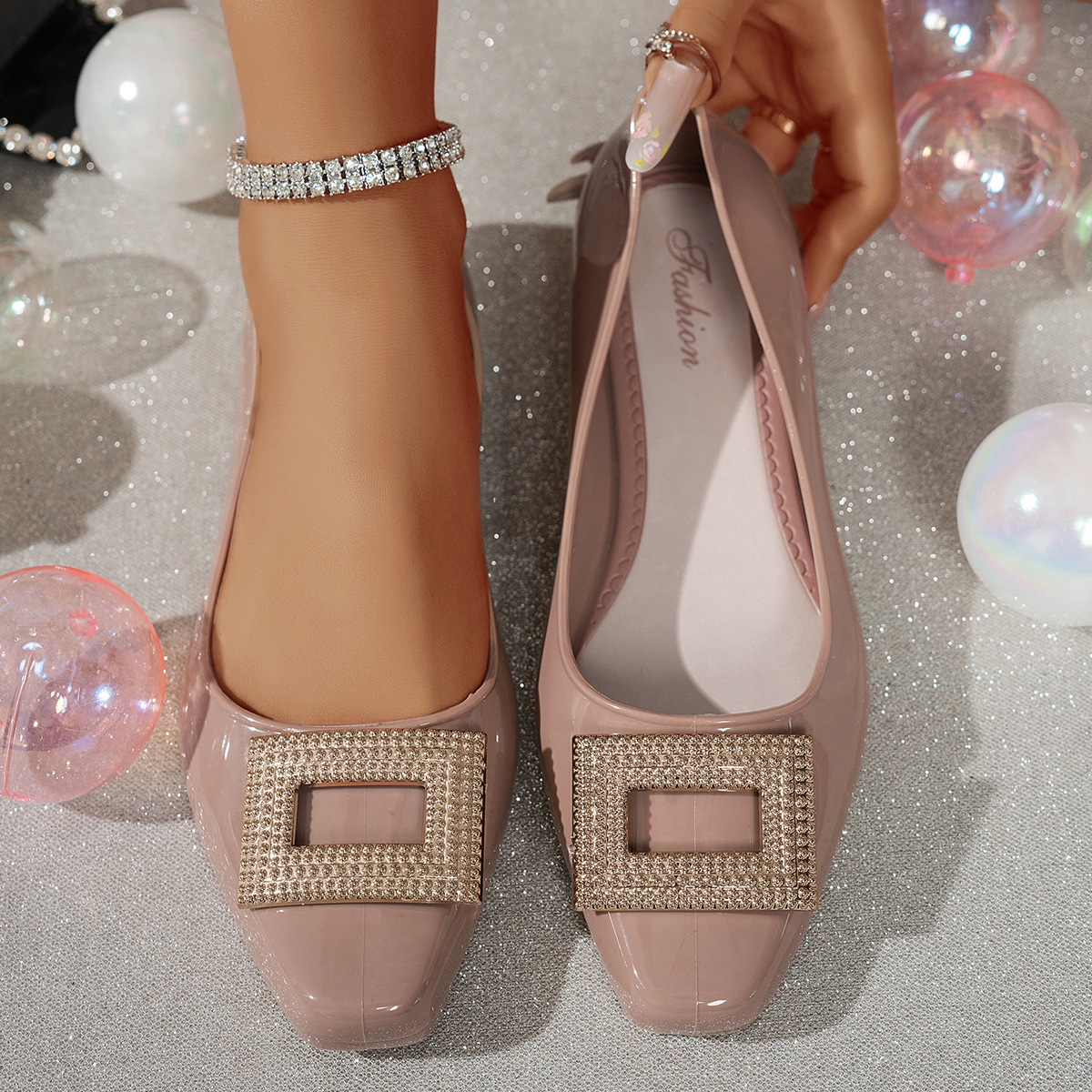 여성용 싱글 슈즈 프렌치 스퀘어 토 하이힐 두꺼운 굽 신작 봄, 가을 여성 신발 스퀘어 메탈 버클 편안한 로우 힐 펌프스