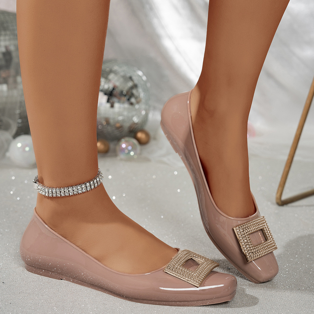 여성용 싱글 슈즈 프렌치 스퀘어 토 하이힐 두꺼운 굽 신작 봄, 가을 여성 신발 스퀘어 메탈 버클 편안한 로우 힐 펌프스스토어 가기