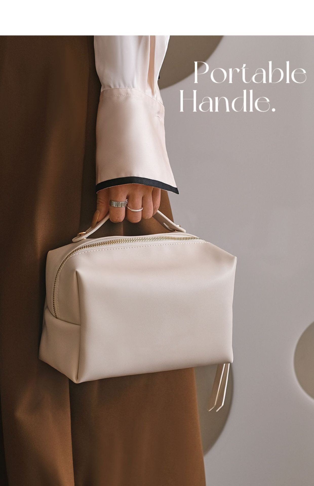 제조업체의 새로운 유백색 PU 휴대용 대용량 화장품 보관 가방 고급 휴대용 방수 화장품 가방