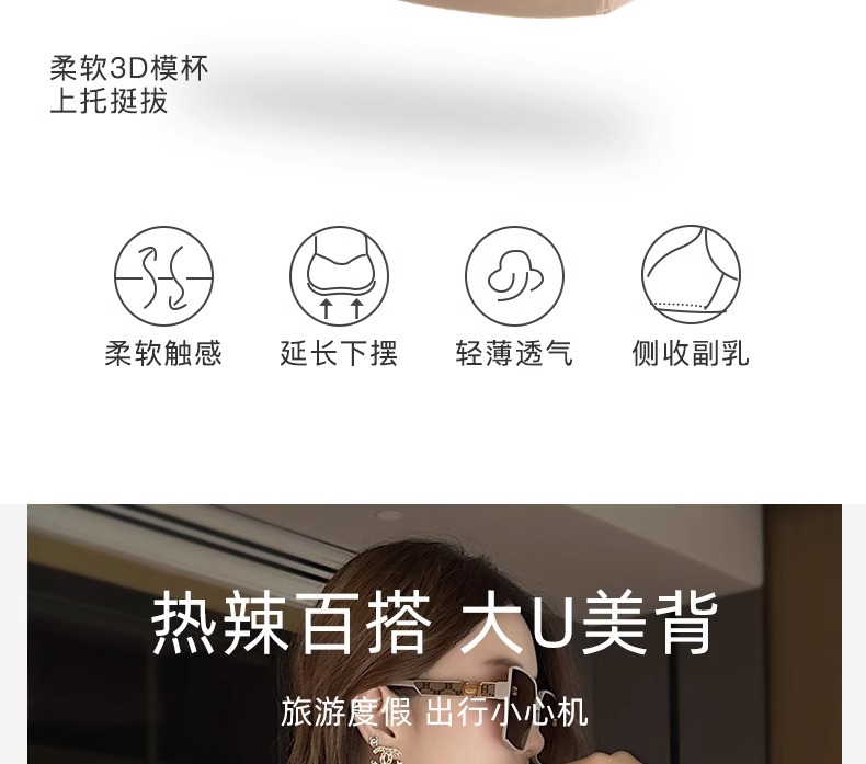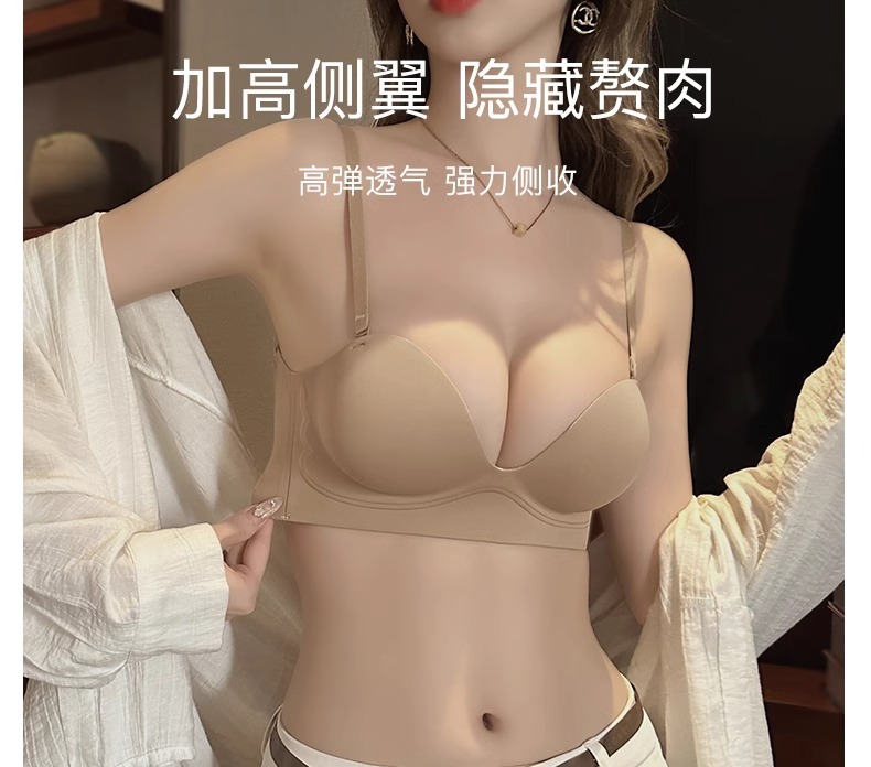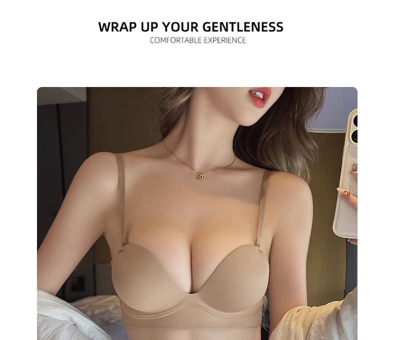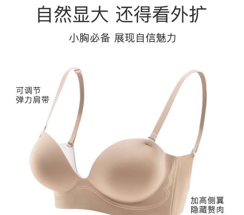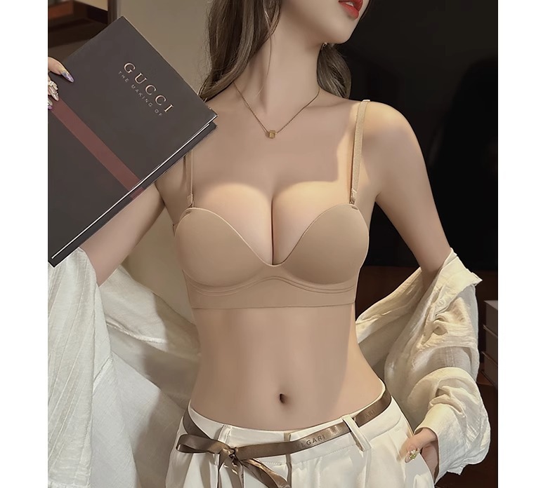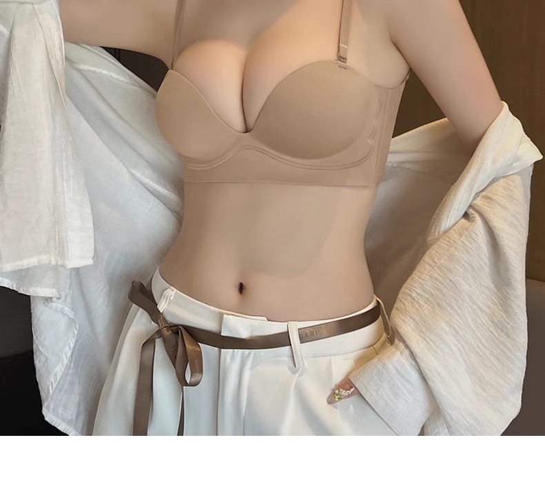 작은 가슴을 가진 여성을 위한 코믹 브라, 푸쉬업, 두꺼워진, 확장형 U자형 아름다운 등, 섹시한 하프컵 브라, 여름스토어 가기