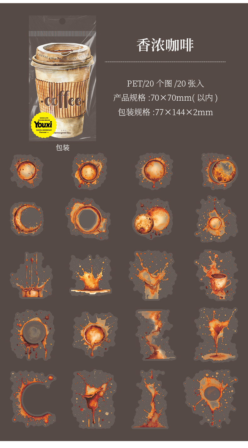 좋은 날 스티커 커피 색상 복고풍 방수 잉크 재료 핸드북 워터 컵 diy 장식 콜라주스토어 가기