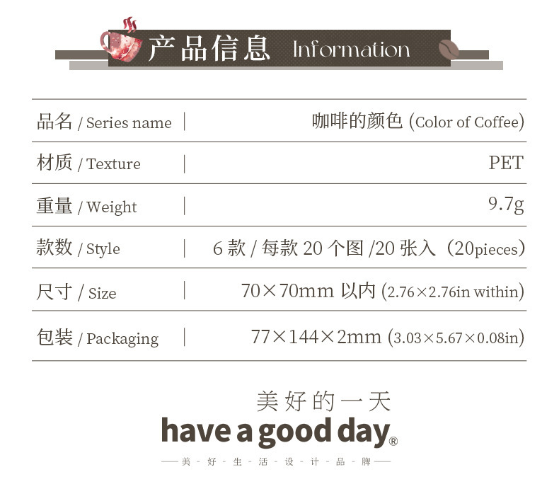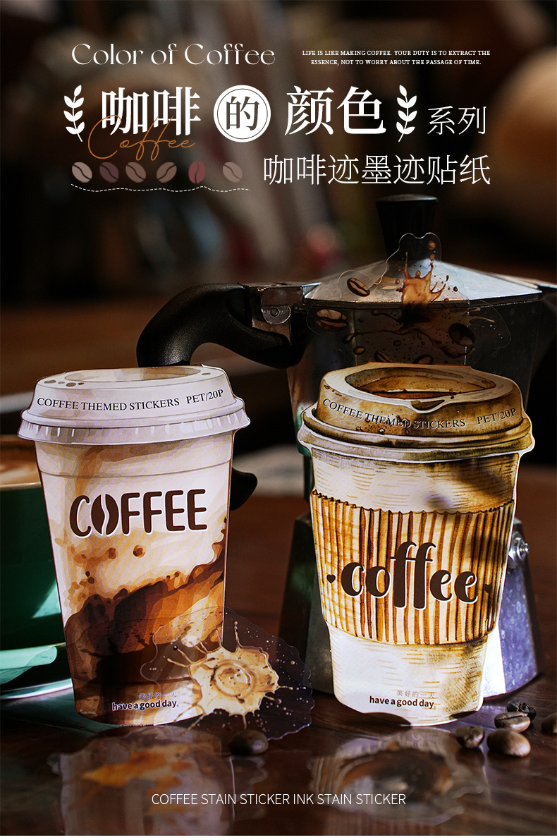 좋은 날 스티커 커피 색상 복고풍 방수 잉크 재료 핸드북 워터 컵 diy 장식 콜라주