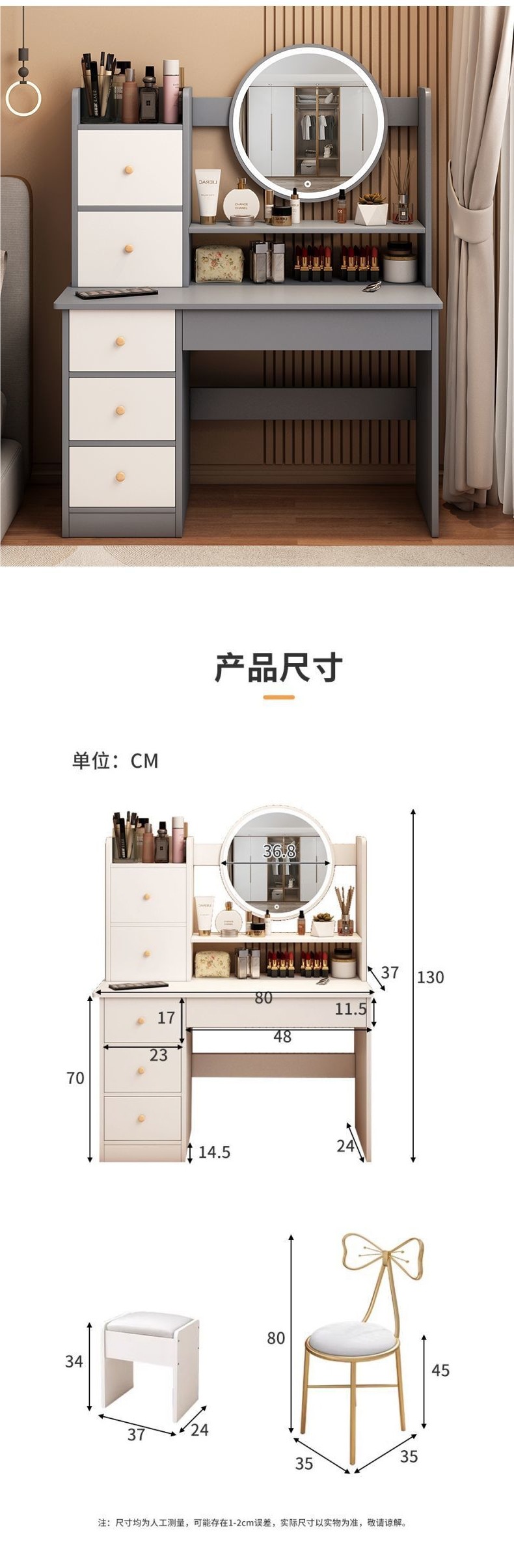 • 80CM 기능성 모델-따뜻한 흰색+램프+스툴