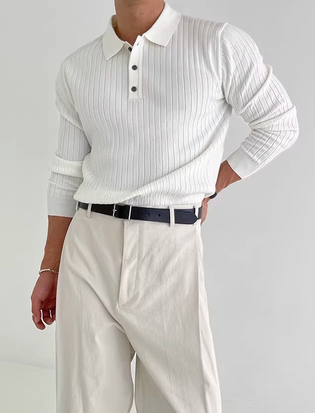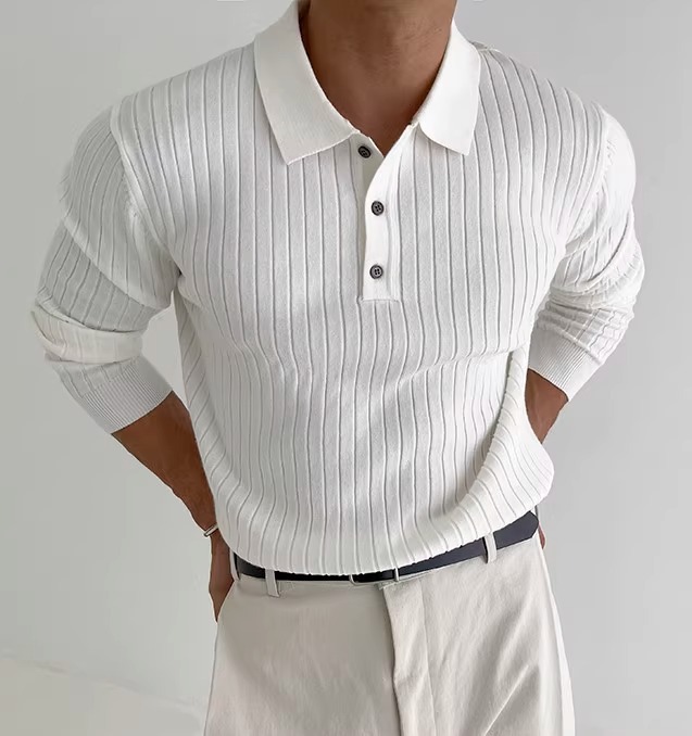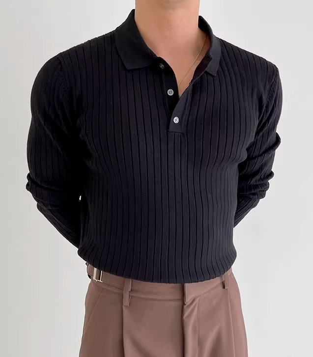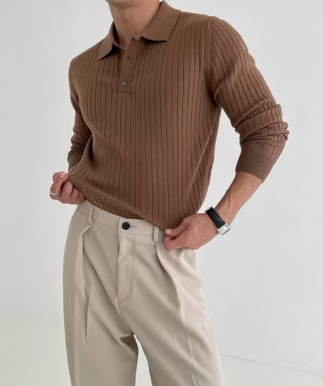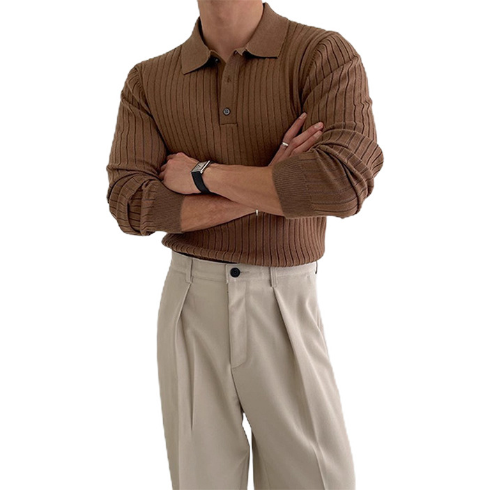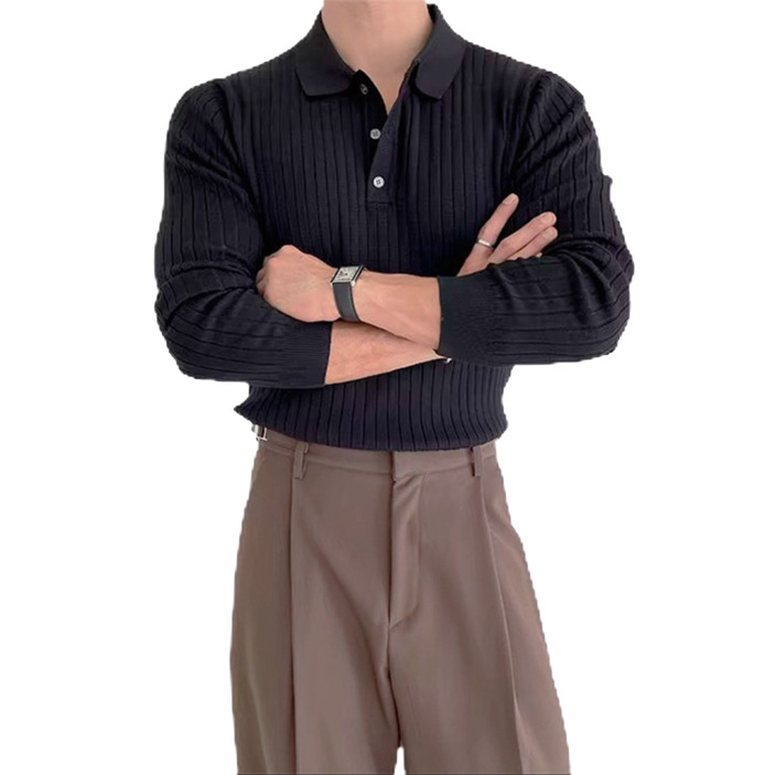국경 간 인기 유럽 사이즈 대형 긴팔 스웨터 남성 봄, 가을 가볍고 성숙한 슬림 비즈니스 티셔츠 공장 도매스토어 가기