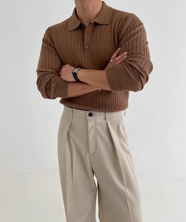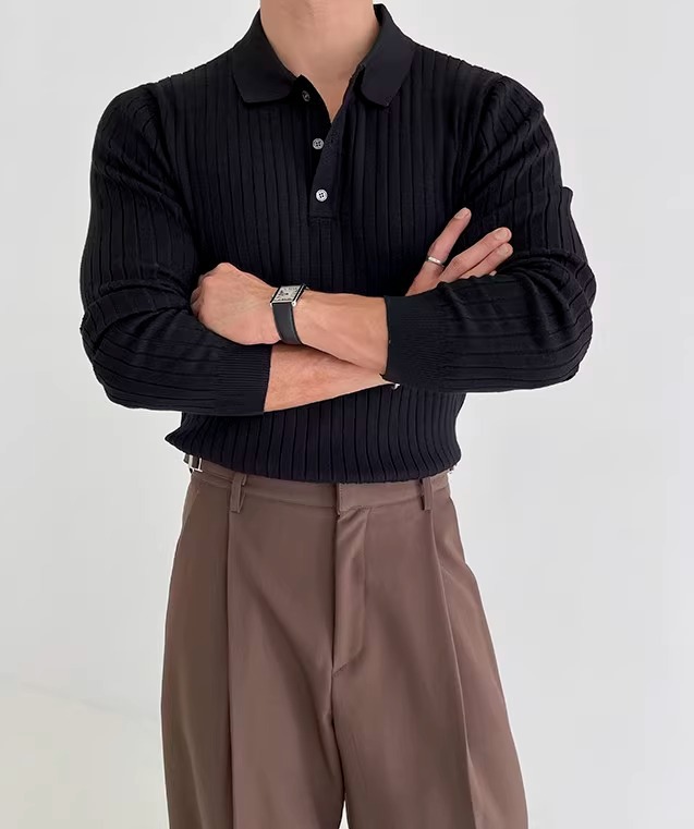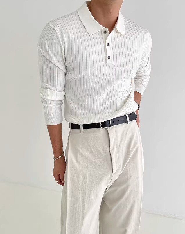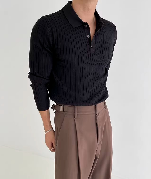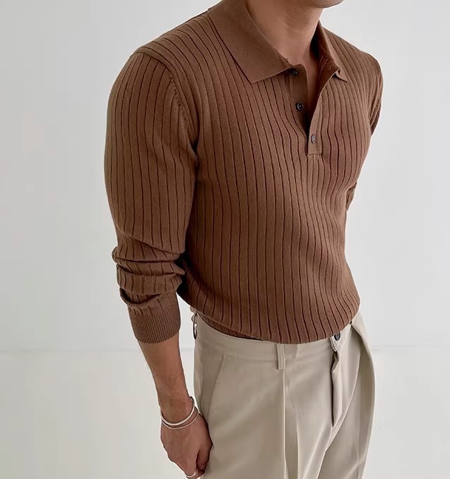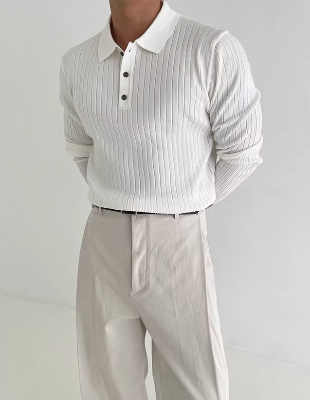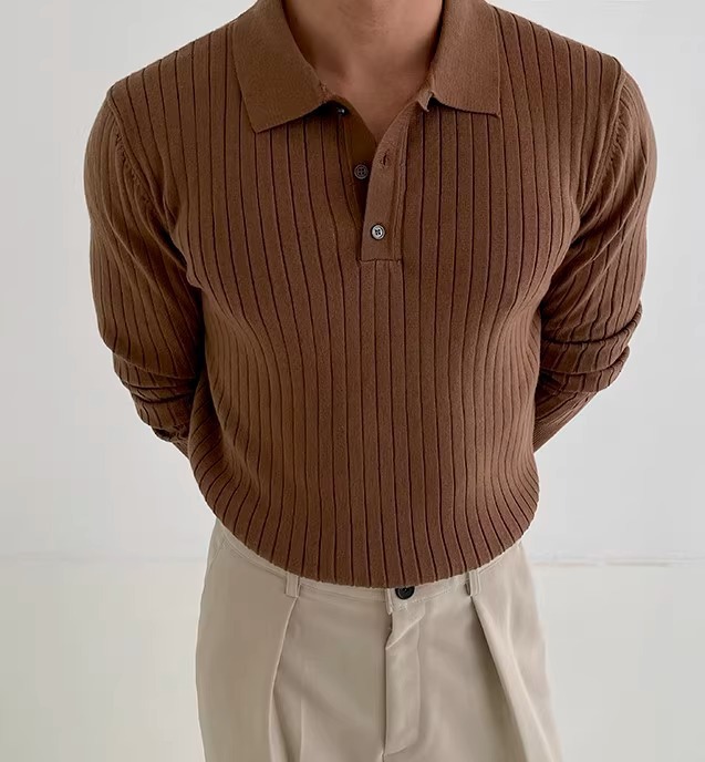 국경 간 인기 유럽 사이즈 대형 긴팔 스웨터 남성 봄, 가을 가볍고 성숙한 슬림 비즈니스 티셔츠 공장 도매스토어 가기