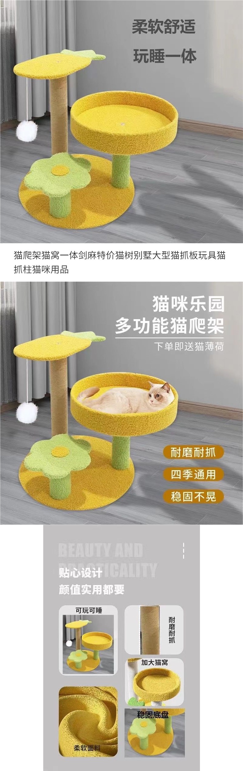 고양이 클라이밍 프레임 및 둥지 일체형 사자수 특가 고양이 트리 빌라 대형 스크래치 보드 장난감 스크래치 컬럼 고양이 용품스토어 가기