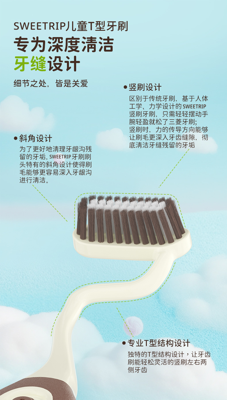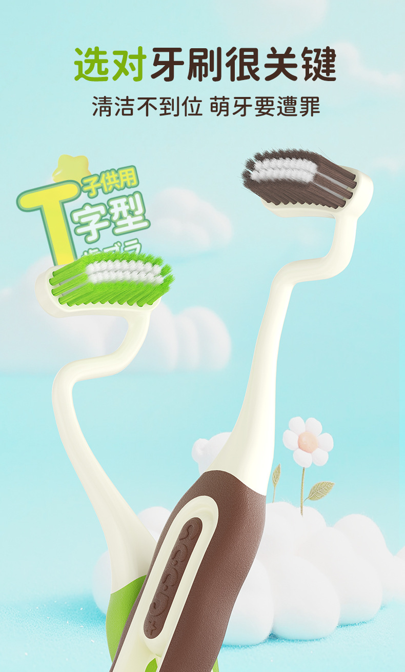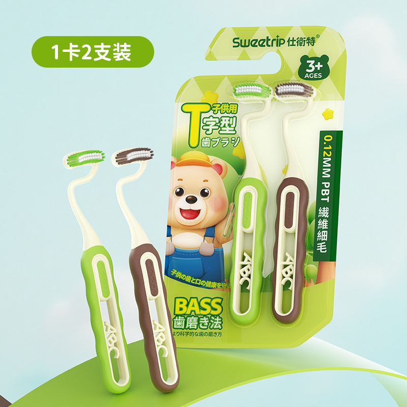 일본 브랜드 T자형 어린이용 칫솔, 세로 브러시, 위아래 세로 브러시, 청소 및 잇몸 보호, 어린이용 칫솔, 부드러운 모 T자형 칫솔스토어 가기