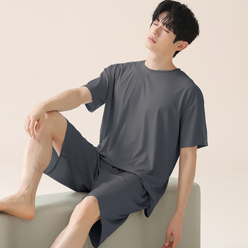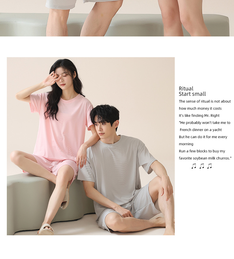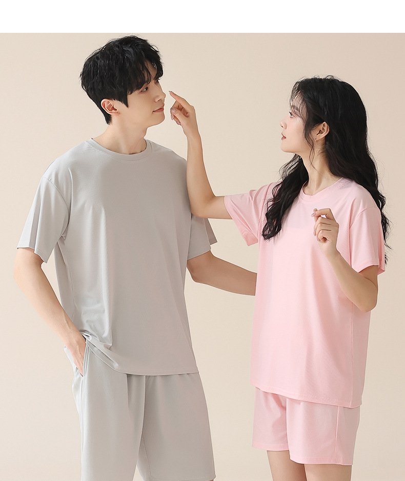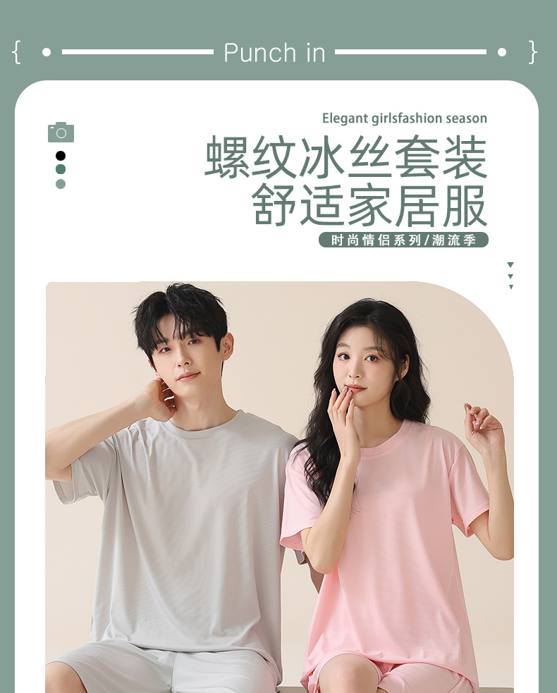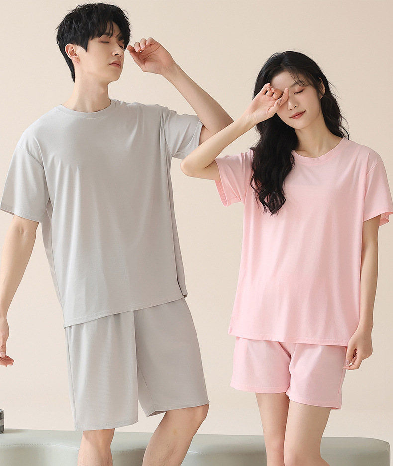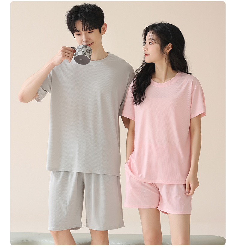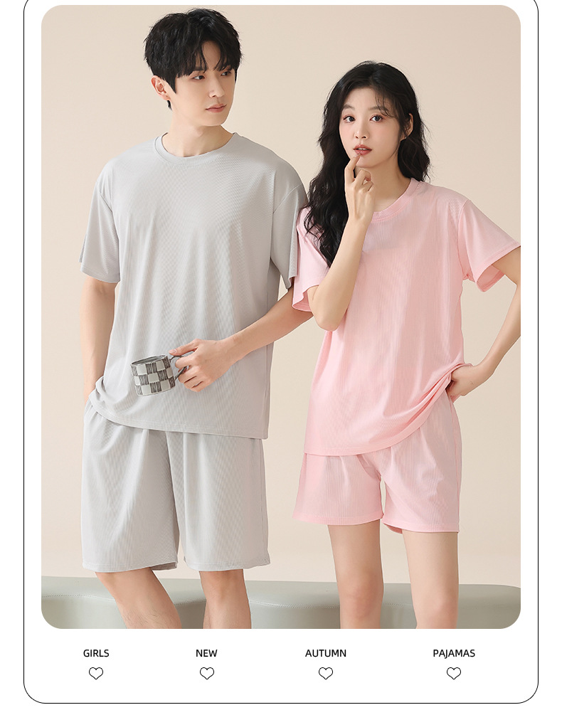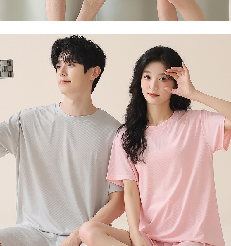 여성을위한 얼음 실크 커플 잠옷 여름 2025 새로운 반팔 반바지 얇은 대형 겉옷 남성 홈웨어 세트스토어 가기