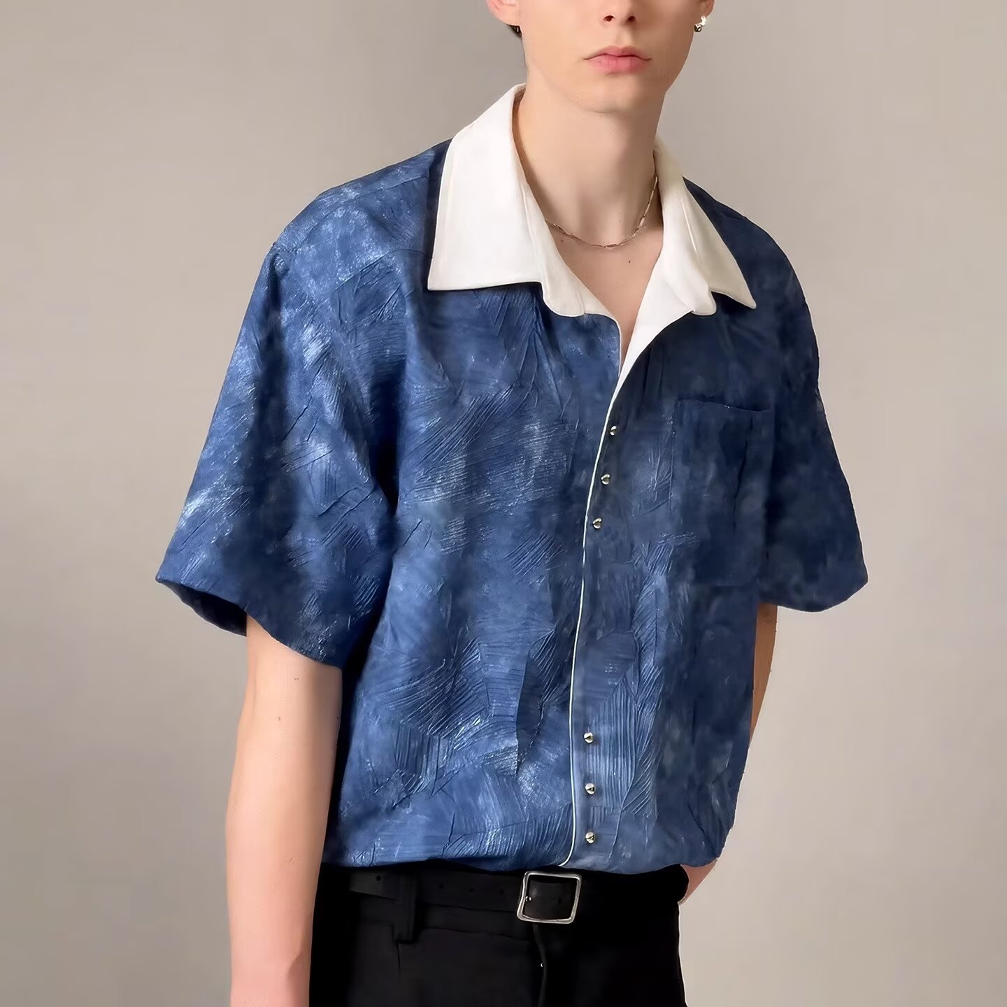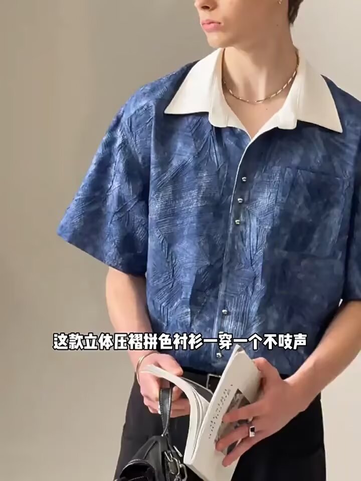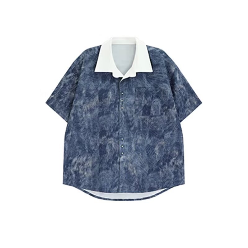 타이 염색 반팔 셔츠 ins 루즈한 셔츠 소매 남성 홍콩 스타일 여름 한국 스타일 트렌디 맞춤형 캐주얼 재킷스토어 가기