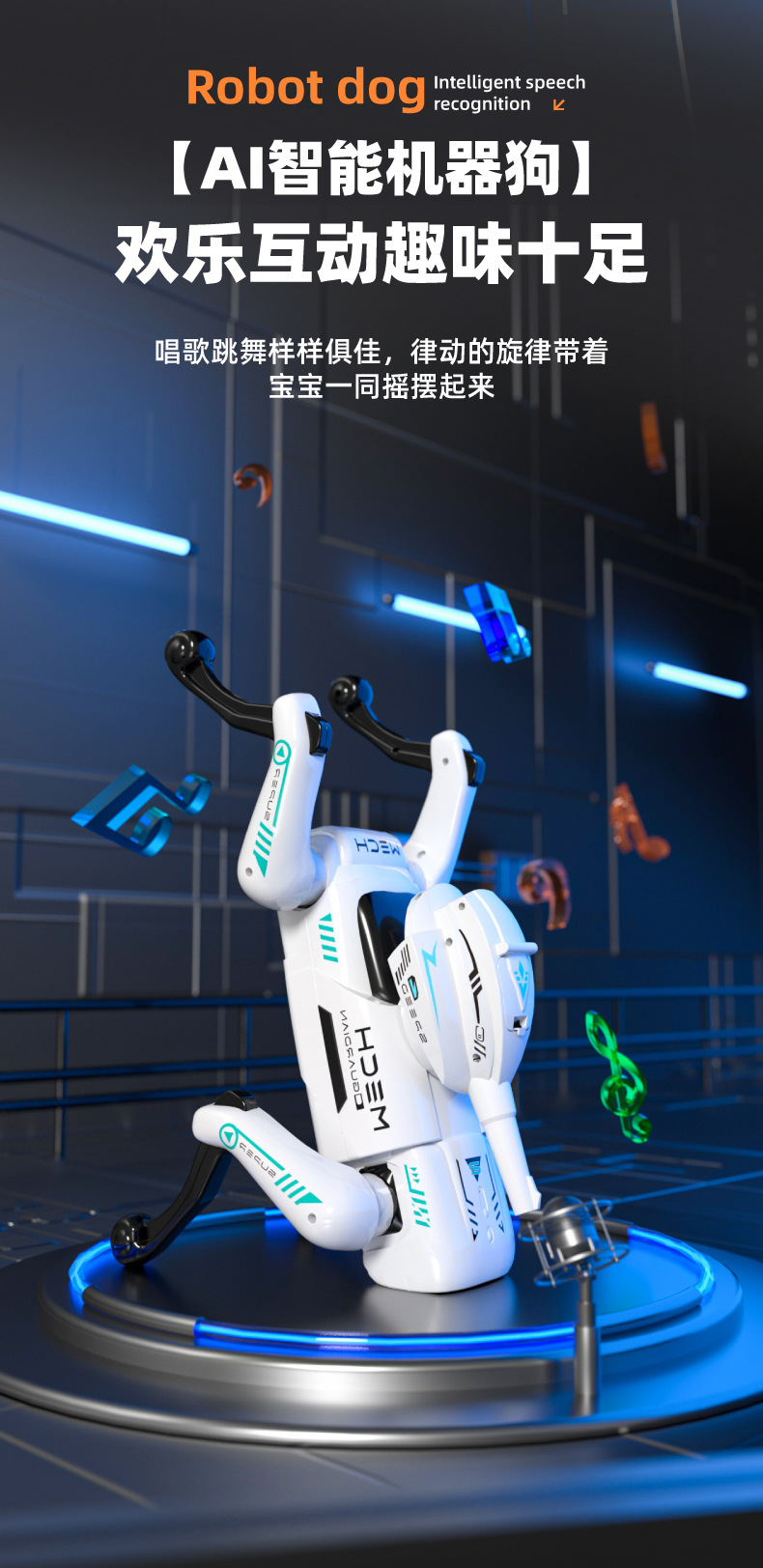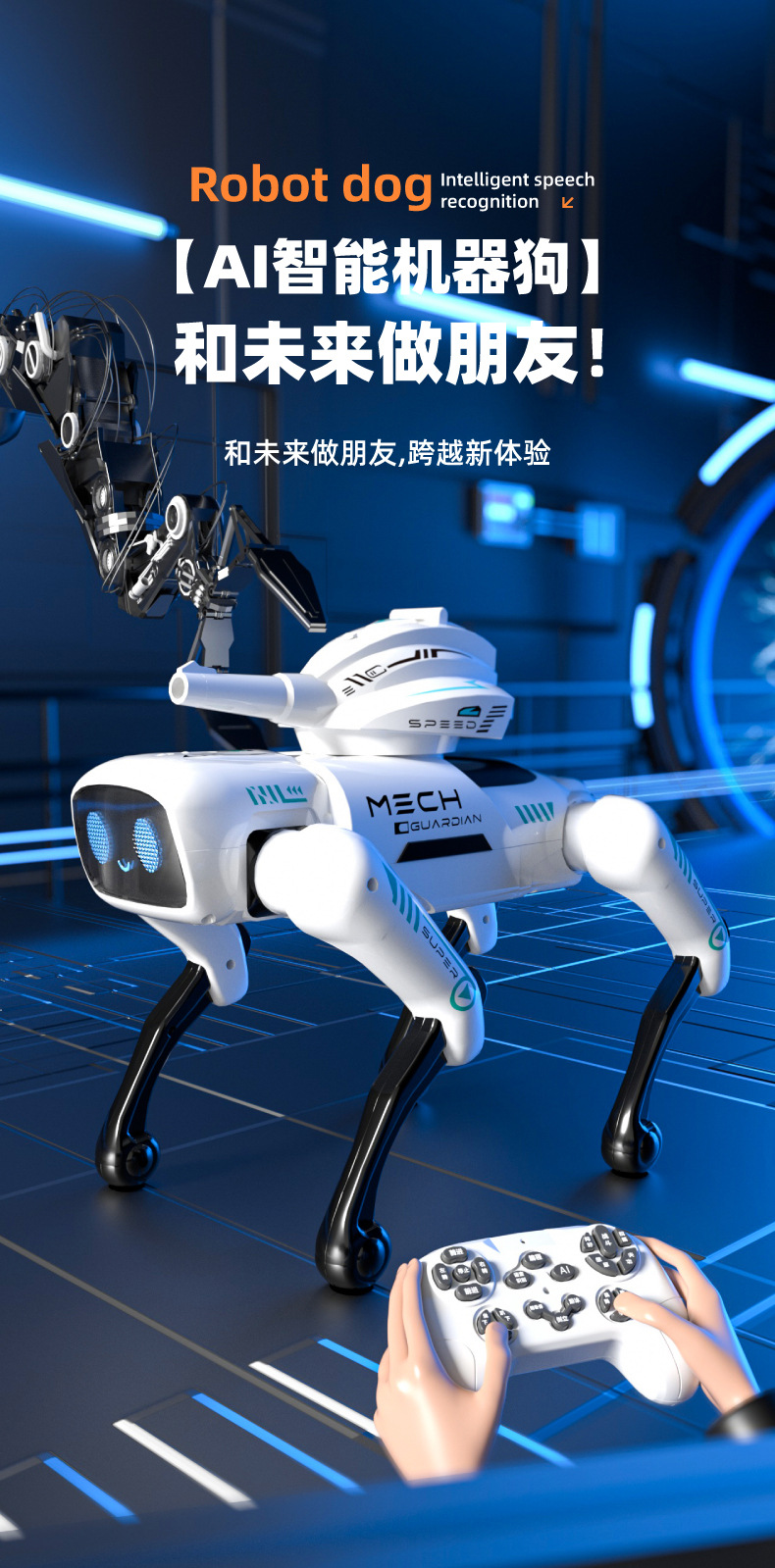 • 【935-181】대형 AI 음성 제어 원격 제어 프로그래밍 기계식 개-흰색