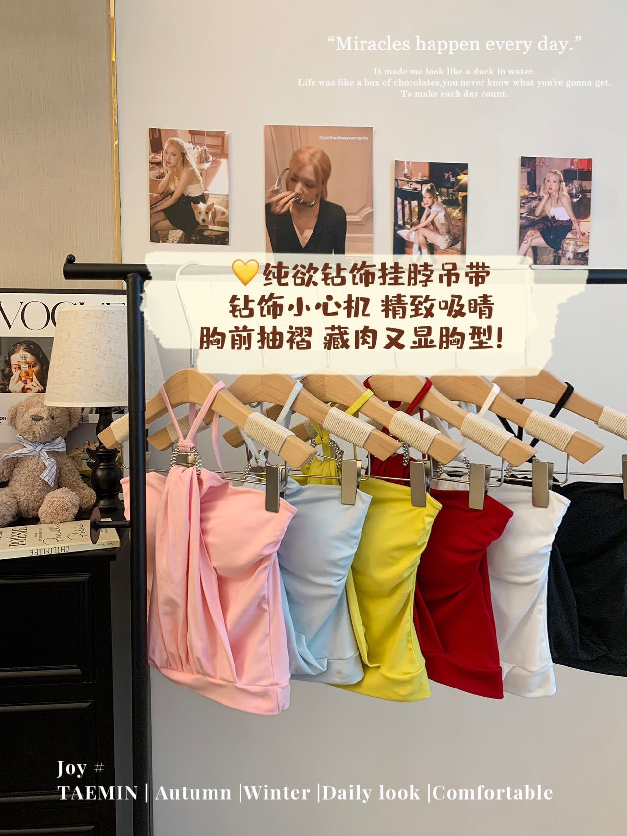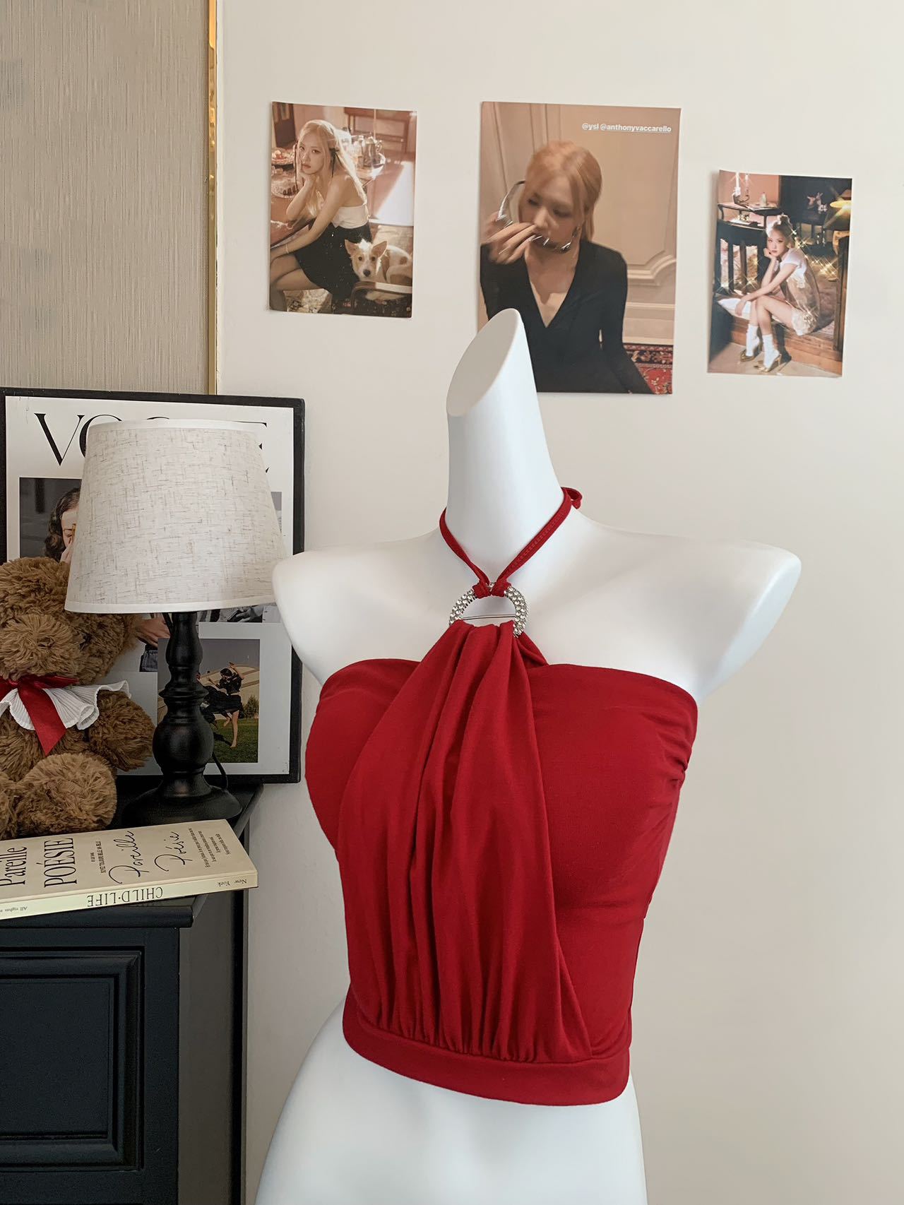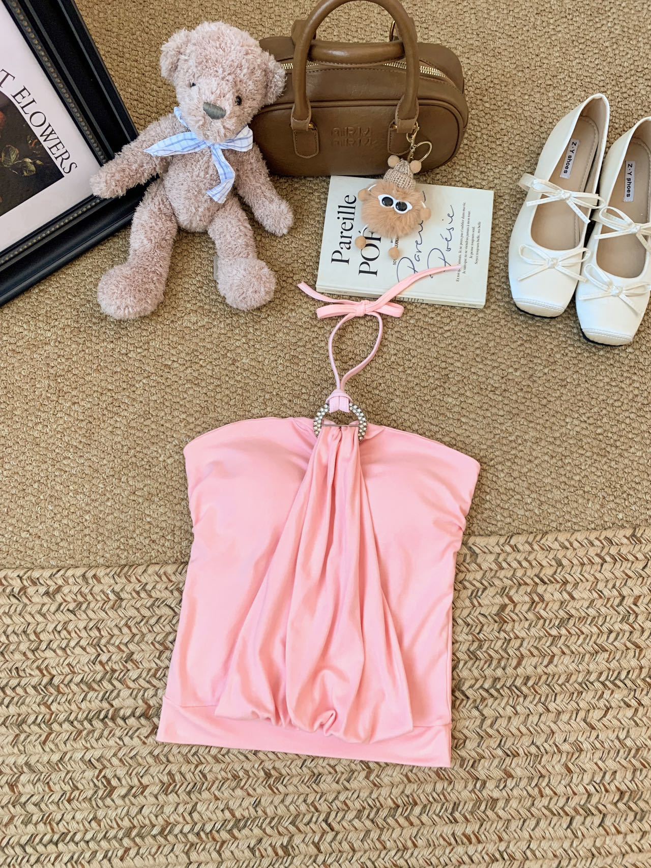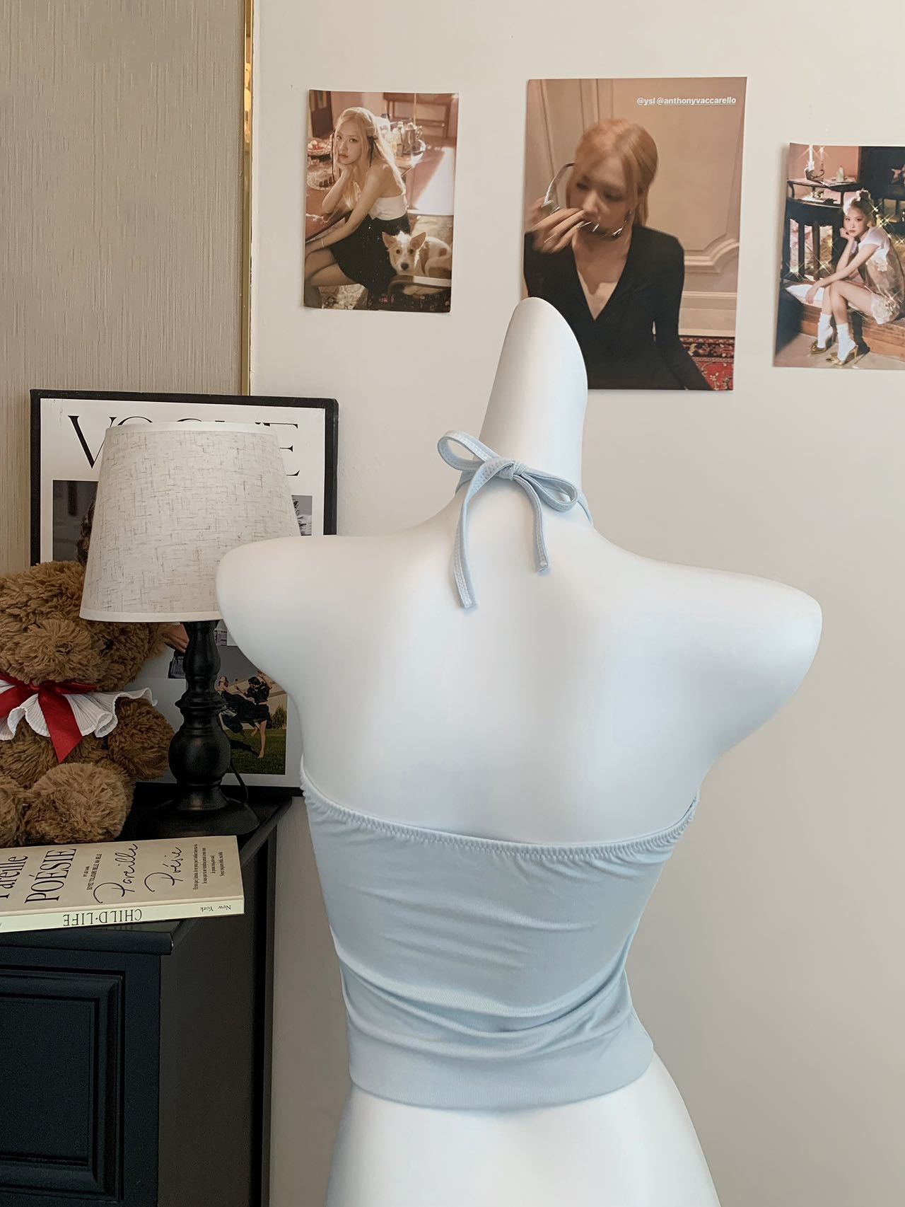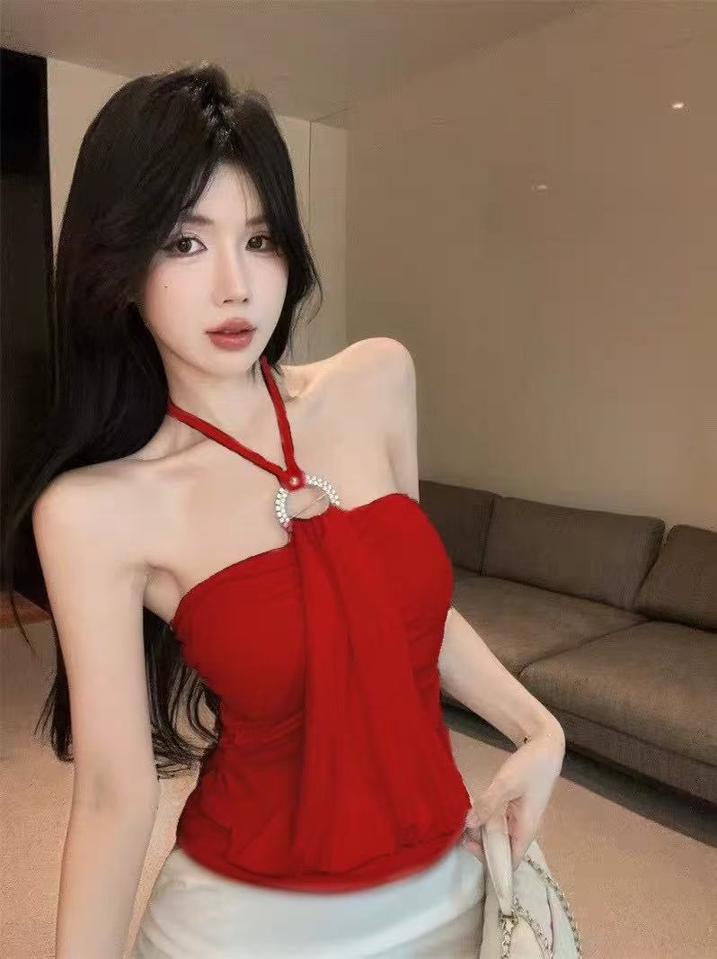 66009 # 여름 신작 레이온 퓨어 러스 섹시한 홀터넥 백리스 튜브 탑 여성용 세련된 슬림 짧은 캐미솔 탑스토어 가기