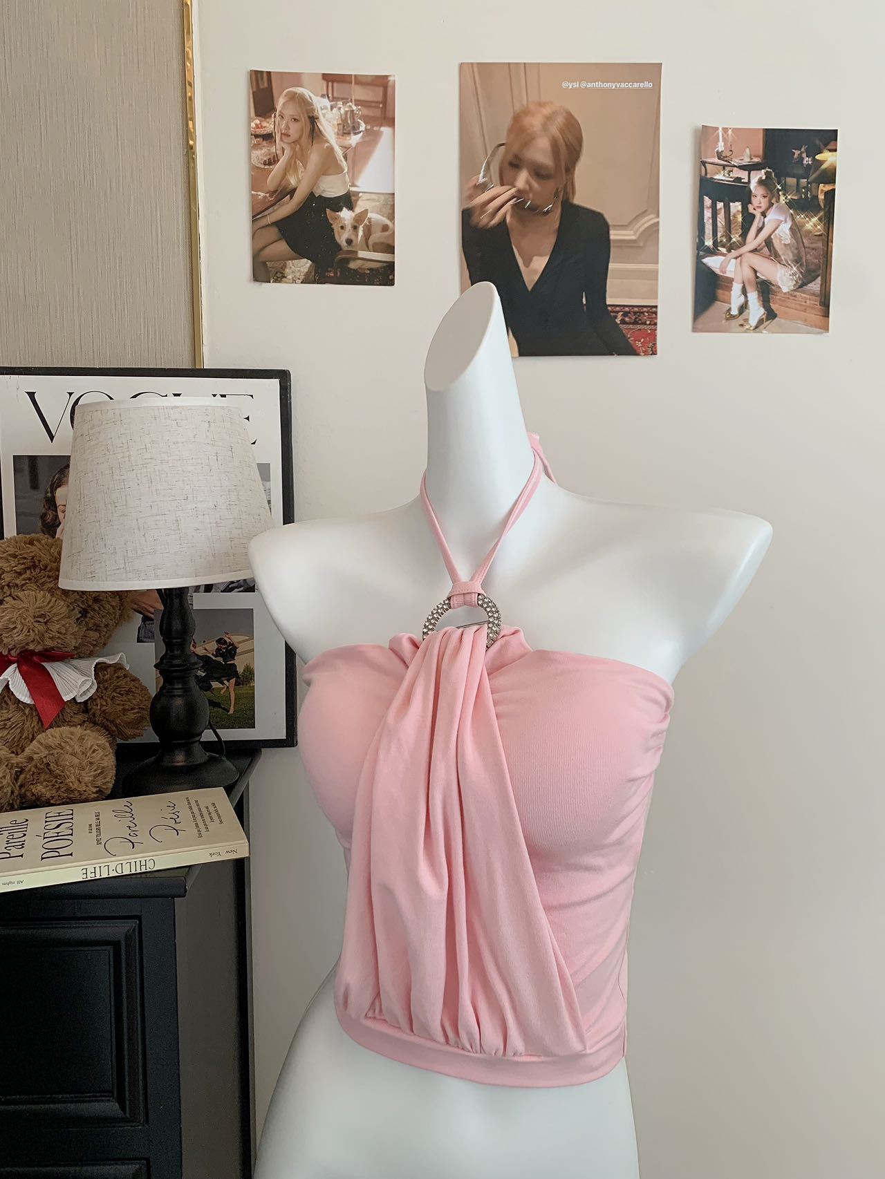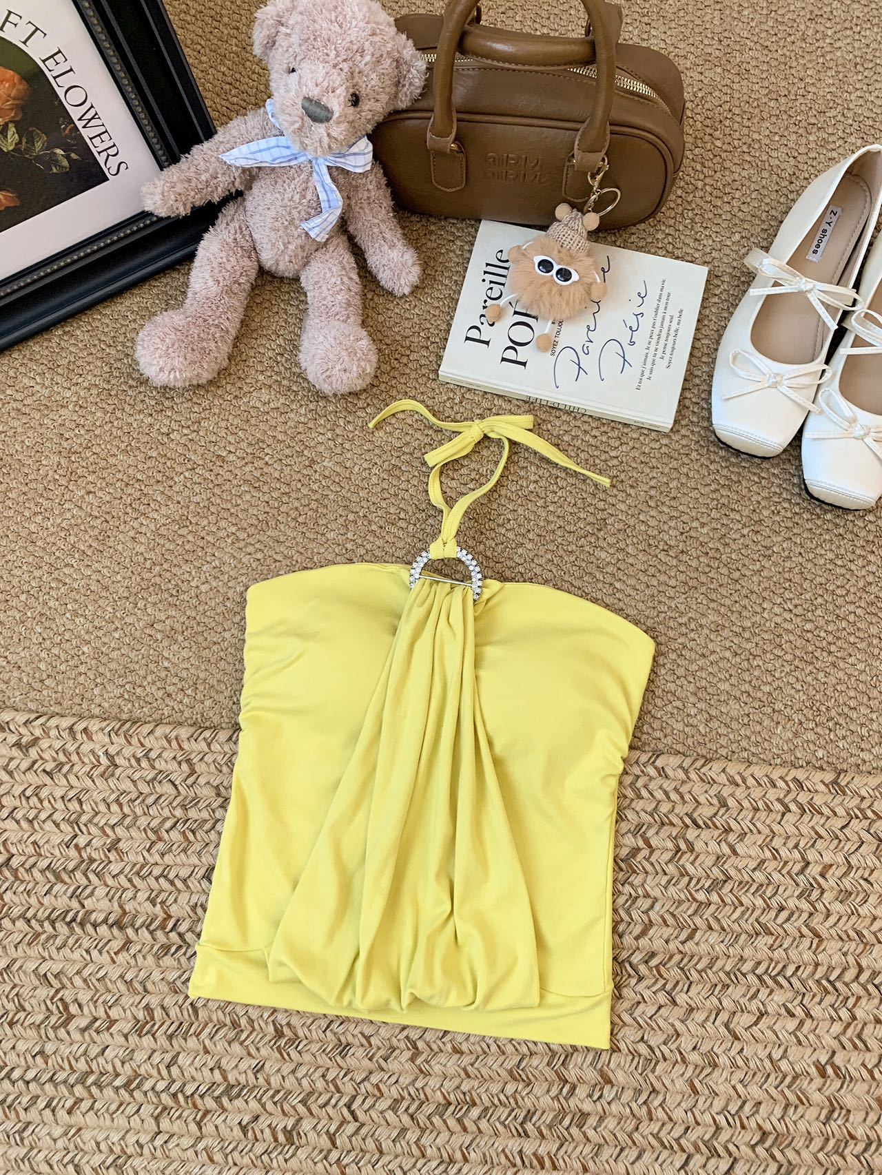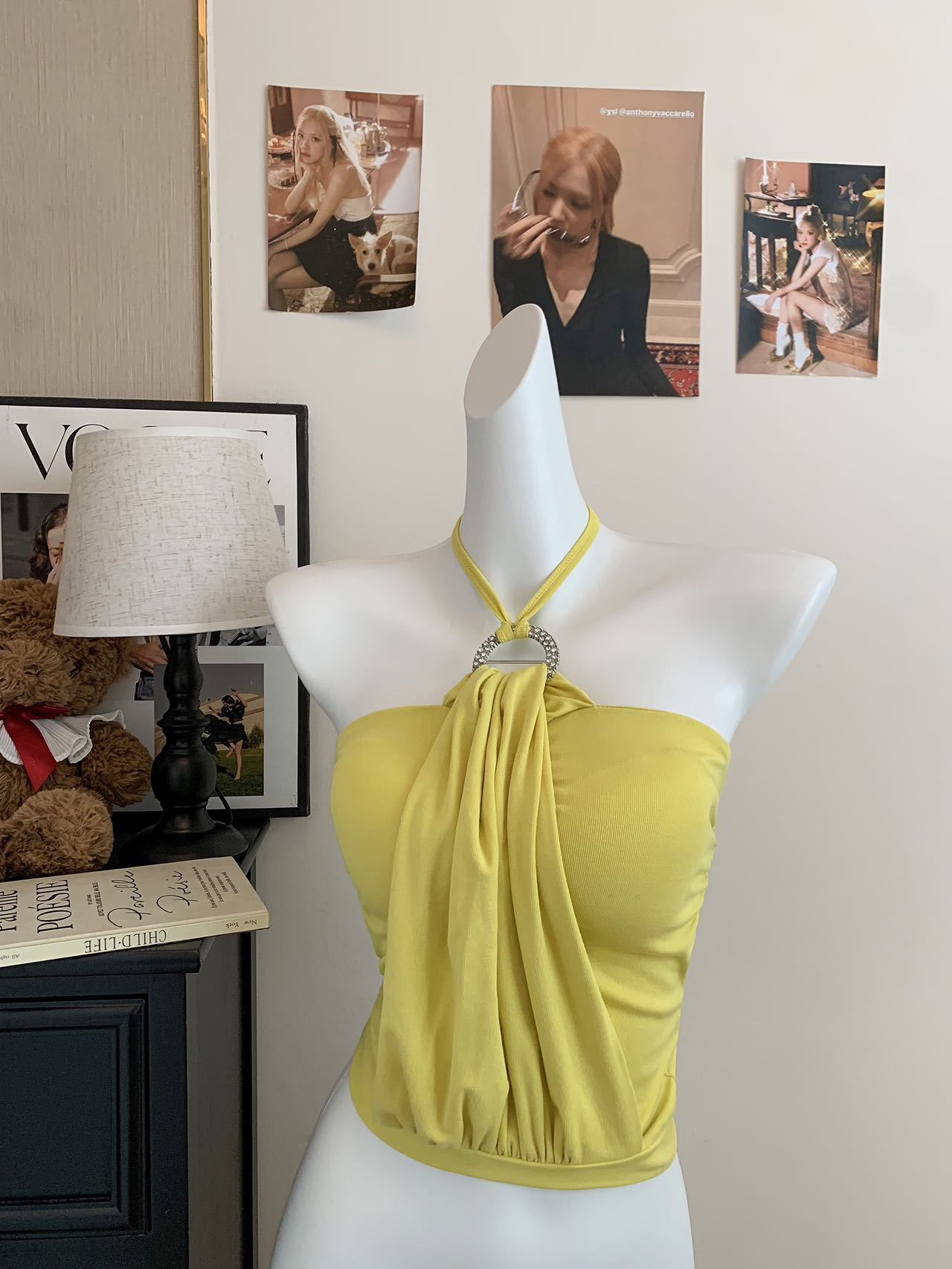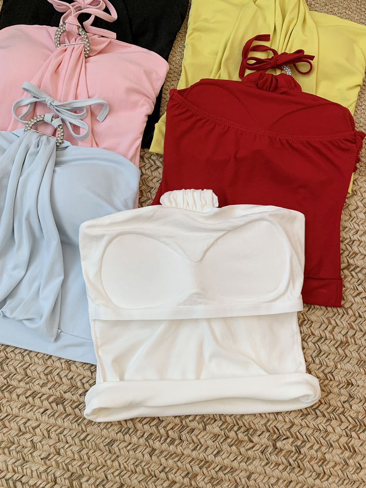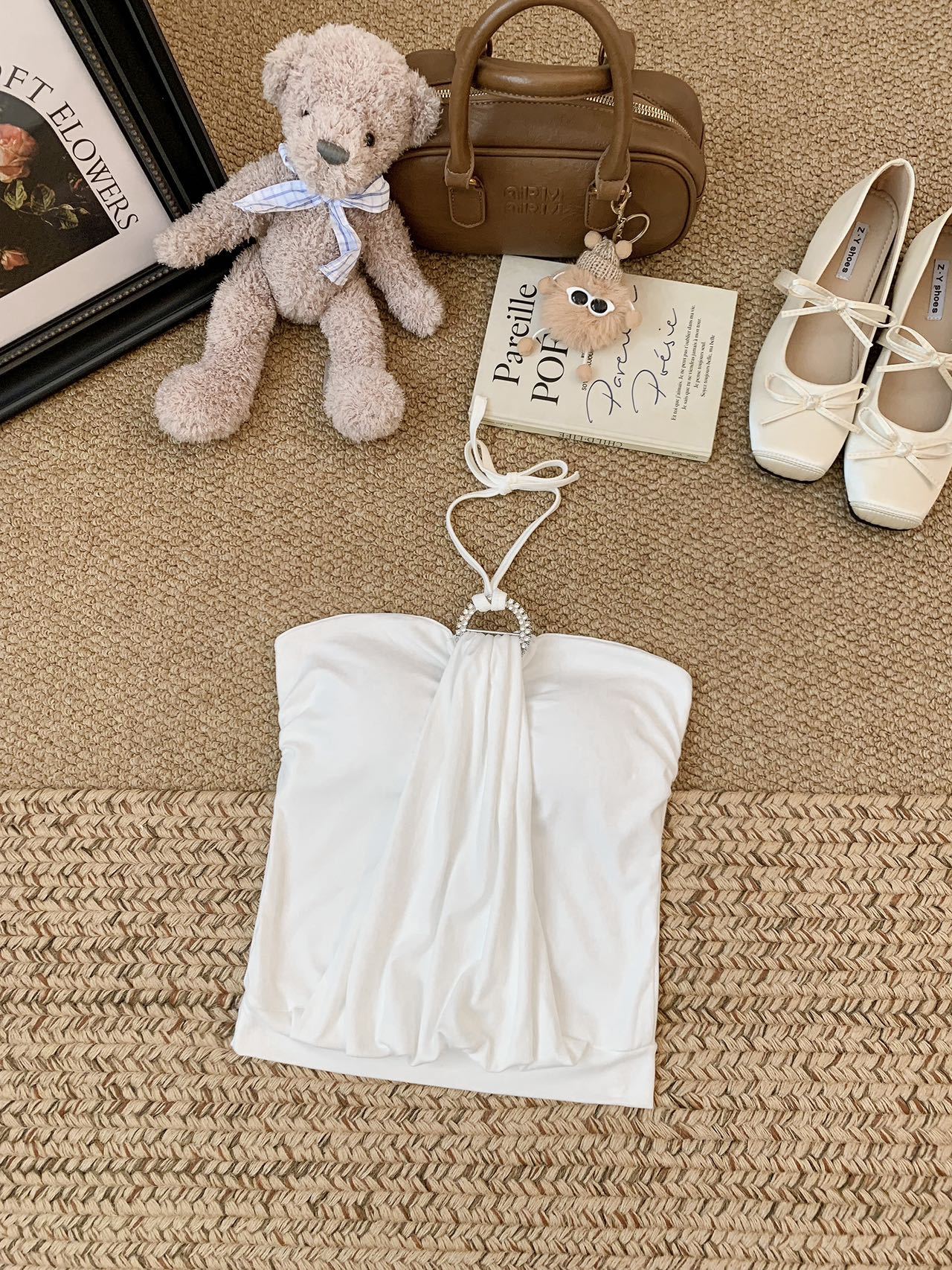 66009 # 여름 신작 레이온 퓨어 러스 섹시한 홀터넥 백리스 튜브 탑 여성용 세련된 슬림 짧은 캐미솔 탑스토어 가기