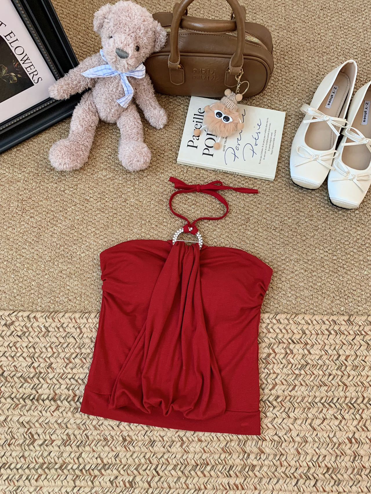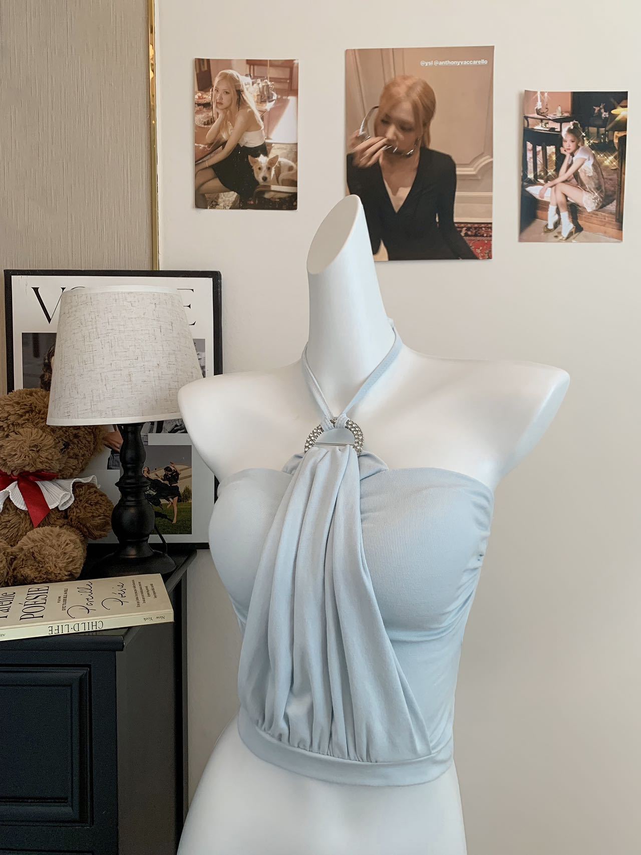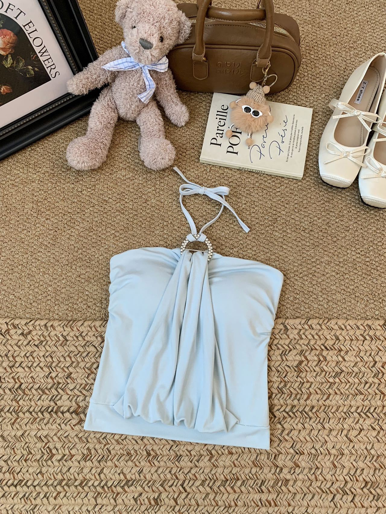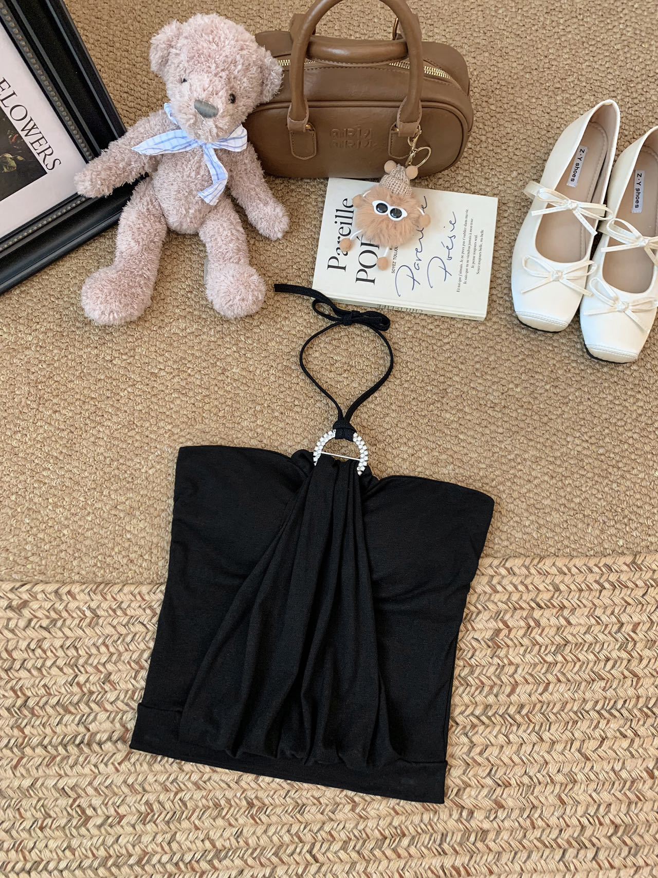 66009 # 여름 신작 레이온 퓨어 러스 섹시한 홀터넥 백리스 튜브 탑 여성용 세련된 슬림 짧은 캐미솔 탑