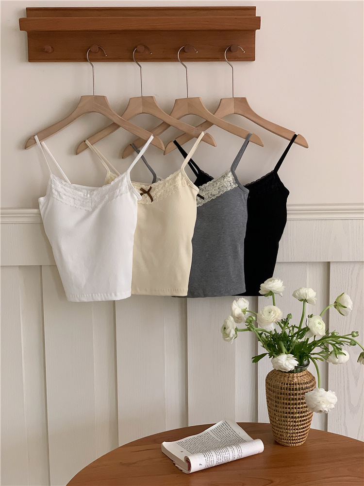 인기 핫걸 레이스 리본 서스펜더 뷰티 백 조끼, 가슴 패드 포함, 완벽한 가슴 감싸기, 밑단이 짧은 탑스토어 가기
