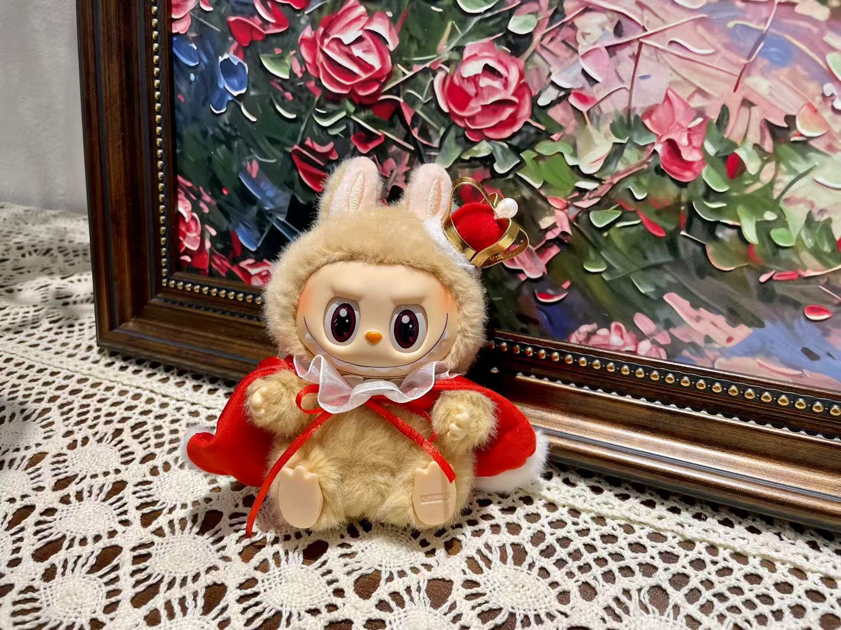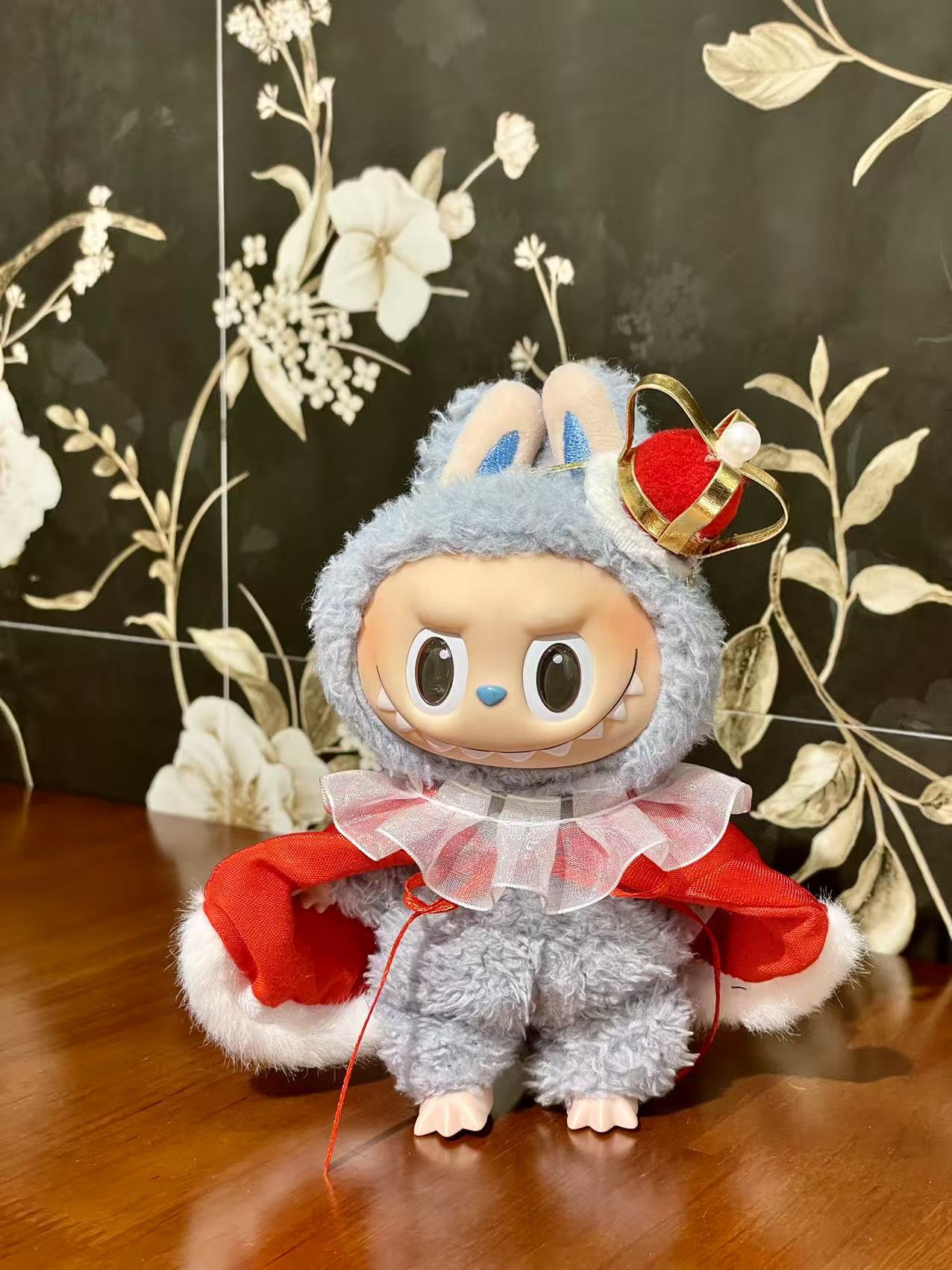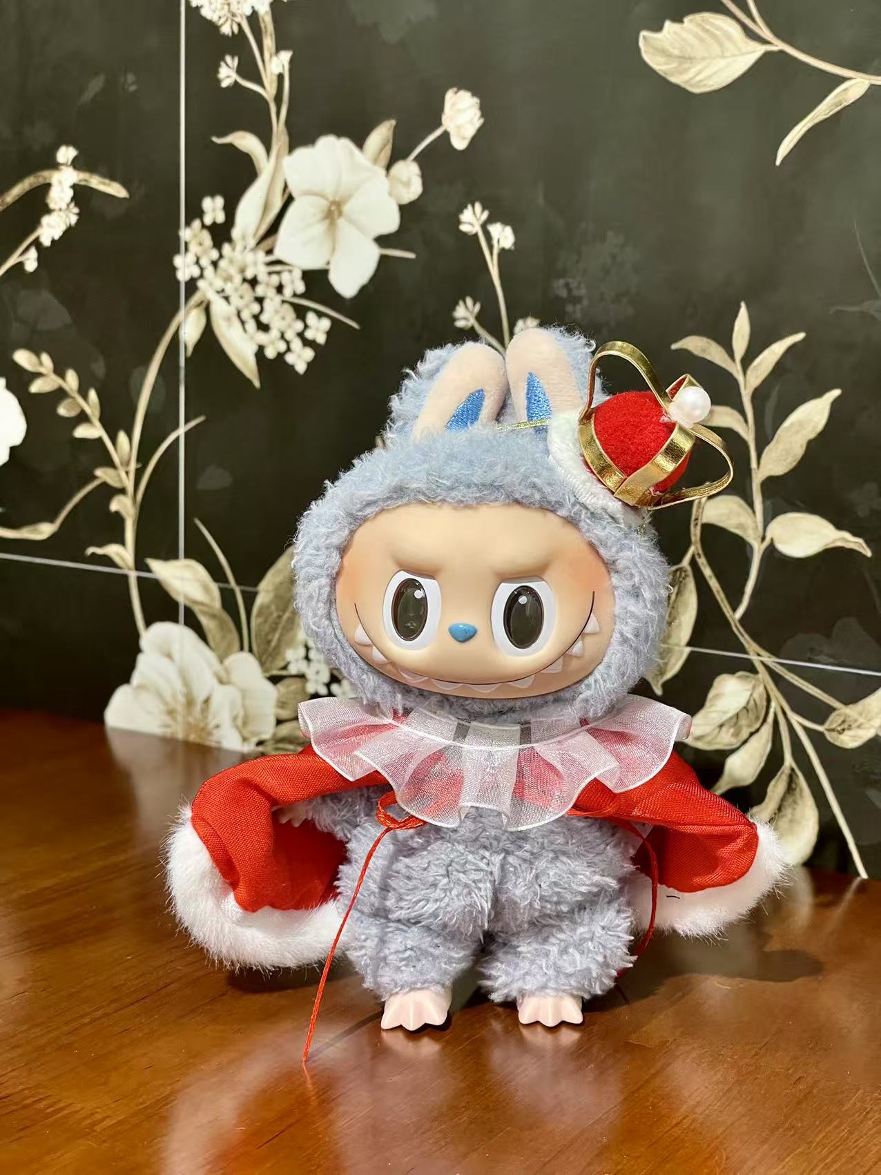 Labubu 아기 옷 17cm Labubu 옷 킹 크라운 망토 세트 교체 유행 장난감 펜던트 인형 의류스토어 가기