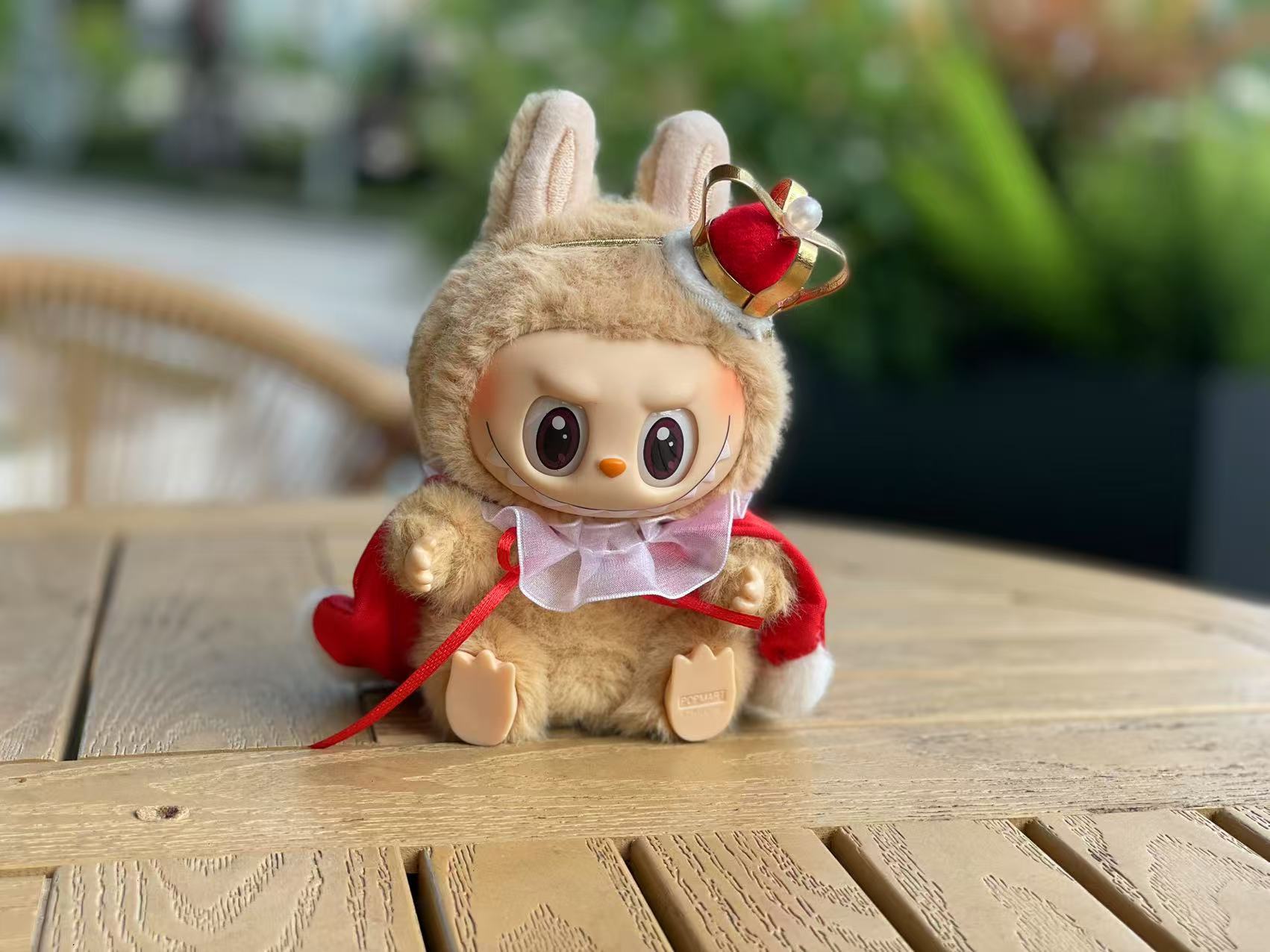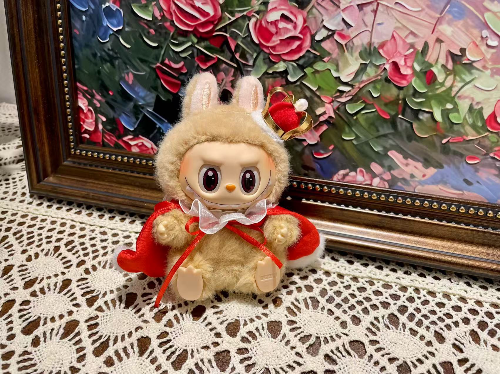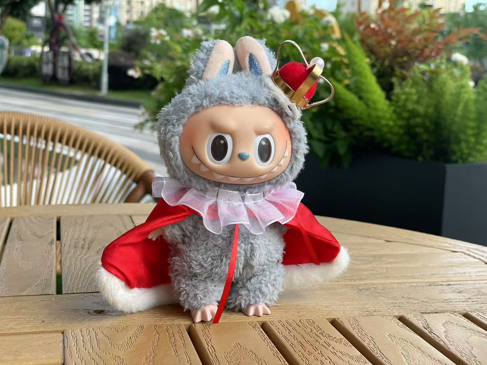 Labubu 아기 옷 17cm Labubu 옷 킹 크라운 망토 세트 교체 유행 장난감 펜던트 인형 의류스토어 가기